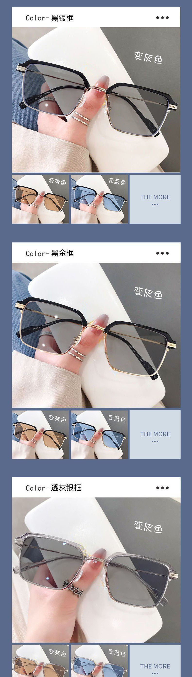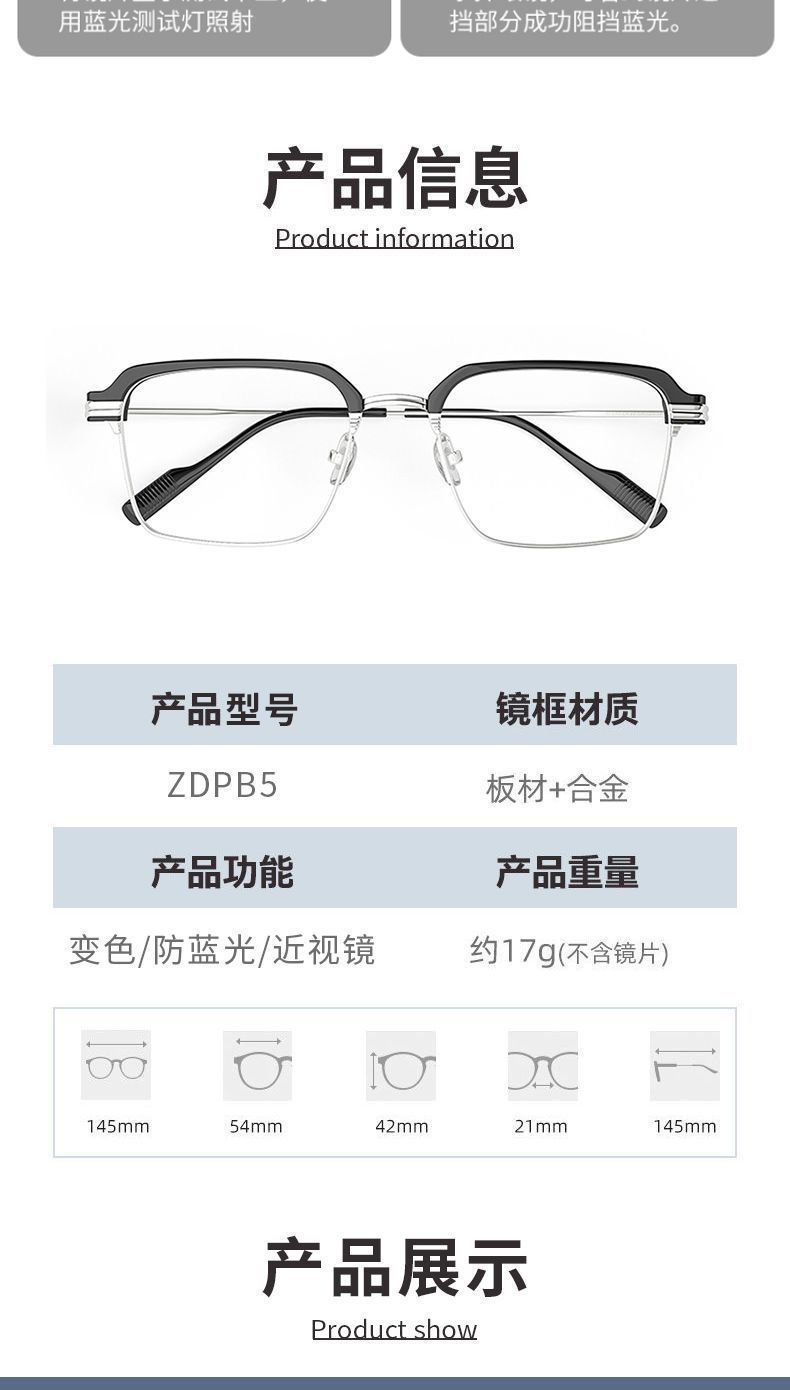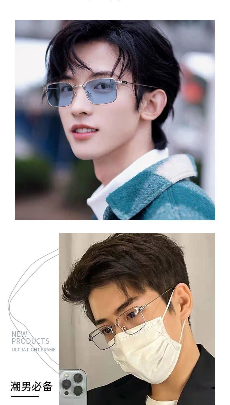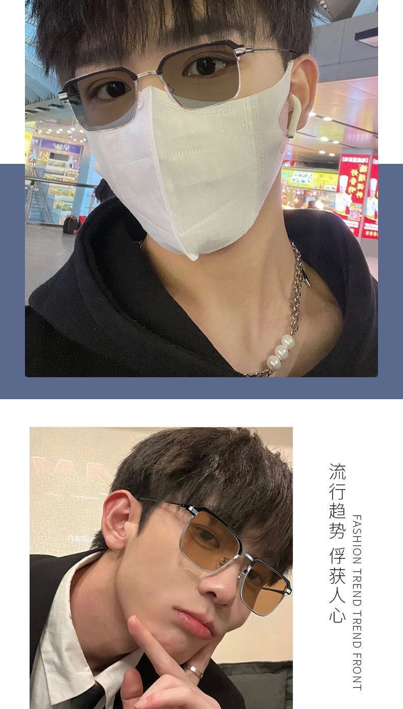 Advanced photosensitive color changing myopia glasses, anti blue light box sunshade, high-end fashion business high-definition flat sunglasses