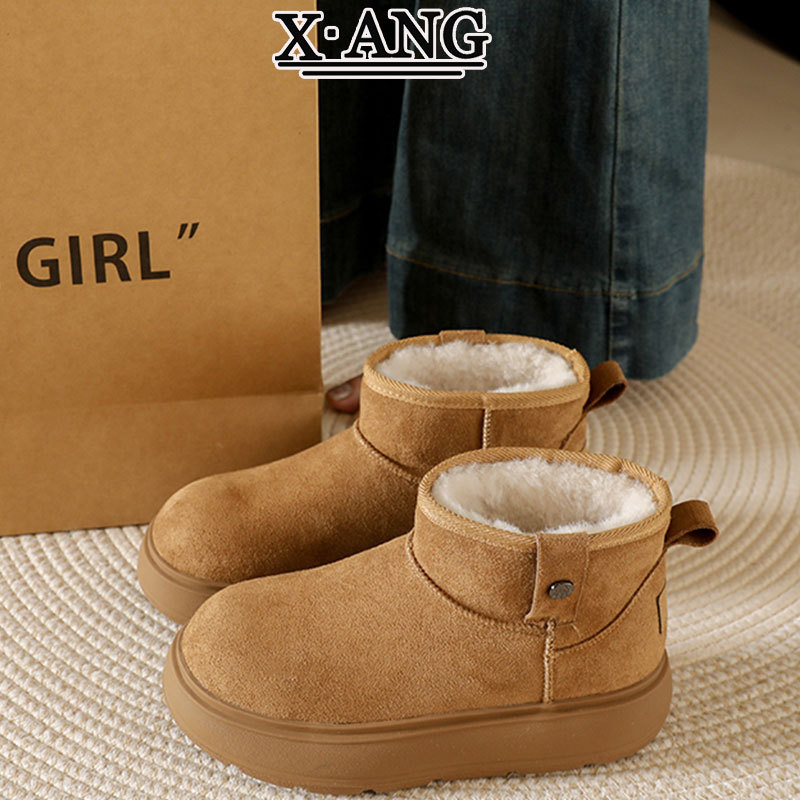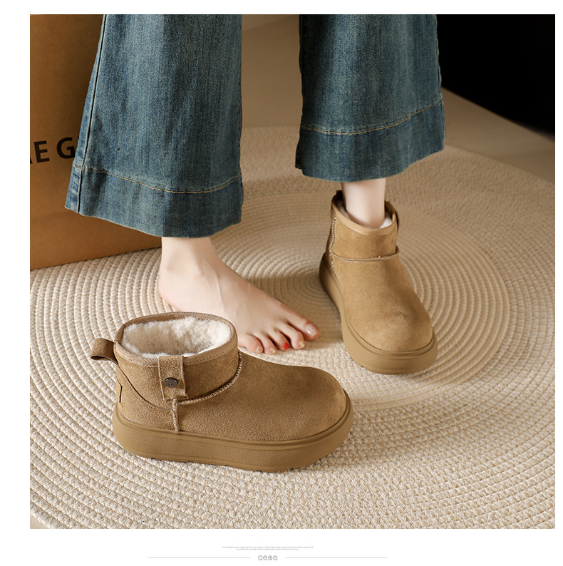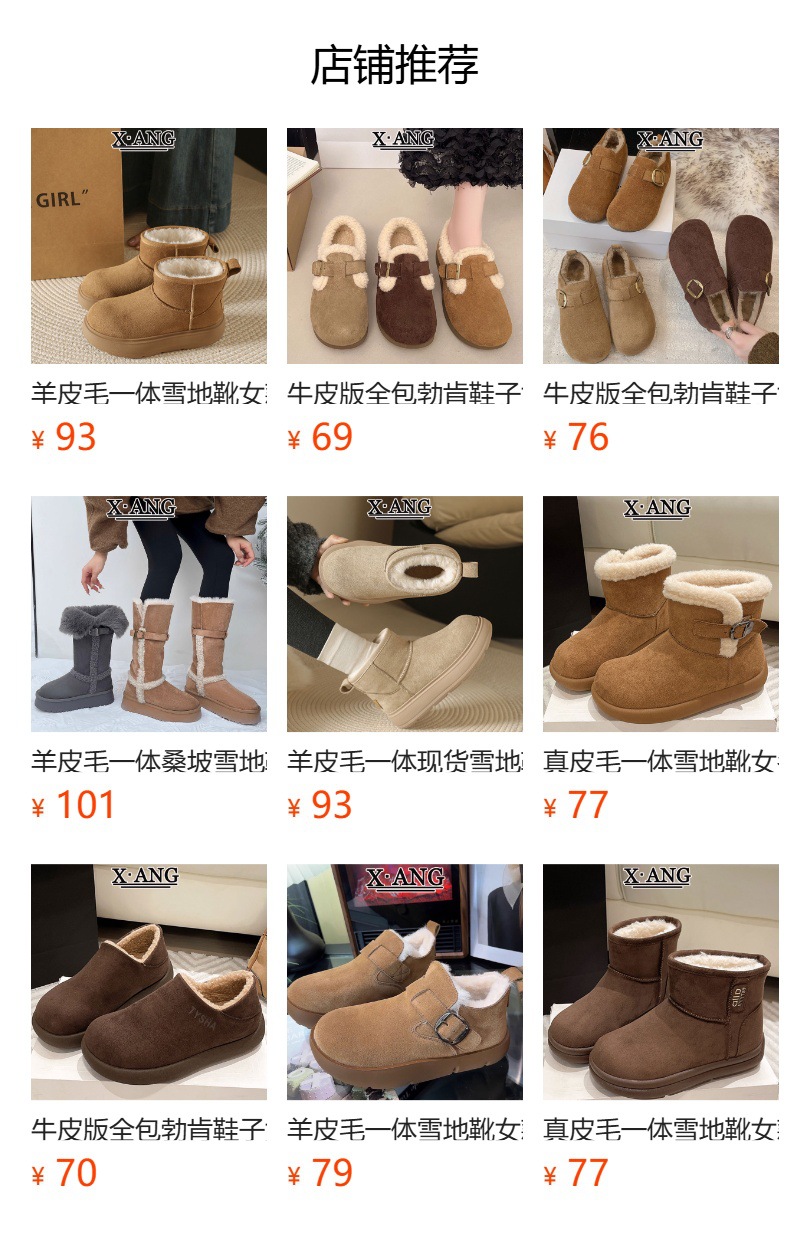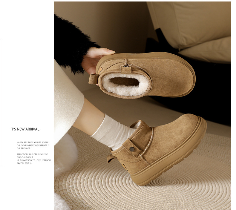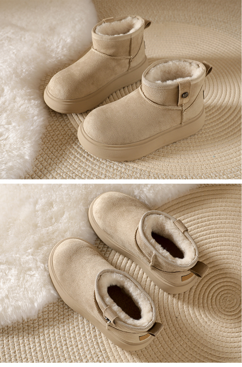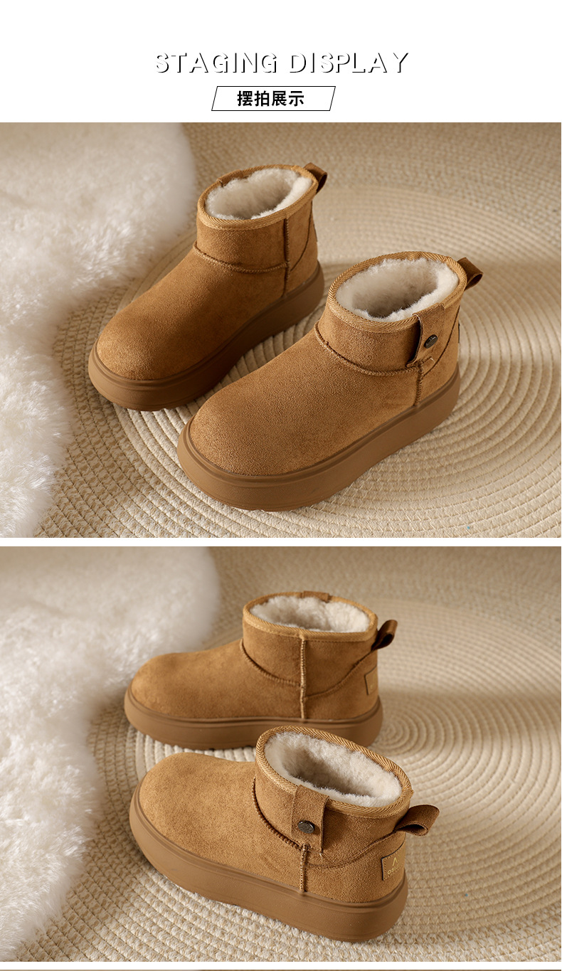 Sangpo spot sheep fur integrated snow boots for women, anti slip and waterproof thick sole with thick fleece and warm Northeast cotton shoes