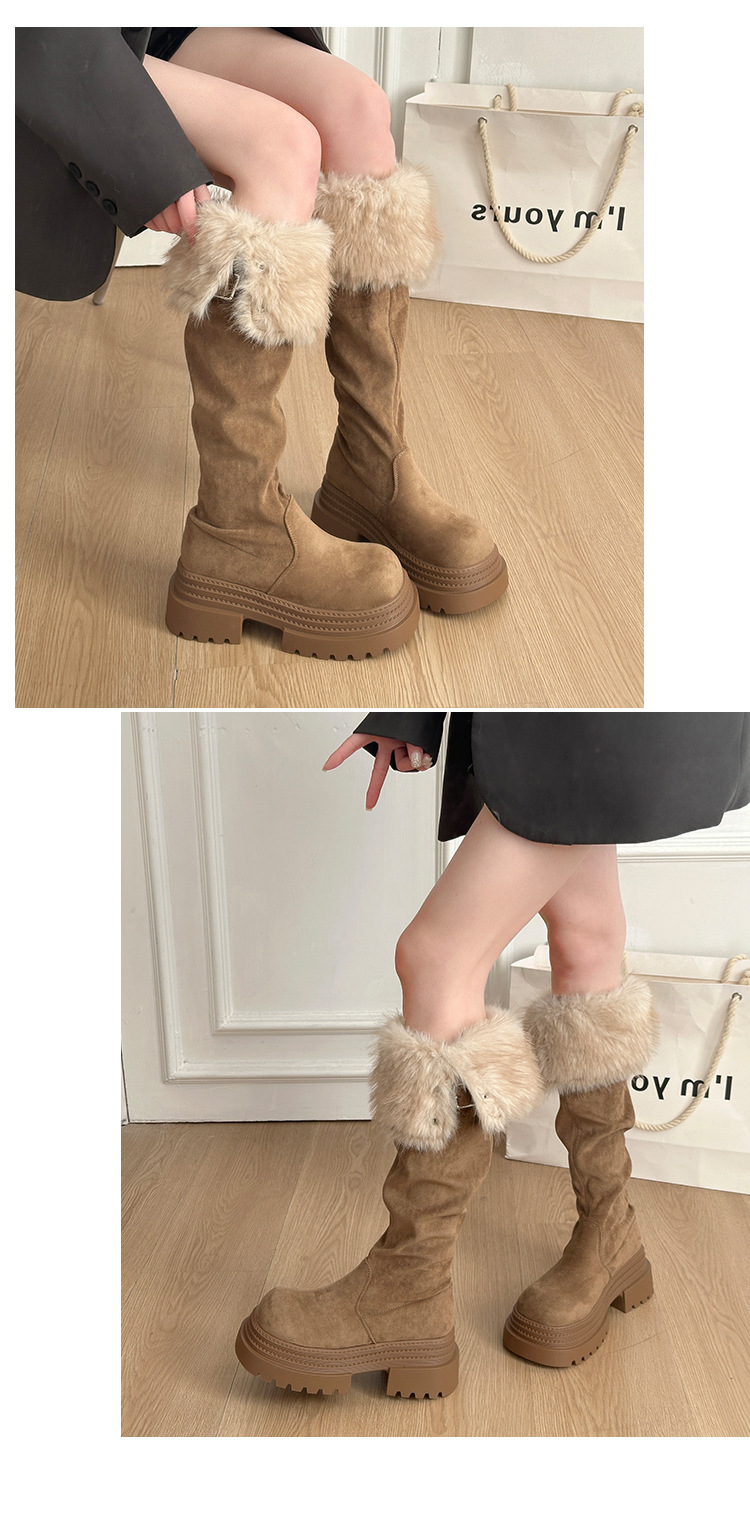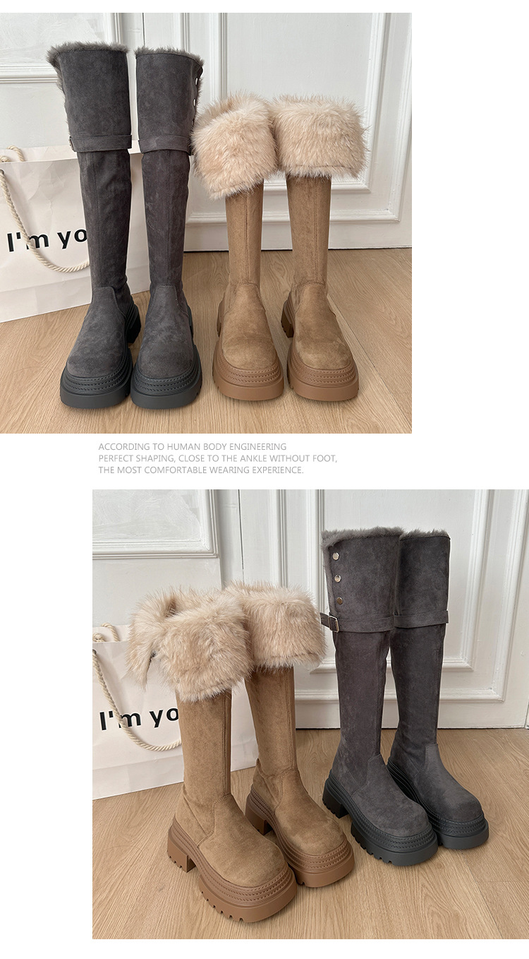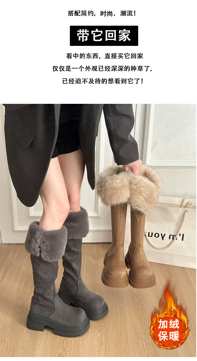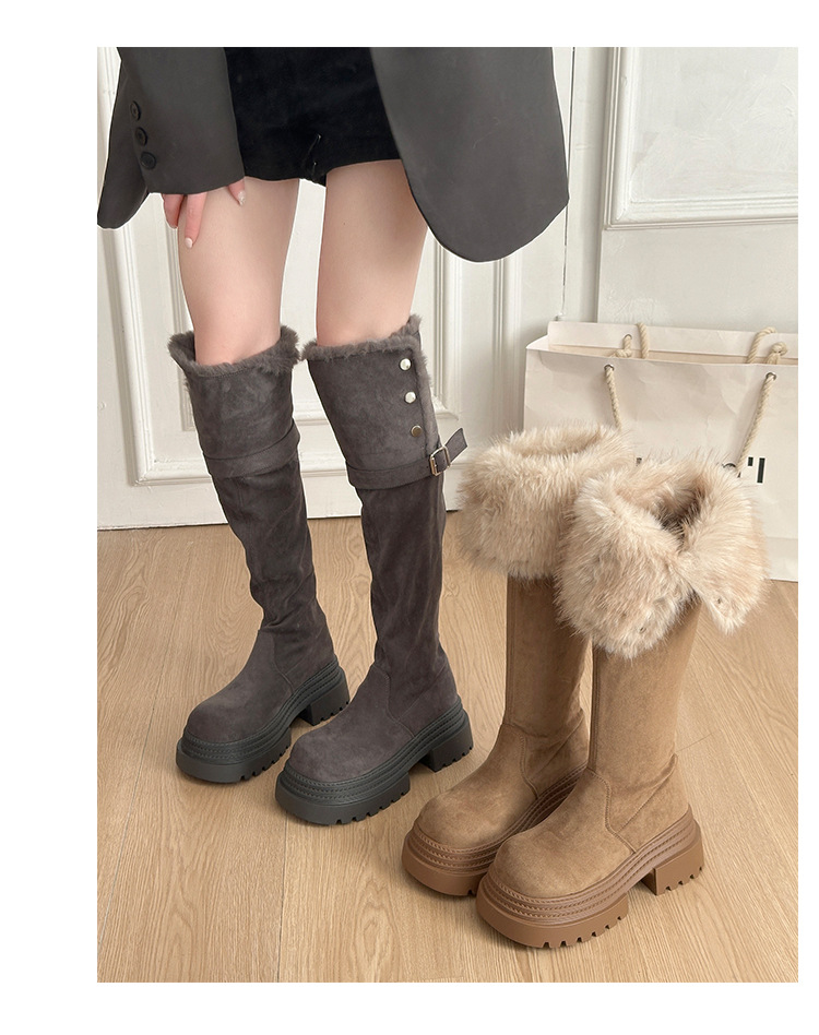 厚底两穿毛绒雪地靴女士2025冬季显瘦高筒加绒保暖防滑扣带长筒靴