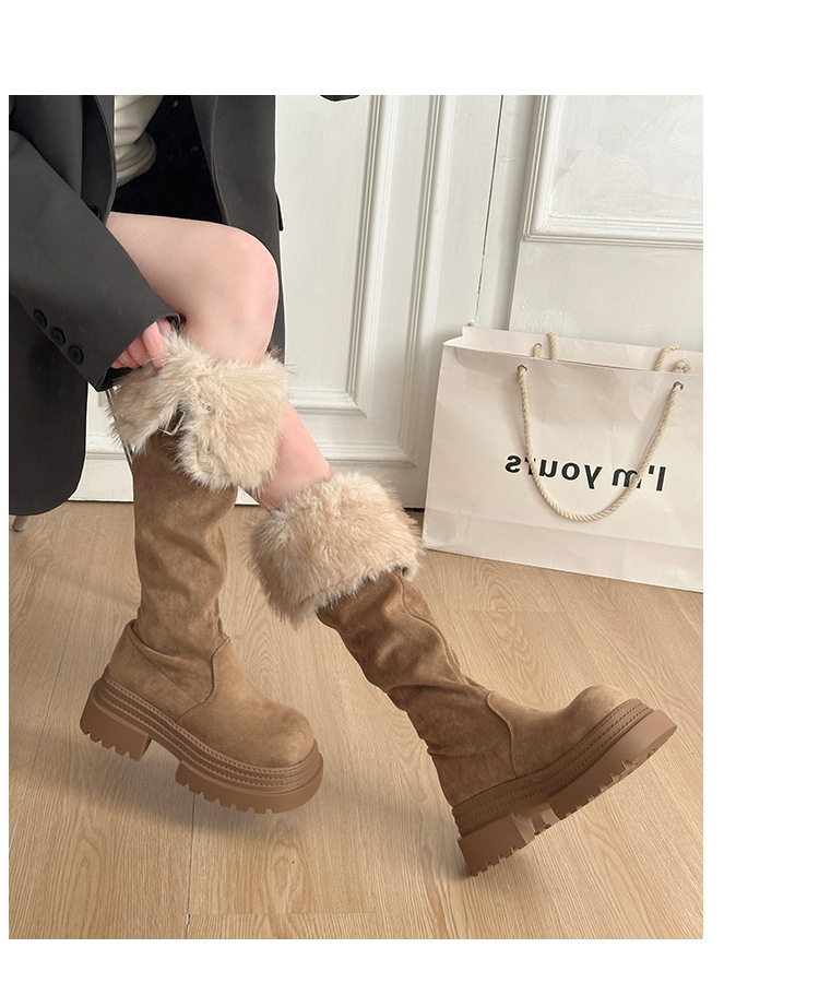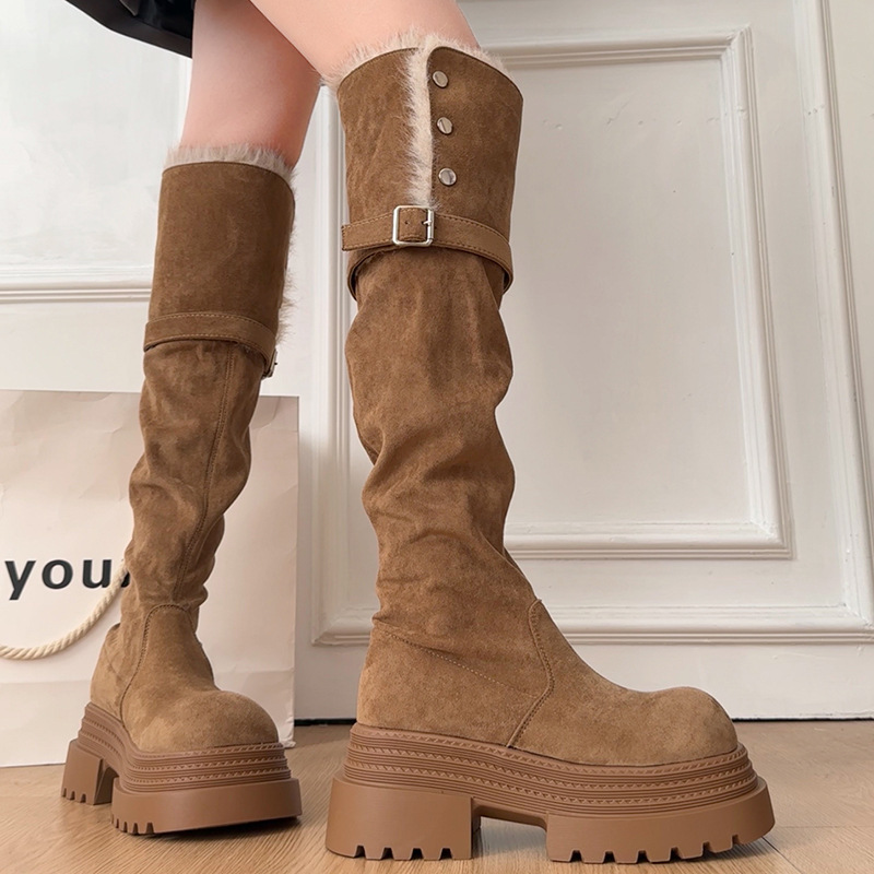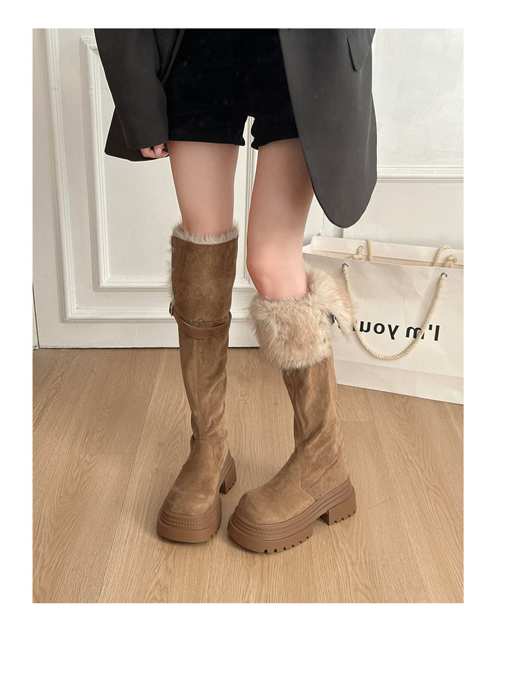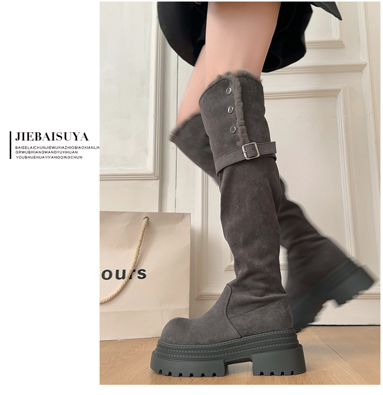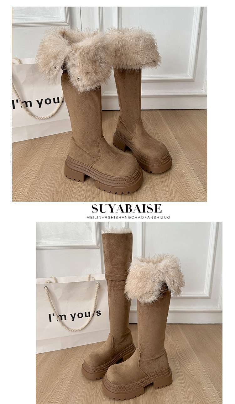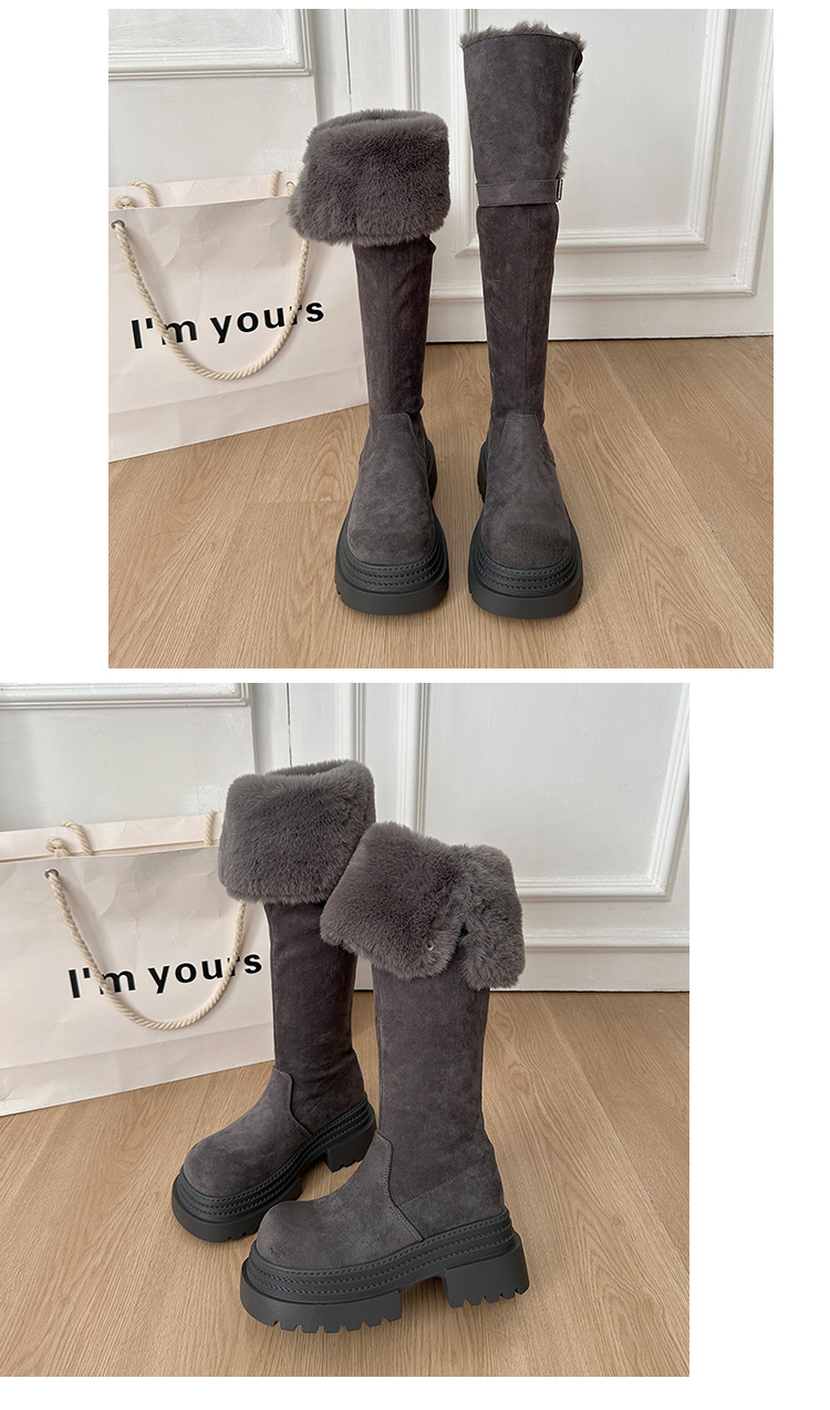 厚底两穿毛绒雪地靴女士2025冬季显瘦高筒加绒保暖防滑扣带长筒靴