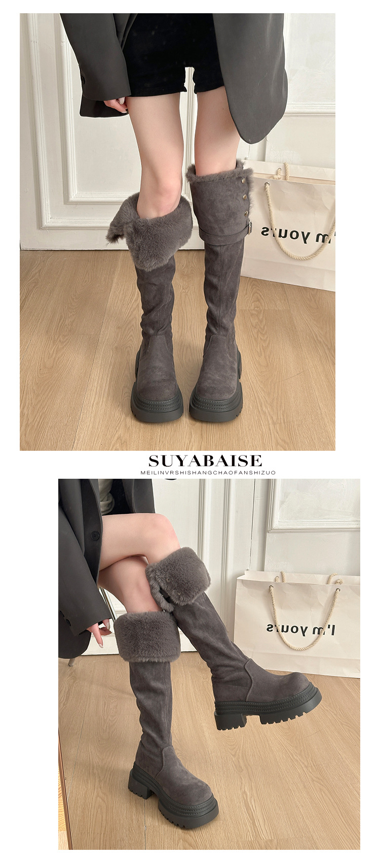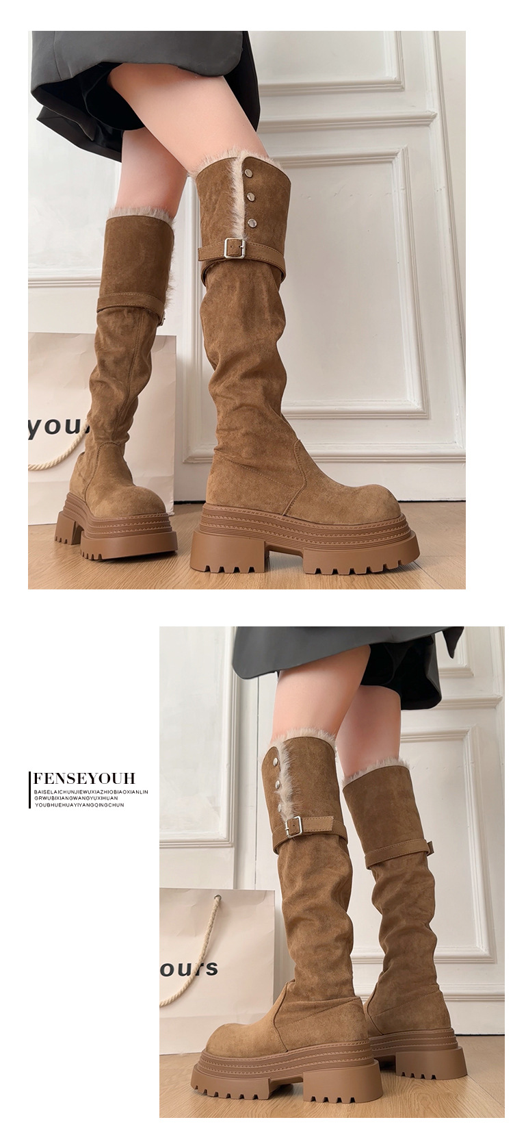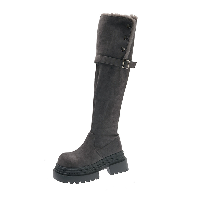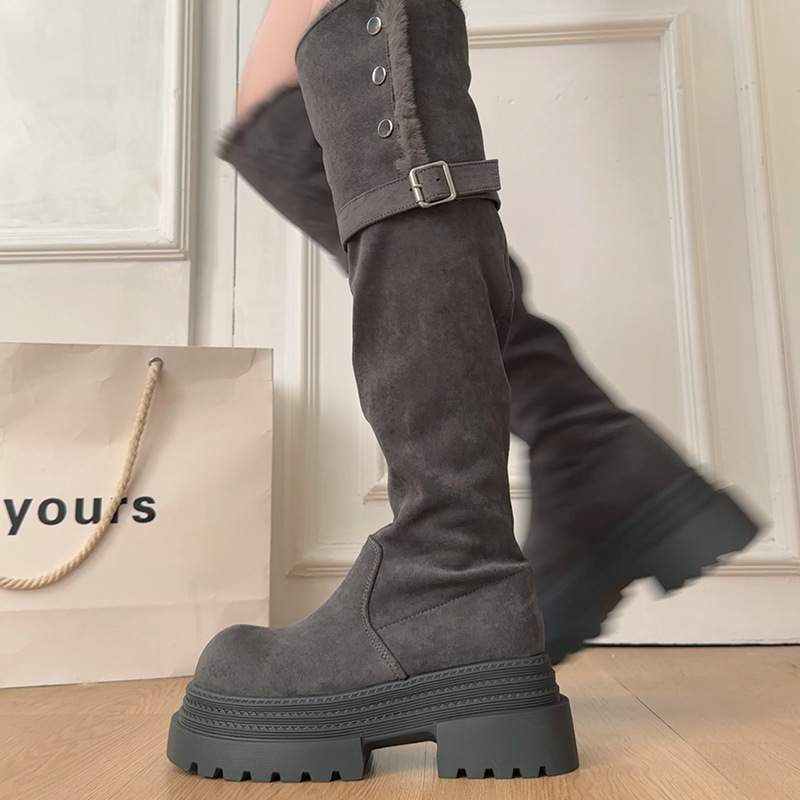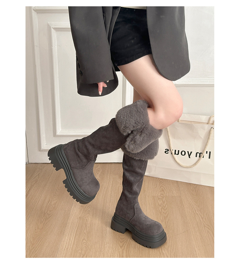 厚底两穿毛绒雪地靴女士2025冬季显瘦高筒加绒保暖防滑扣带长筒靴