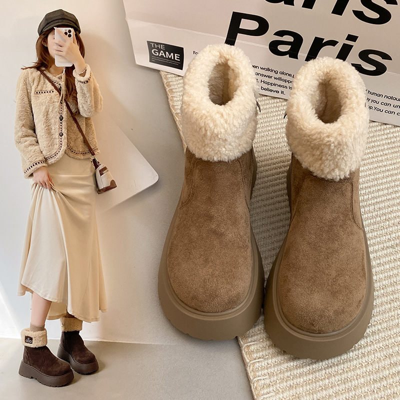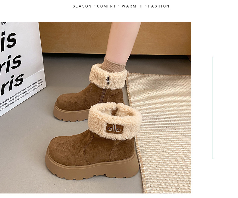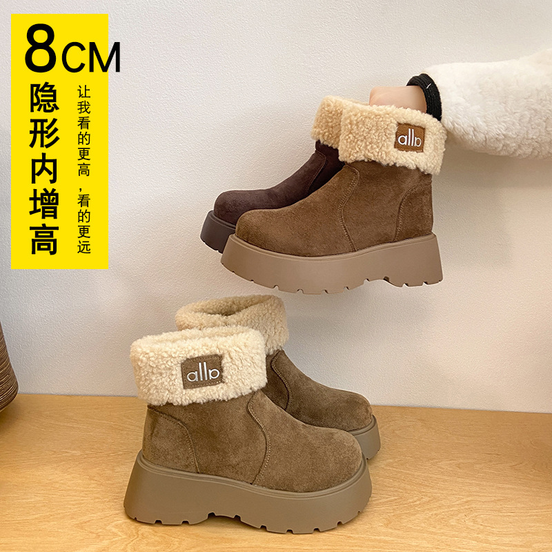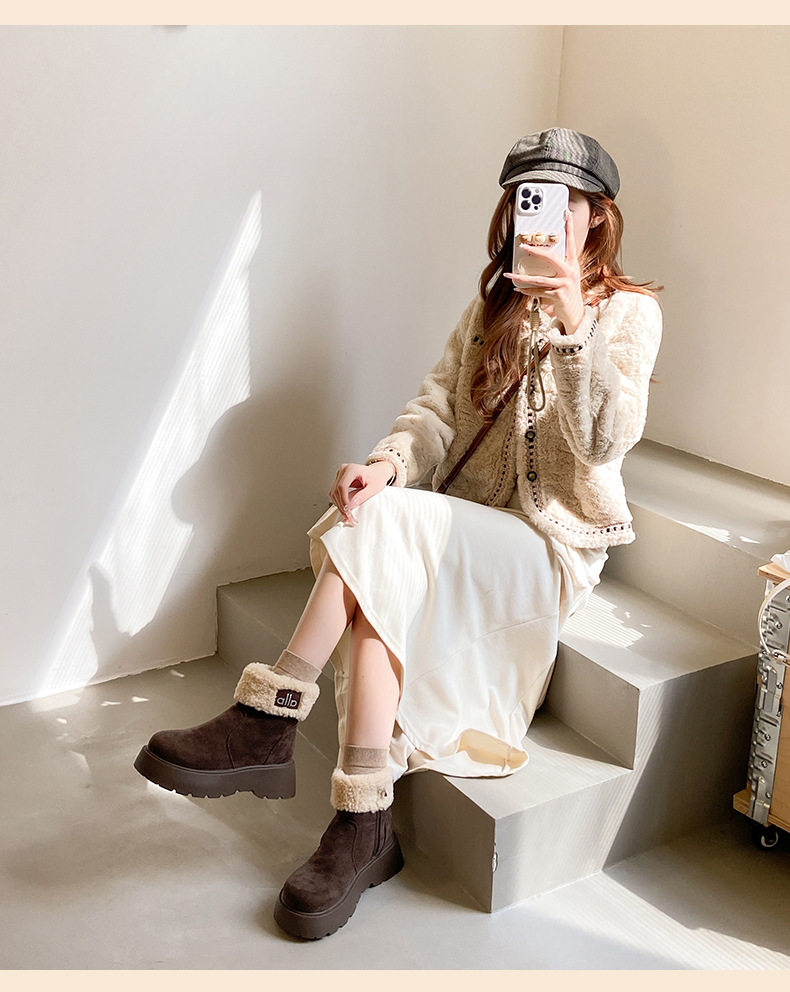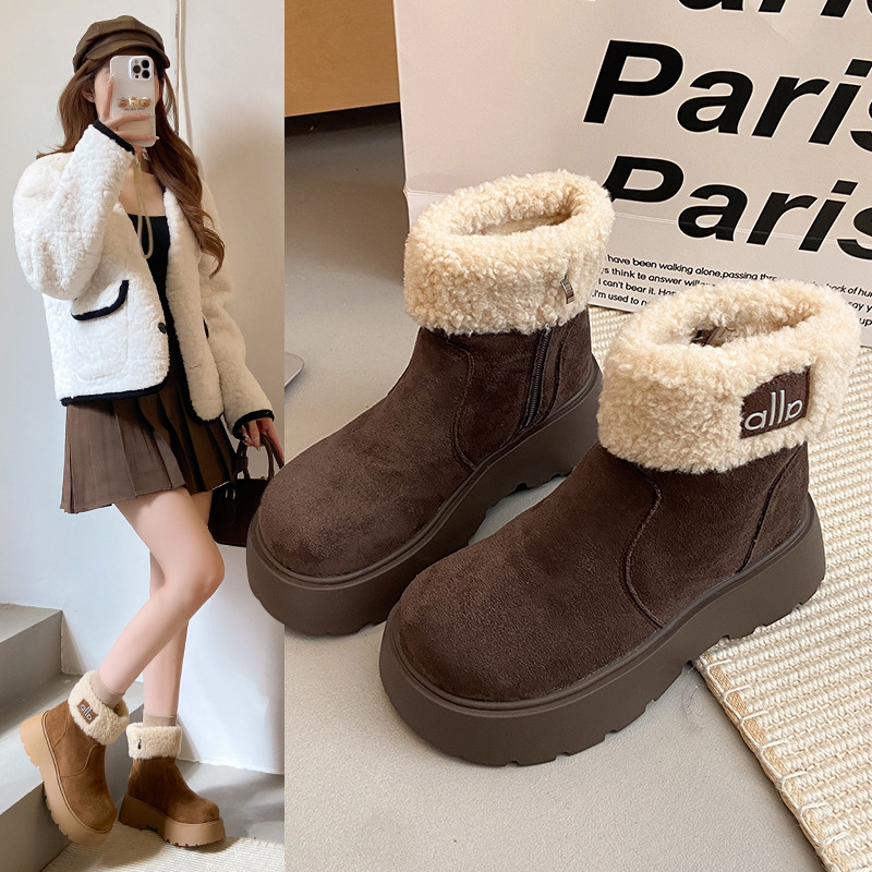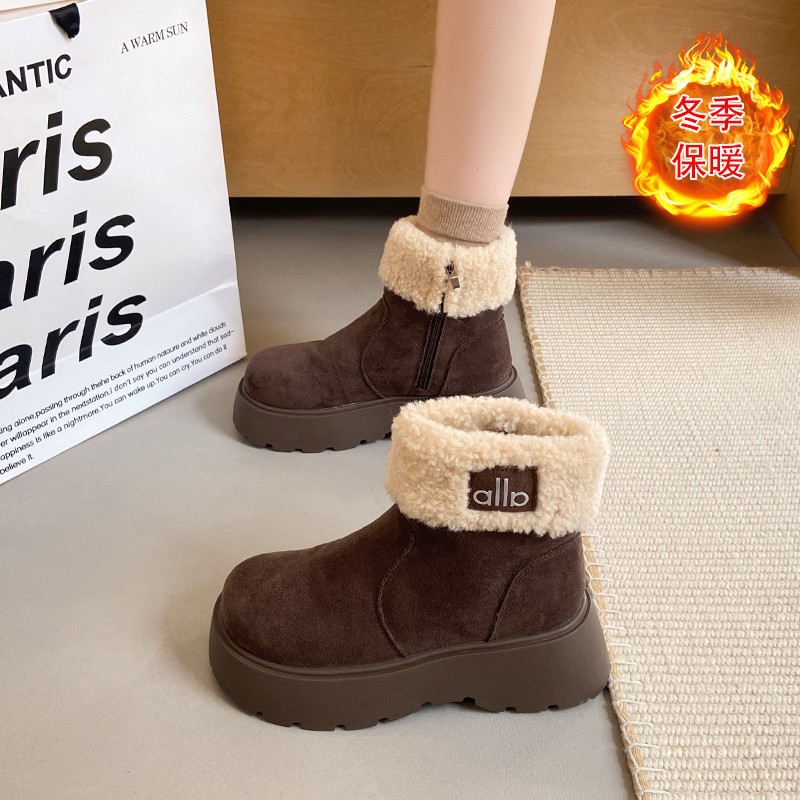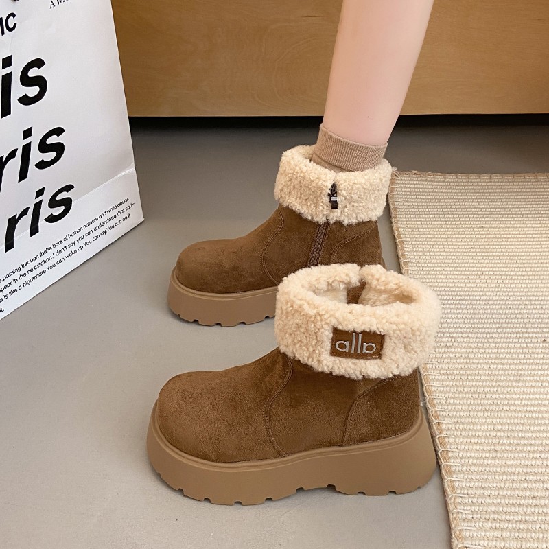 Side zipper Boken short boots for women, Martin boots with thick sole and increased height, snow boots for women, with thick fleece and warm Northeast cotton shoes
