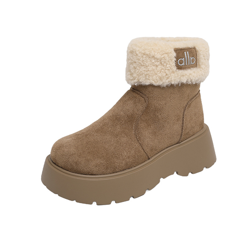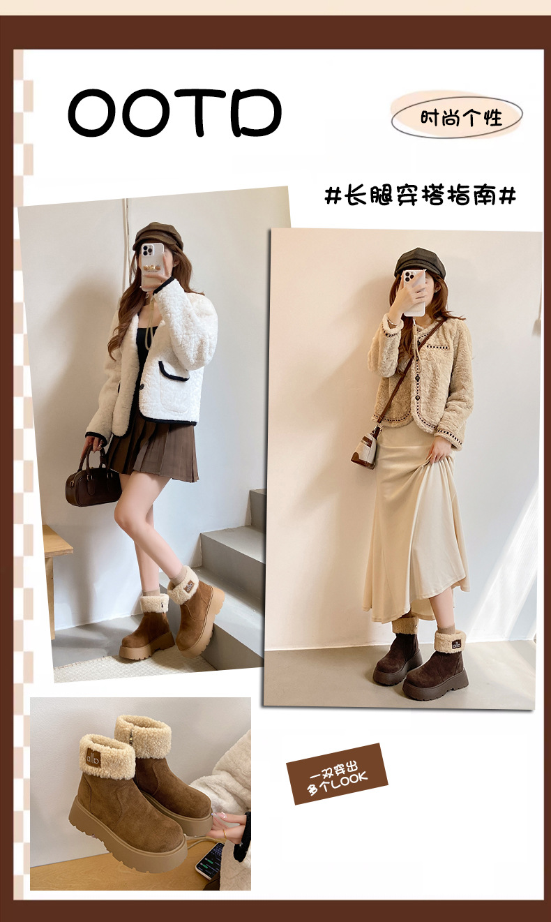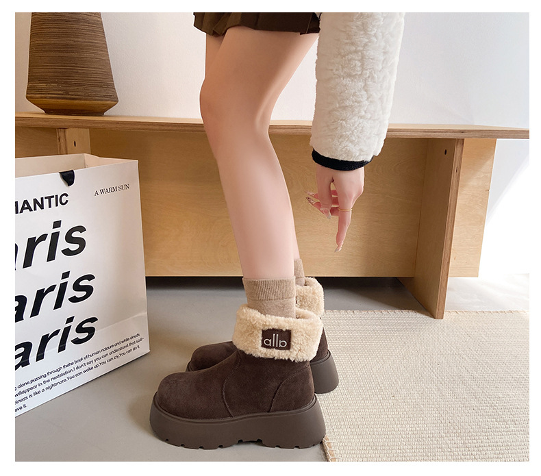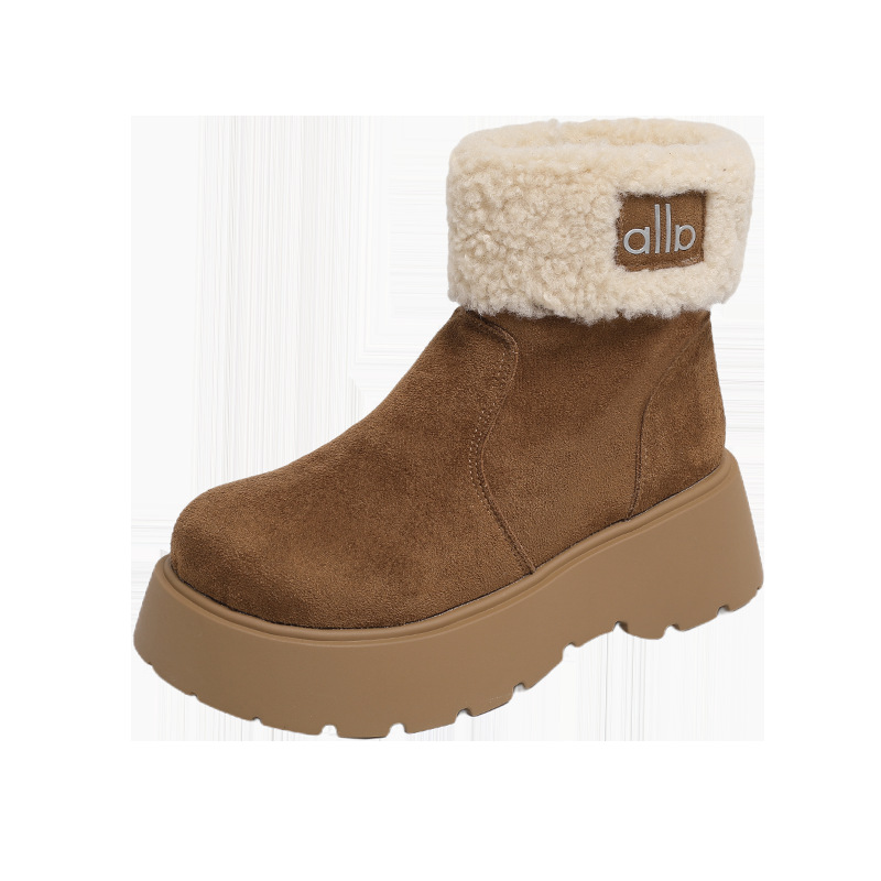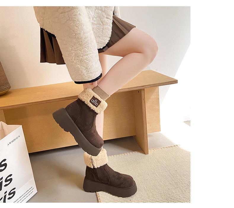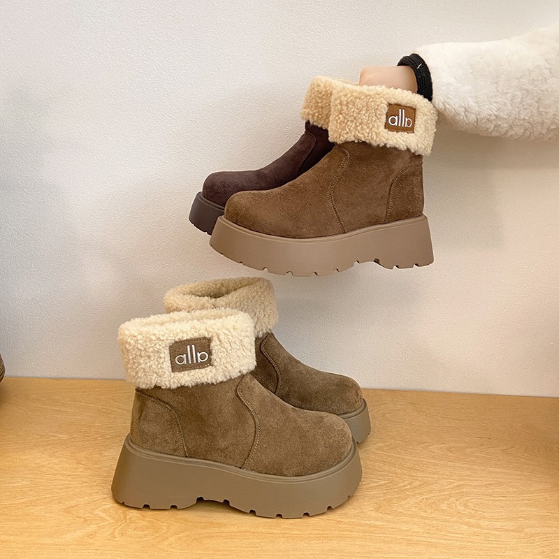Side zipper Boken short boots for women, Martin boots with thick sole and increased height, snow boots for women, with thick fleece and warm Northeast cotton shoes
