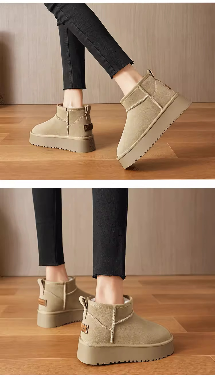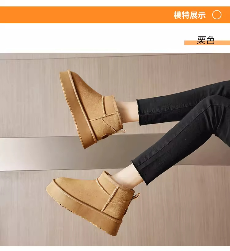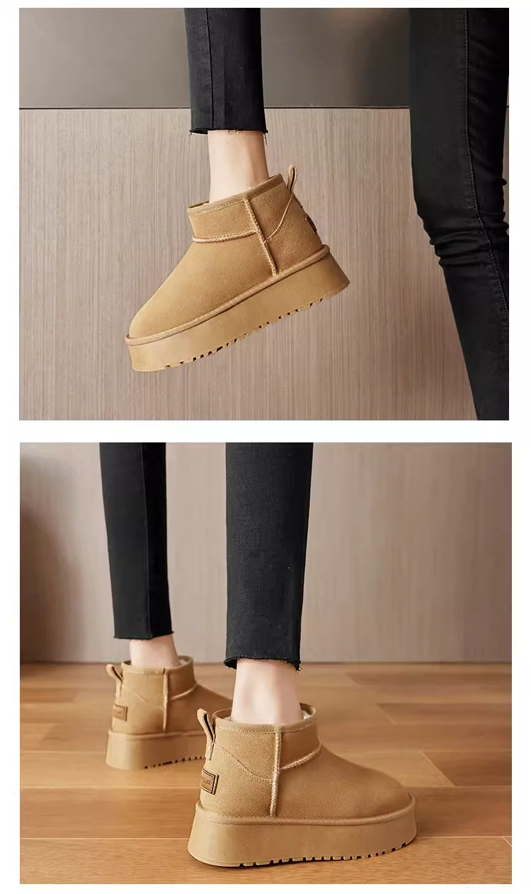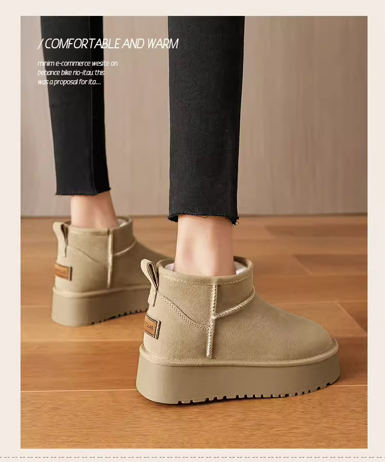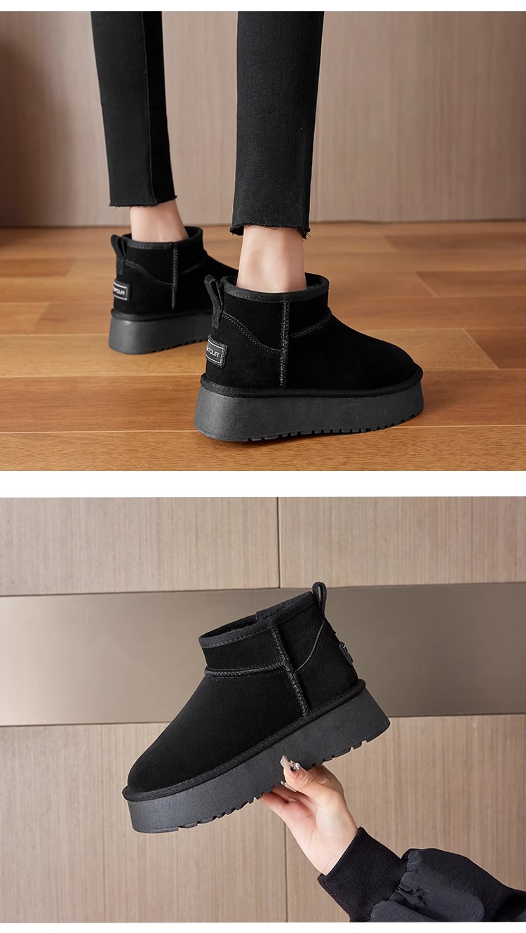 Thick soled snow boots for women, winter new Korean version, versatile, with thick velvet and warm cotton shoes, and leather short boots with increased height inside