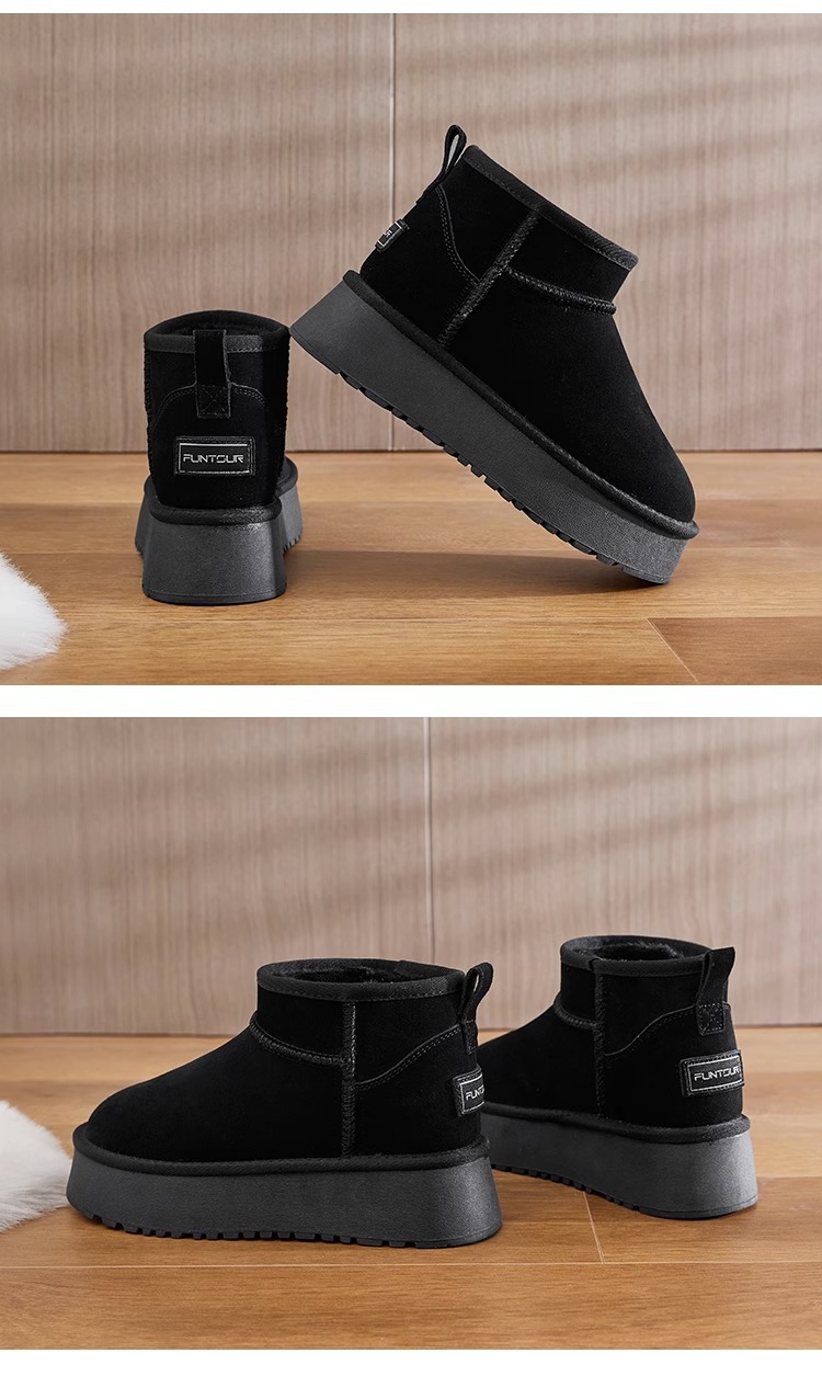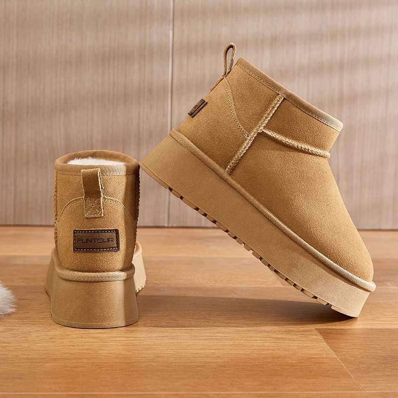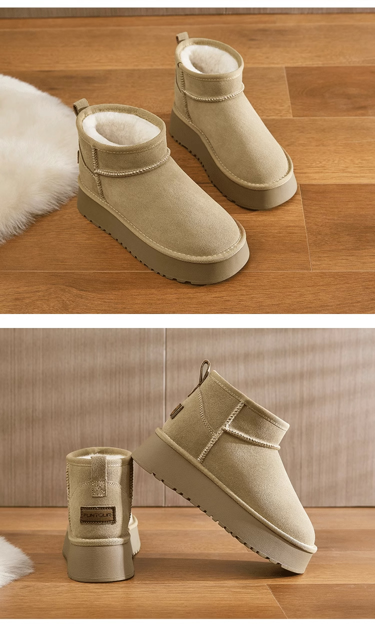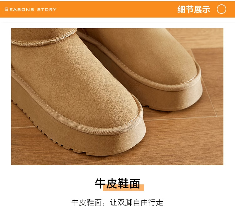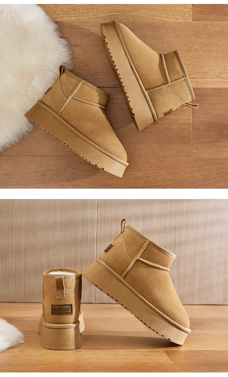 Thick soled snow boots for women, winter new Korean version, versatile, with thick velvet and warm cotton shoes, and leather short boots with increased height inside