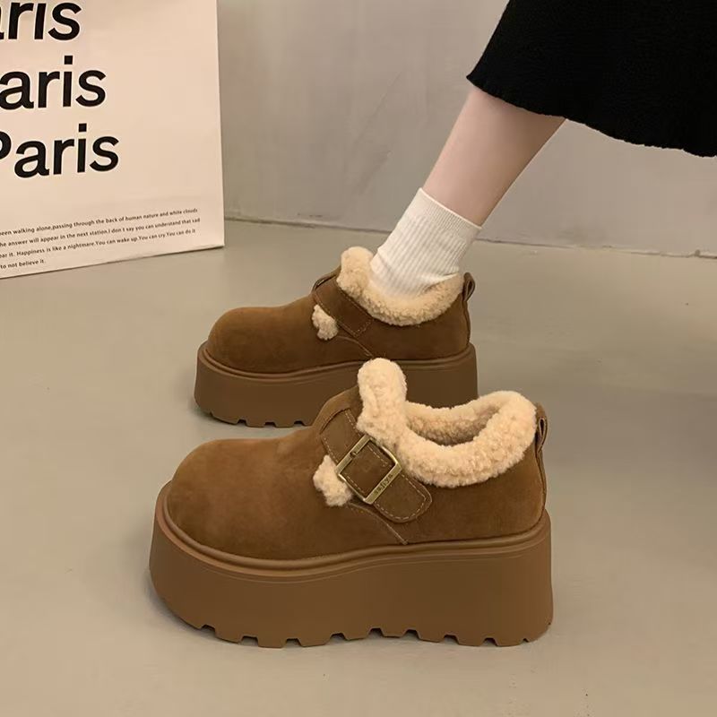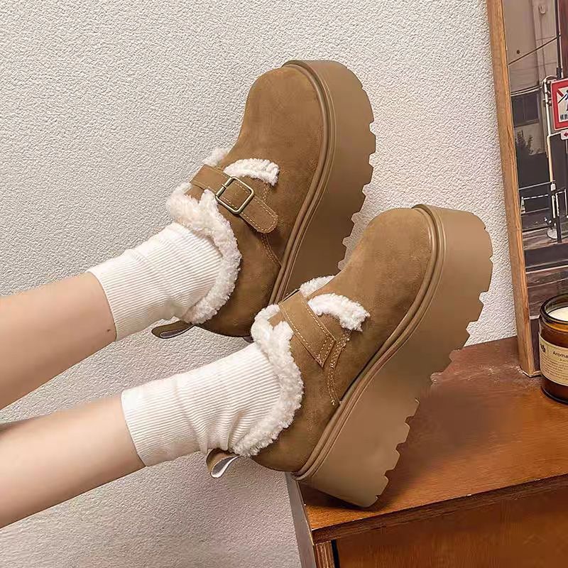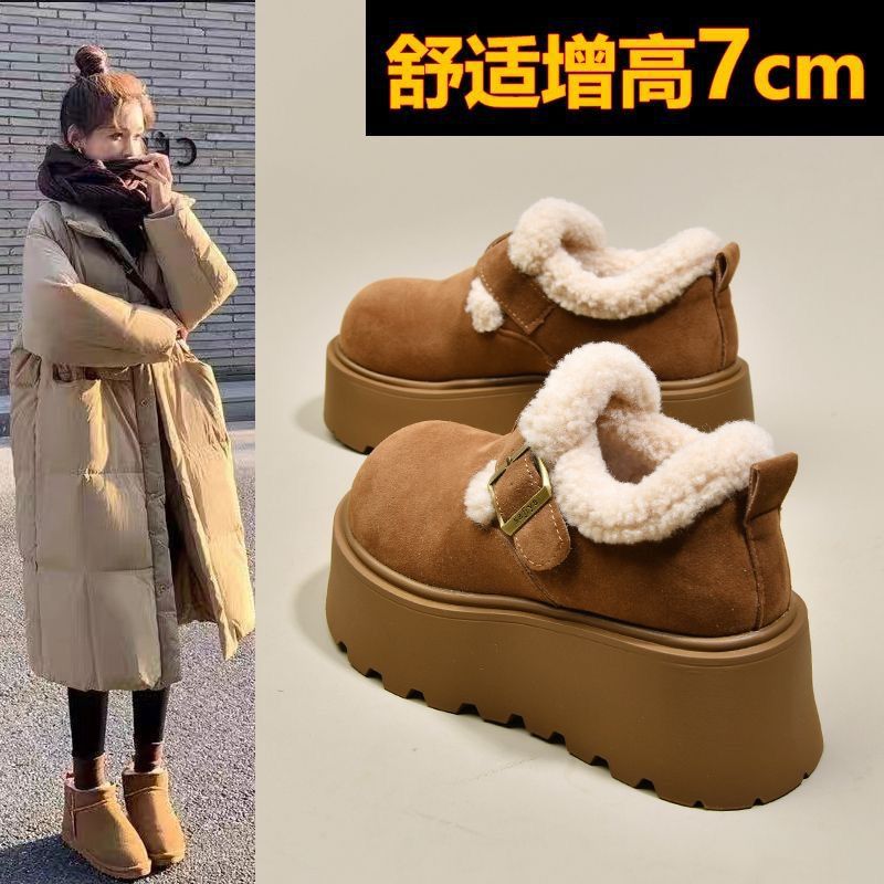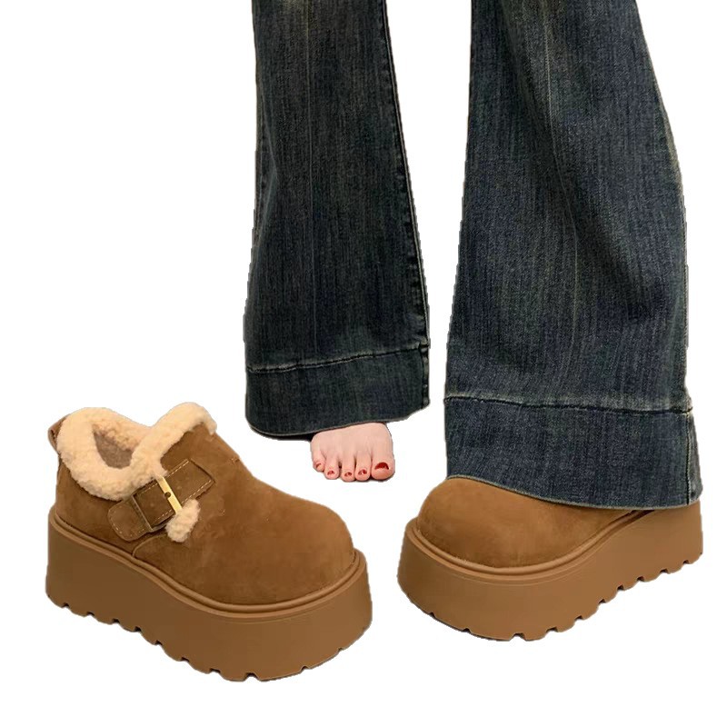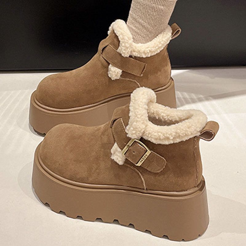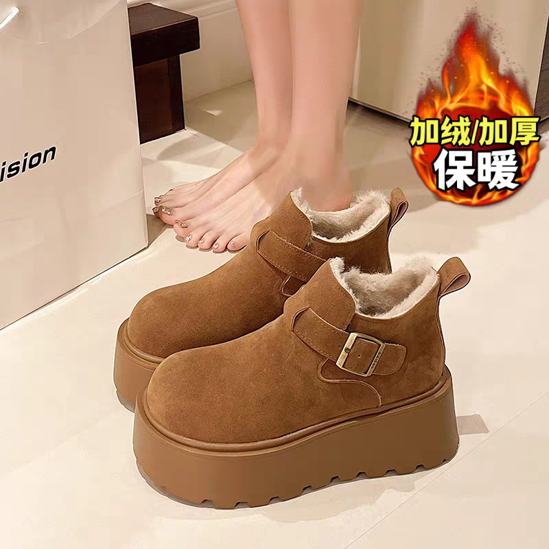 Boken Snow Boots Women's 2025 New Winter Thick Bottom with Velvet Thickened One Step Warm Bread Cotton Shoes