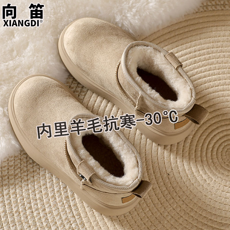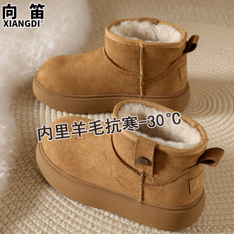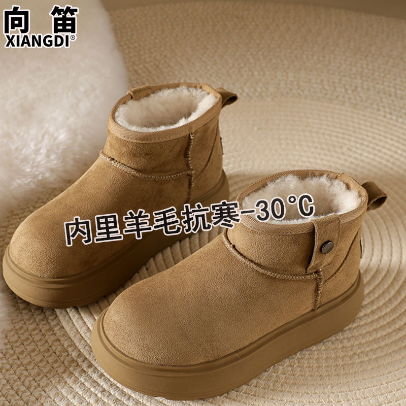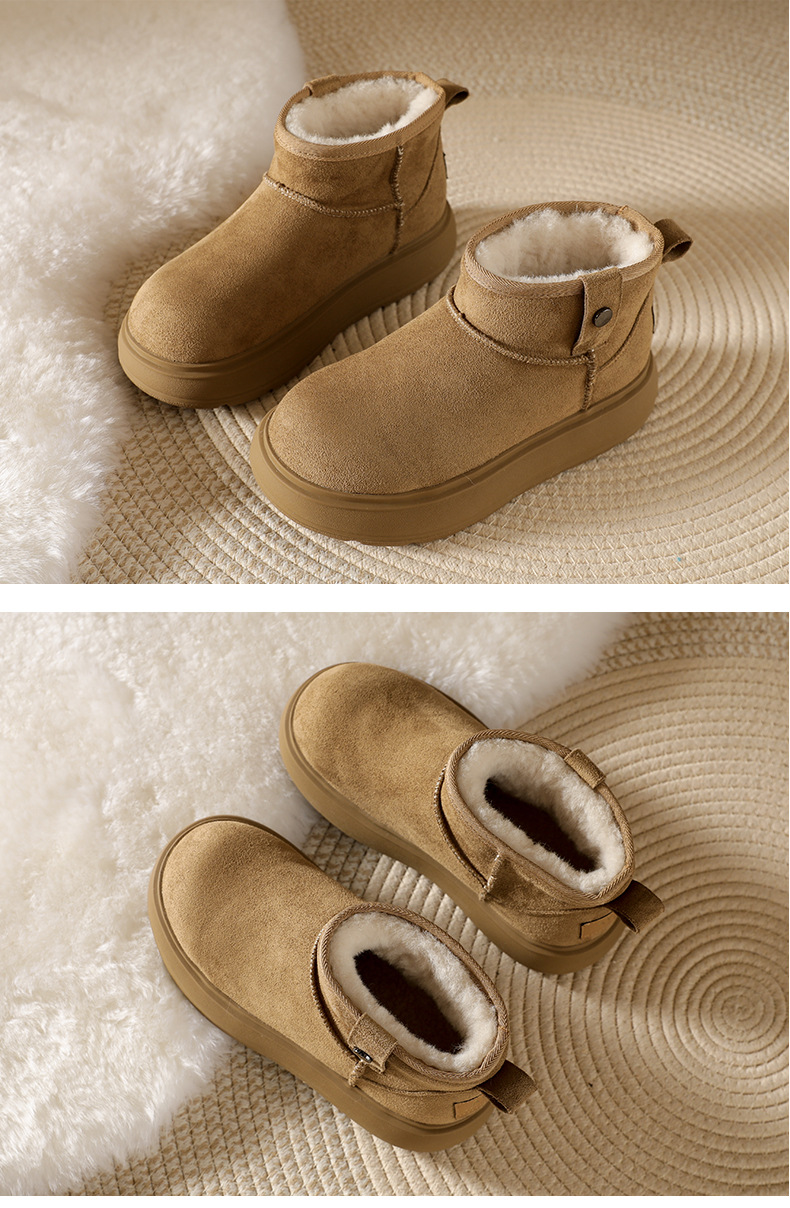 Sheepskin and wool integrated snow boots for women, anti slip winter with thick fleece and warmth, Northeast cotton shoes, Boken short boots