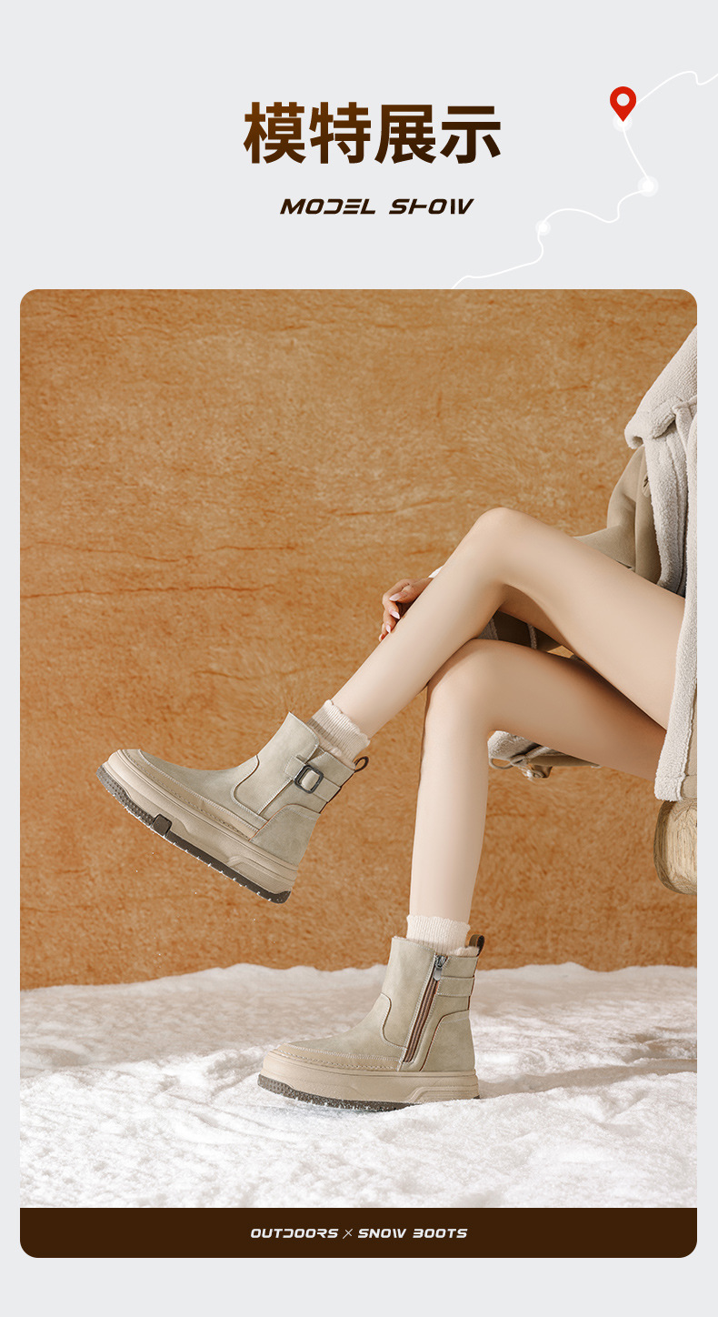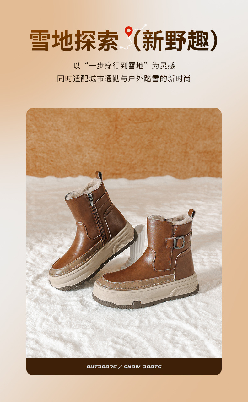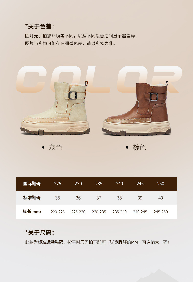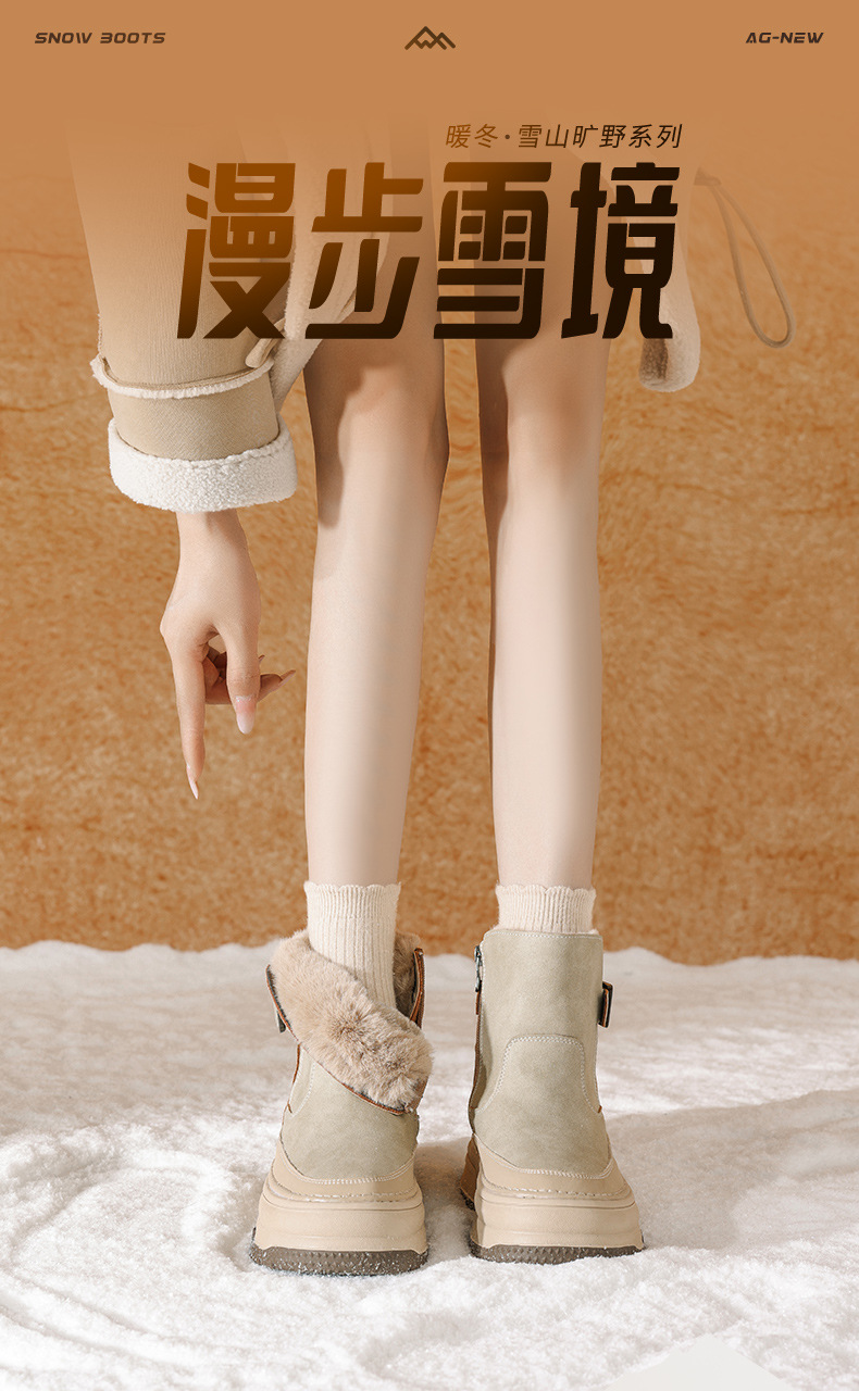 奥古狮登厚底雪地靴女2025新款冬季灰色加绒加厚靴子外穿短筒棉鞋