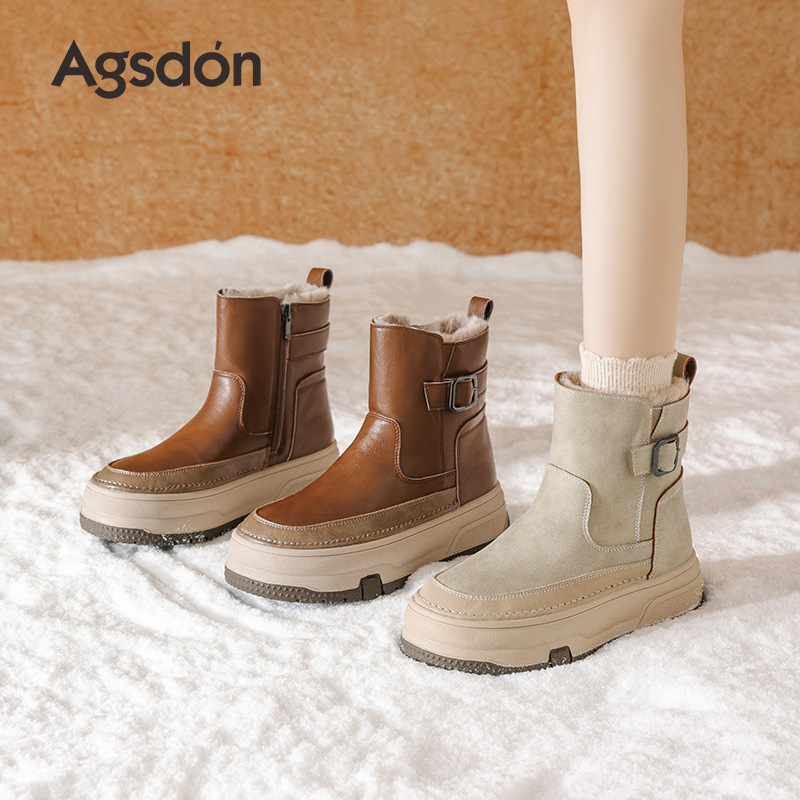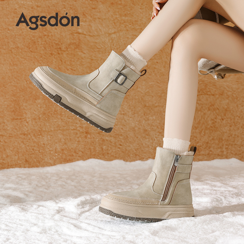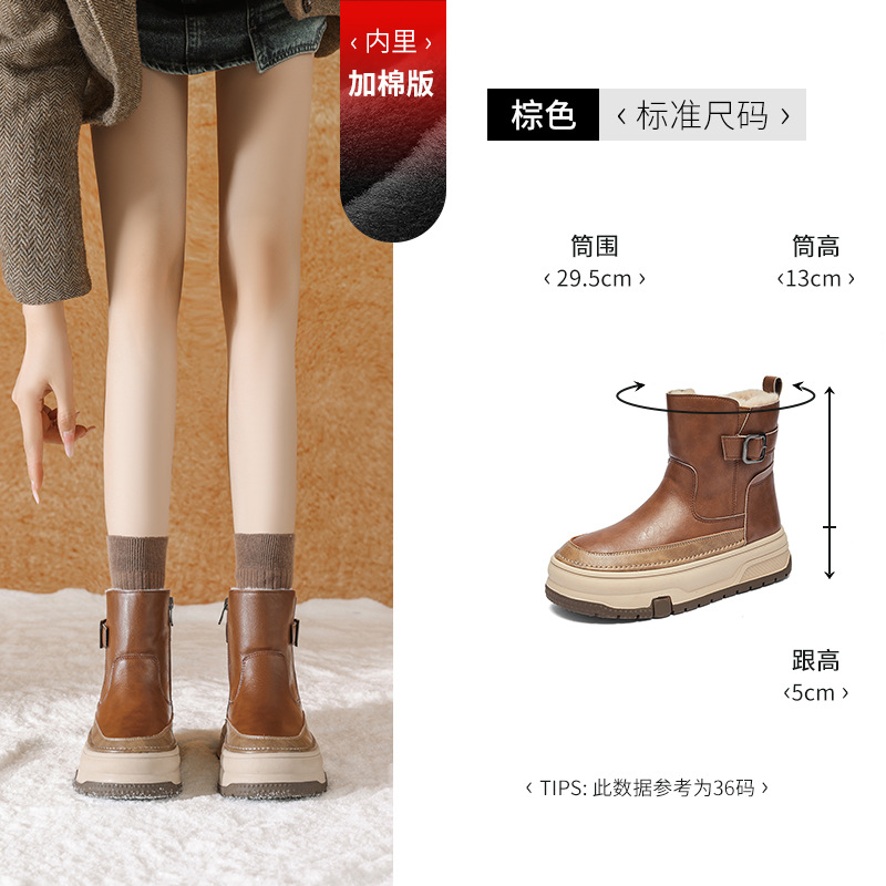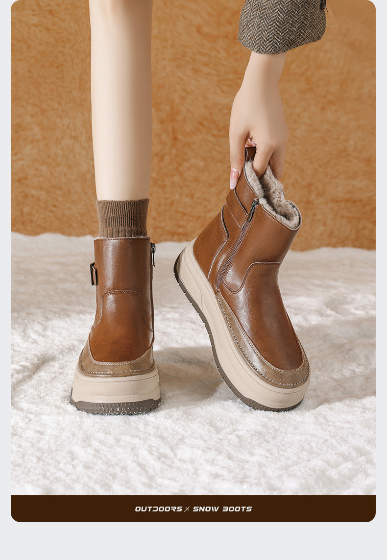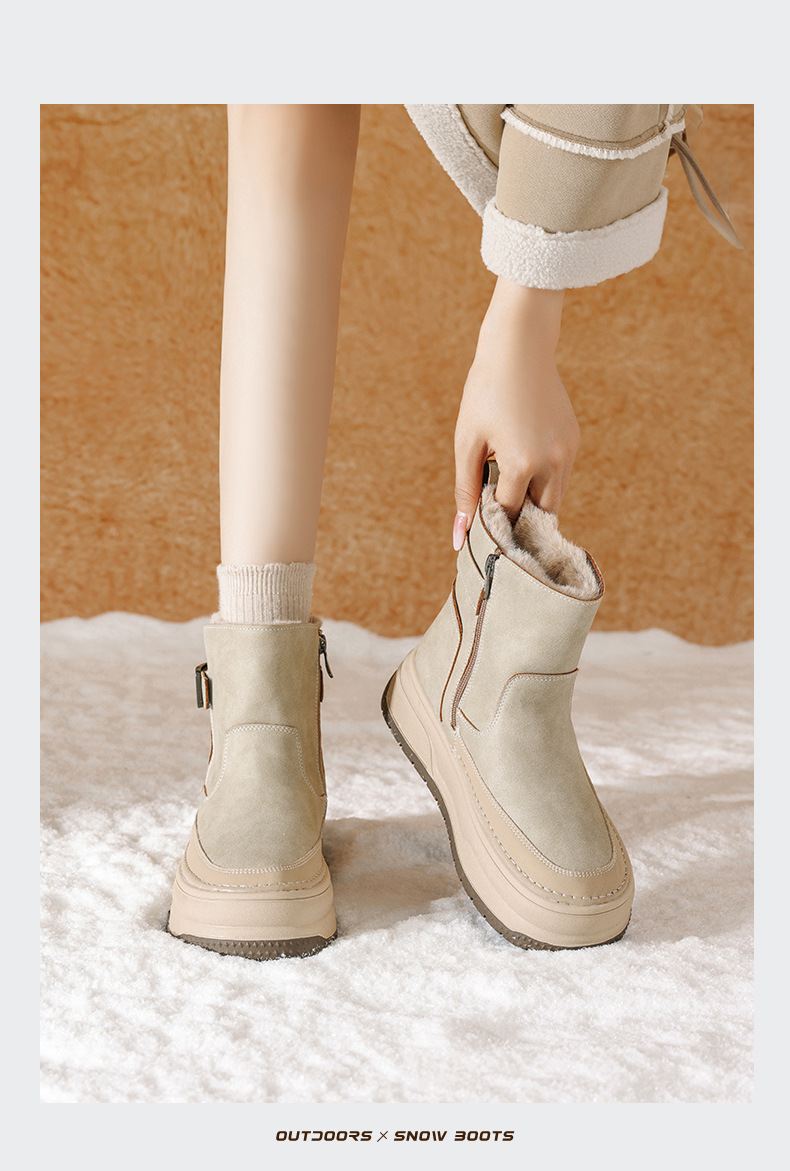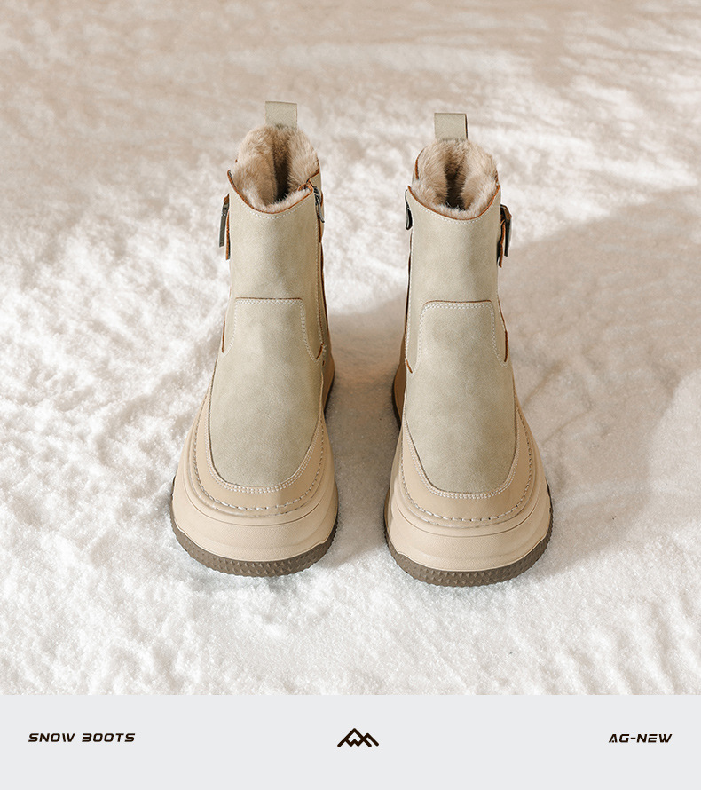 奥古狮登厚底雪地靴女2025新款冬季灰色加绒加厚靴子外穿短筒棉鞋