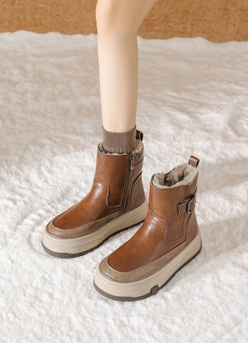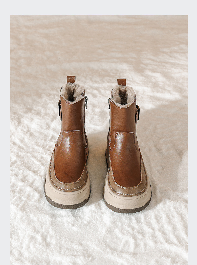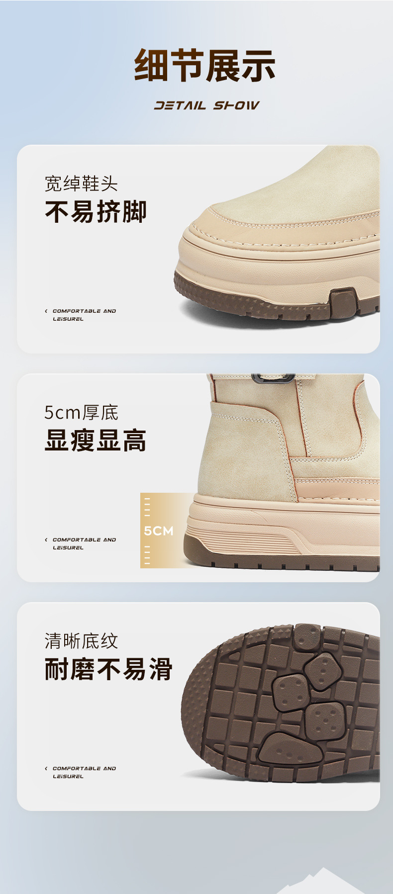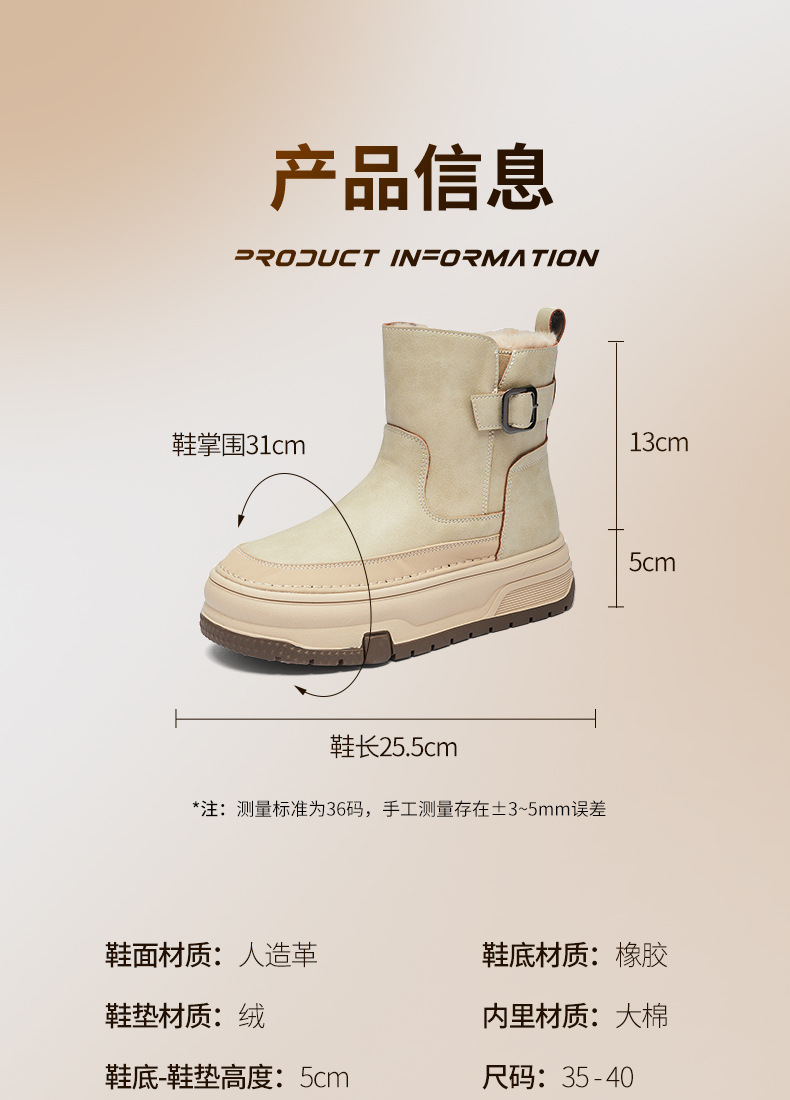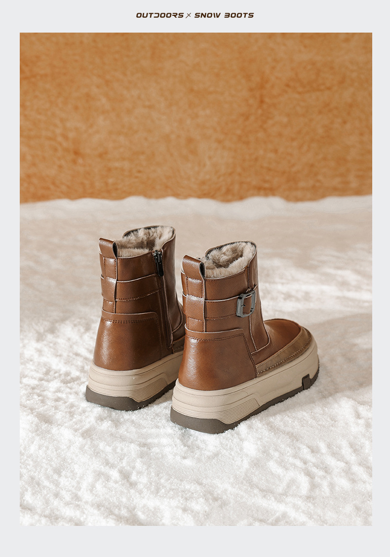 奥古狮登厚底雪地靴女2025新款冬季灰色加绒加厚靴子外穿短筒棉鞋