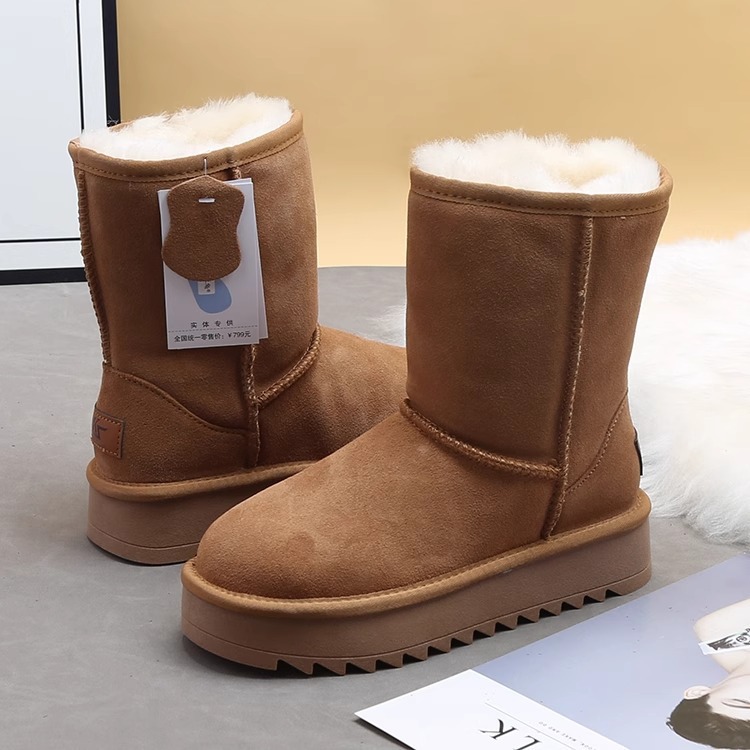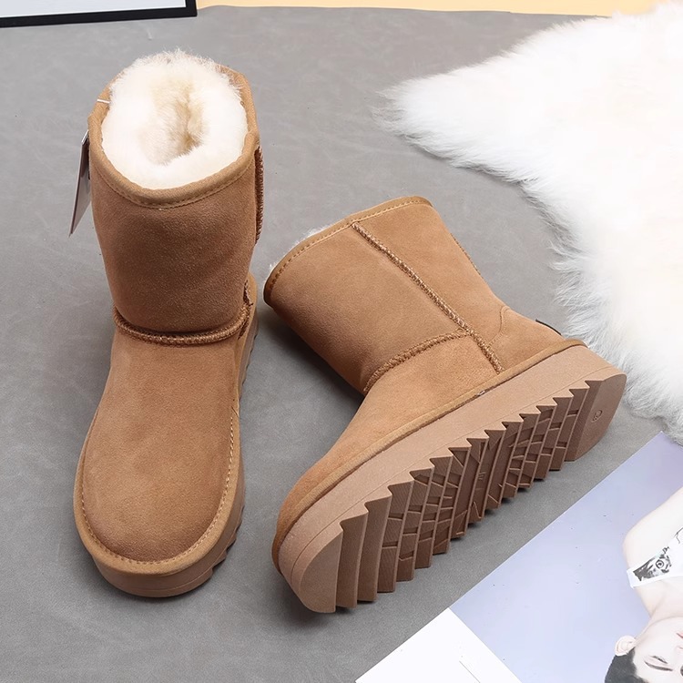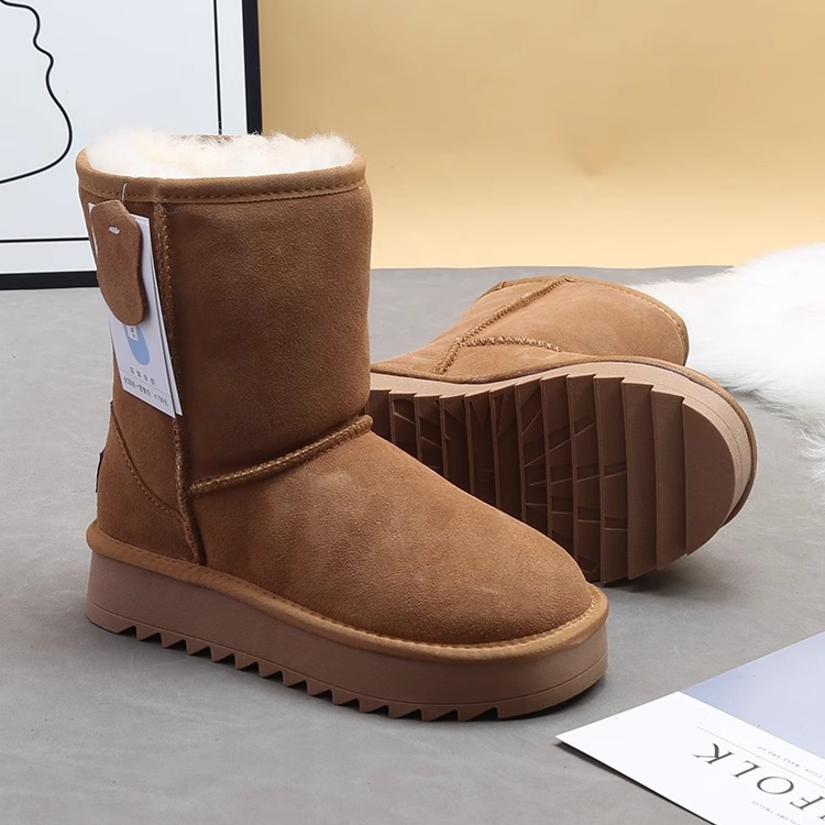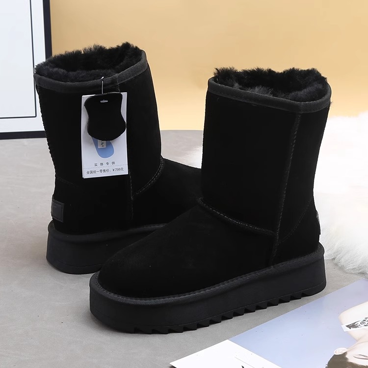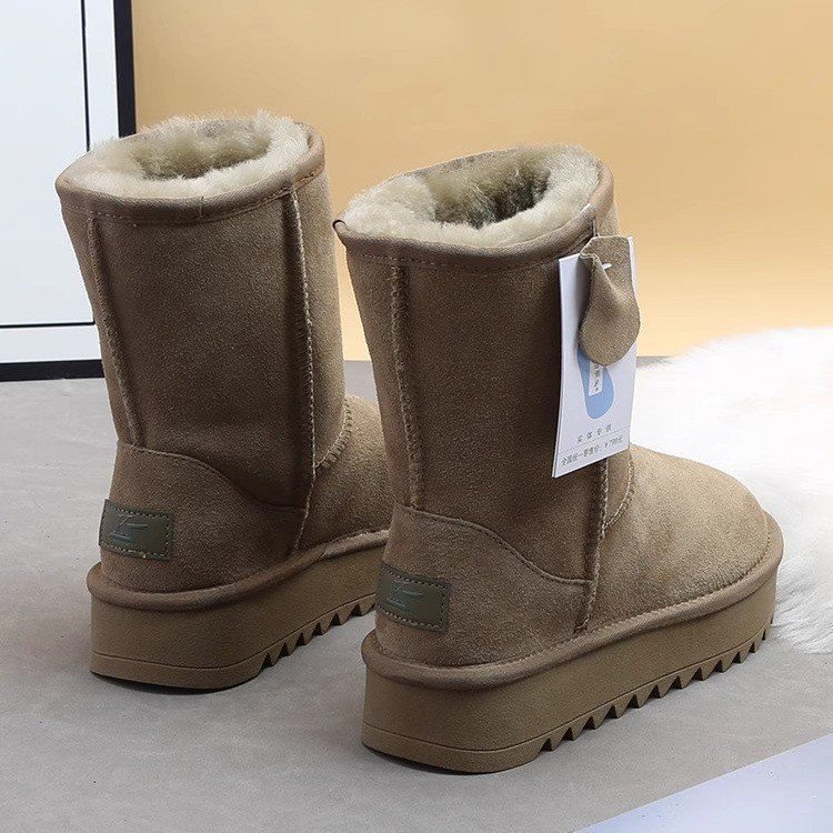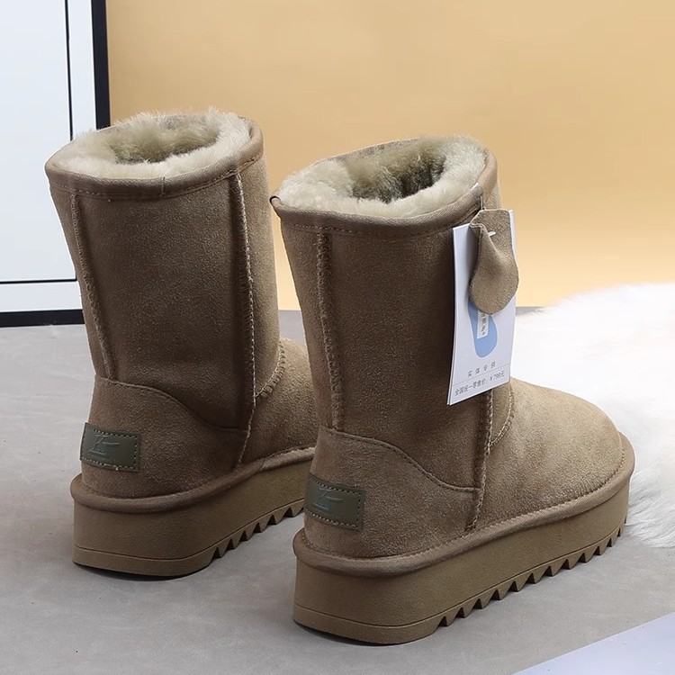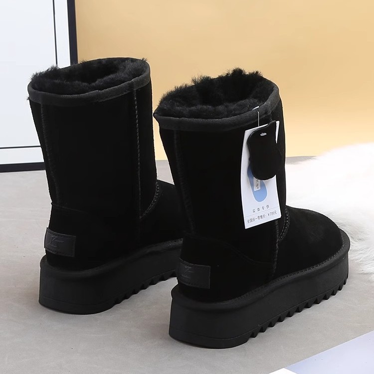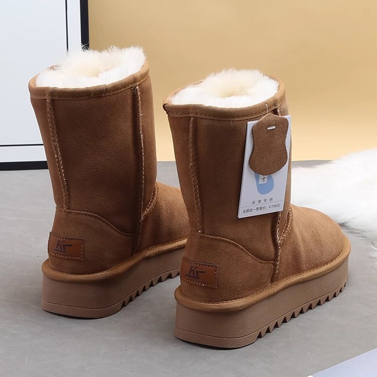 Thick soled snow boots, women's midsole, 2024 winter new item, fur integrated anti slip, northeast fleece warm cotton shoes
