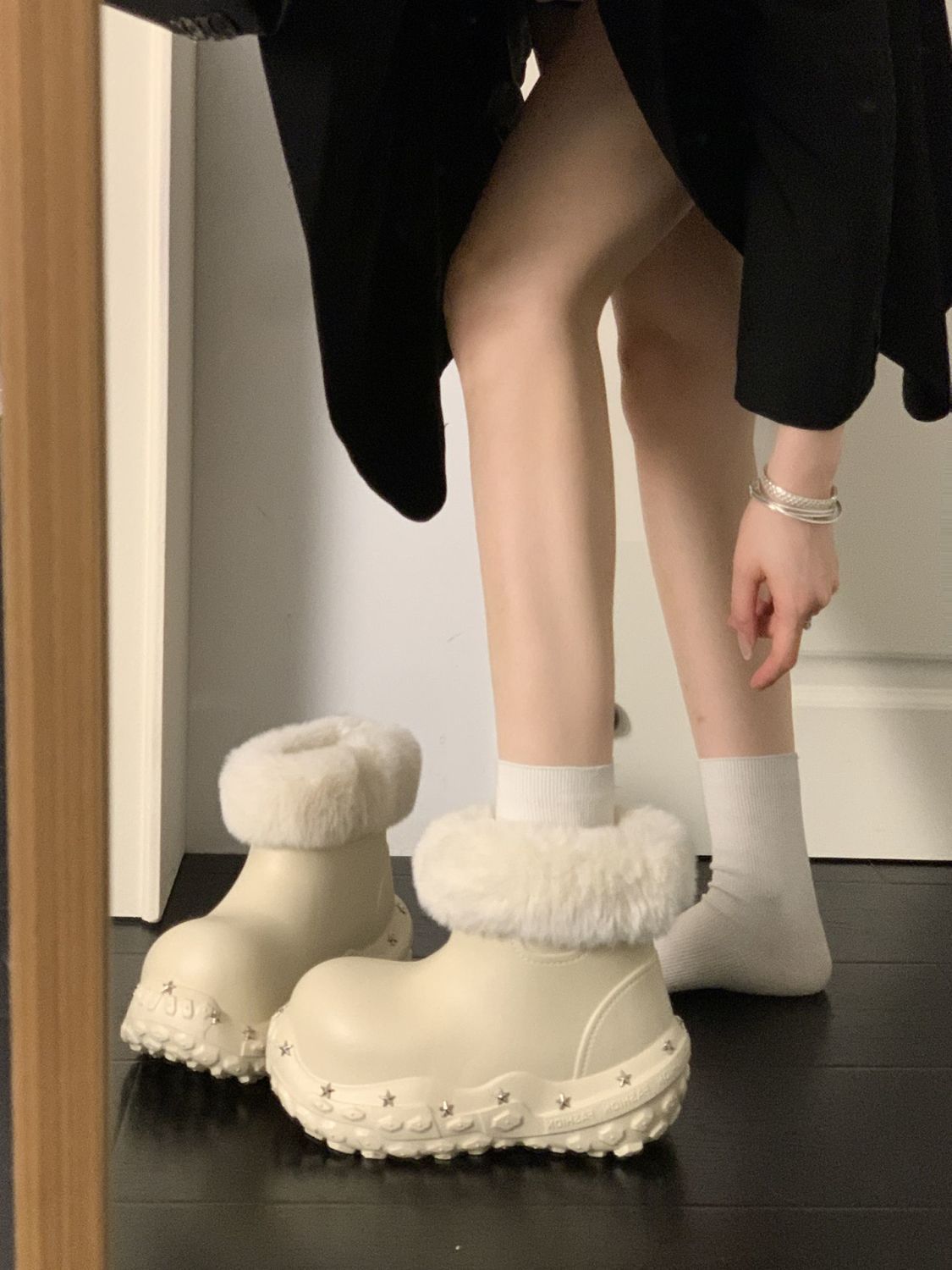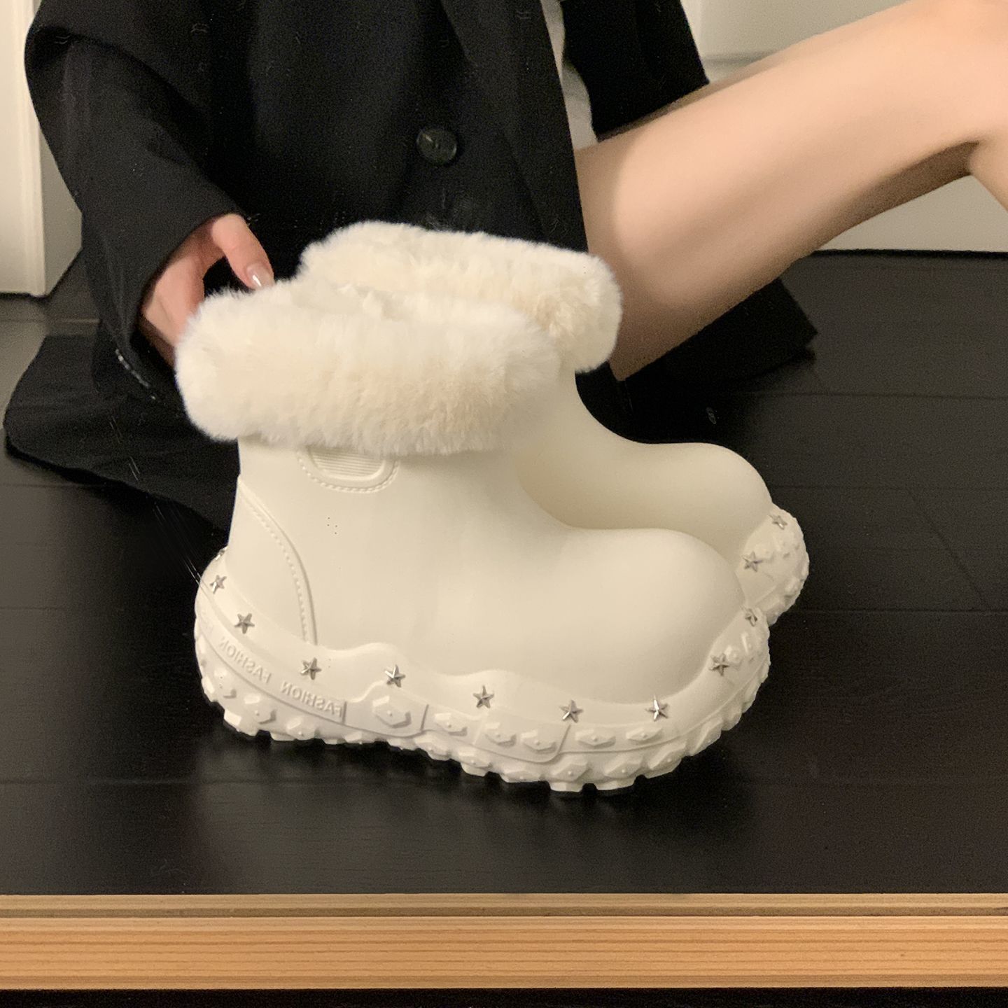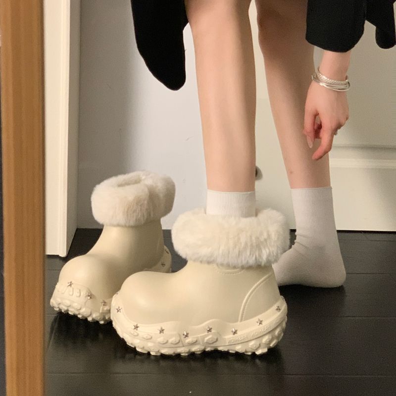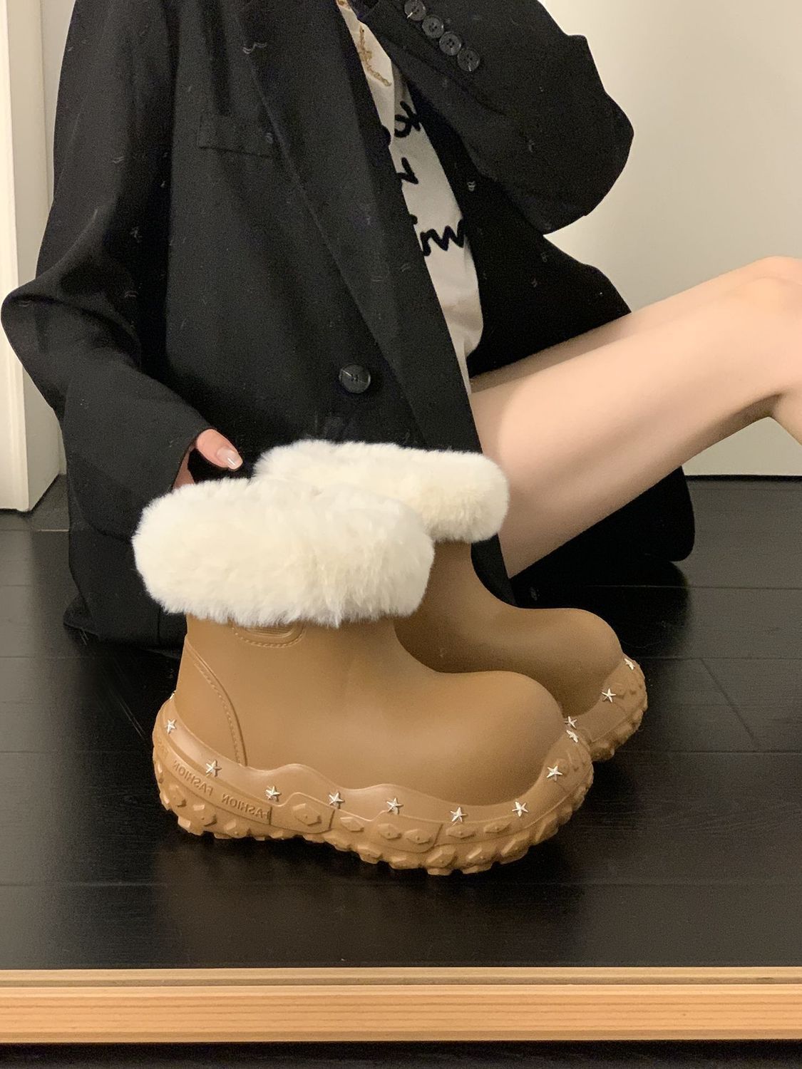Hairy thick sole height increasing snow boots for women 2025 new winter season with plush insulation, waterproof and anti slip short cotton boots