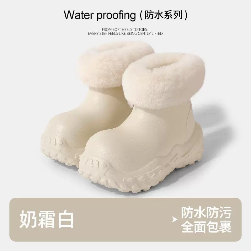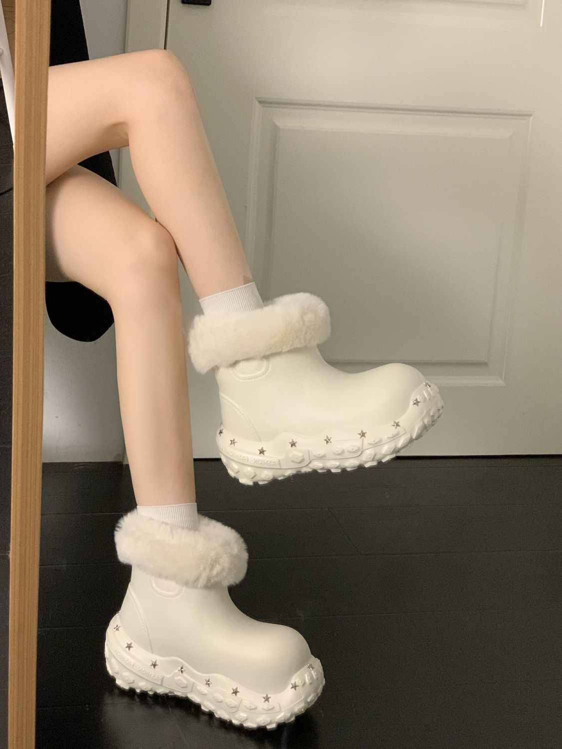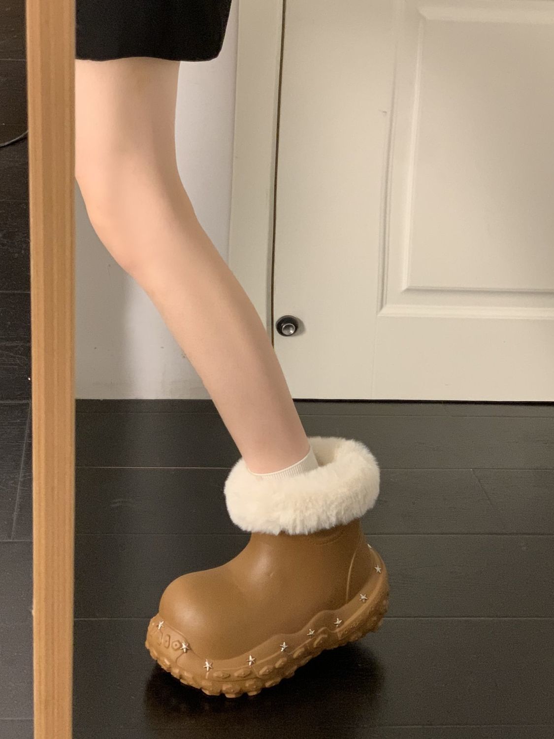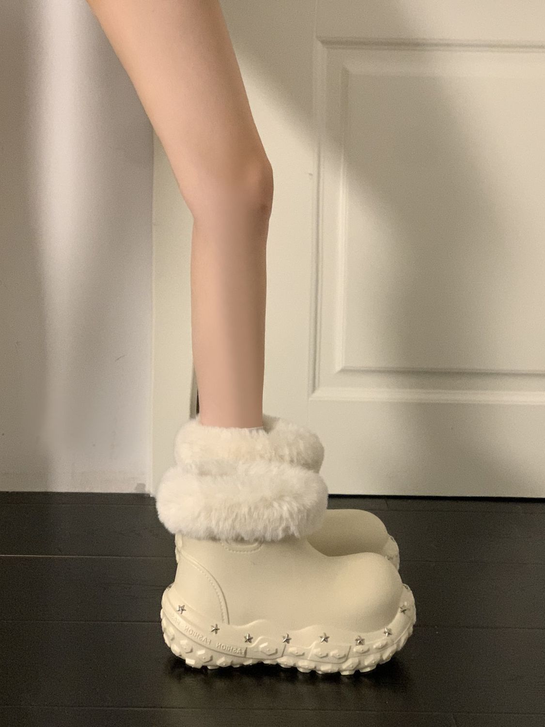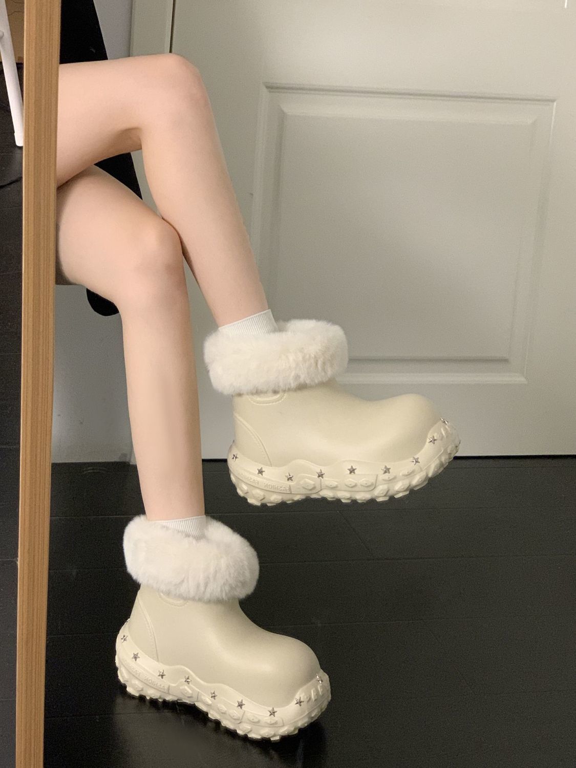 Hairy thick sole height increasing snow boots for women 2025 new winter season with plush insulation, waterproof and anti slip short cotton boots