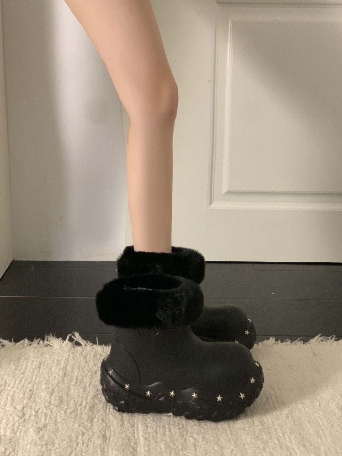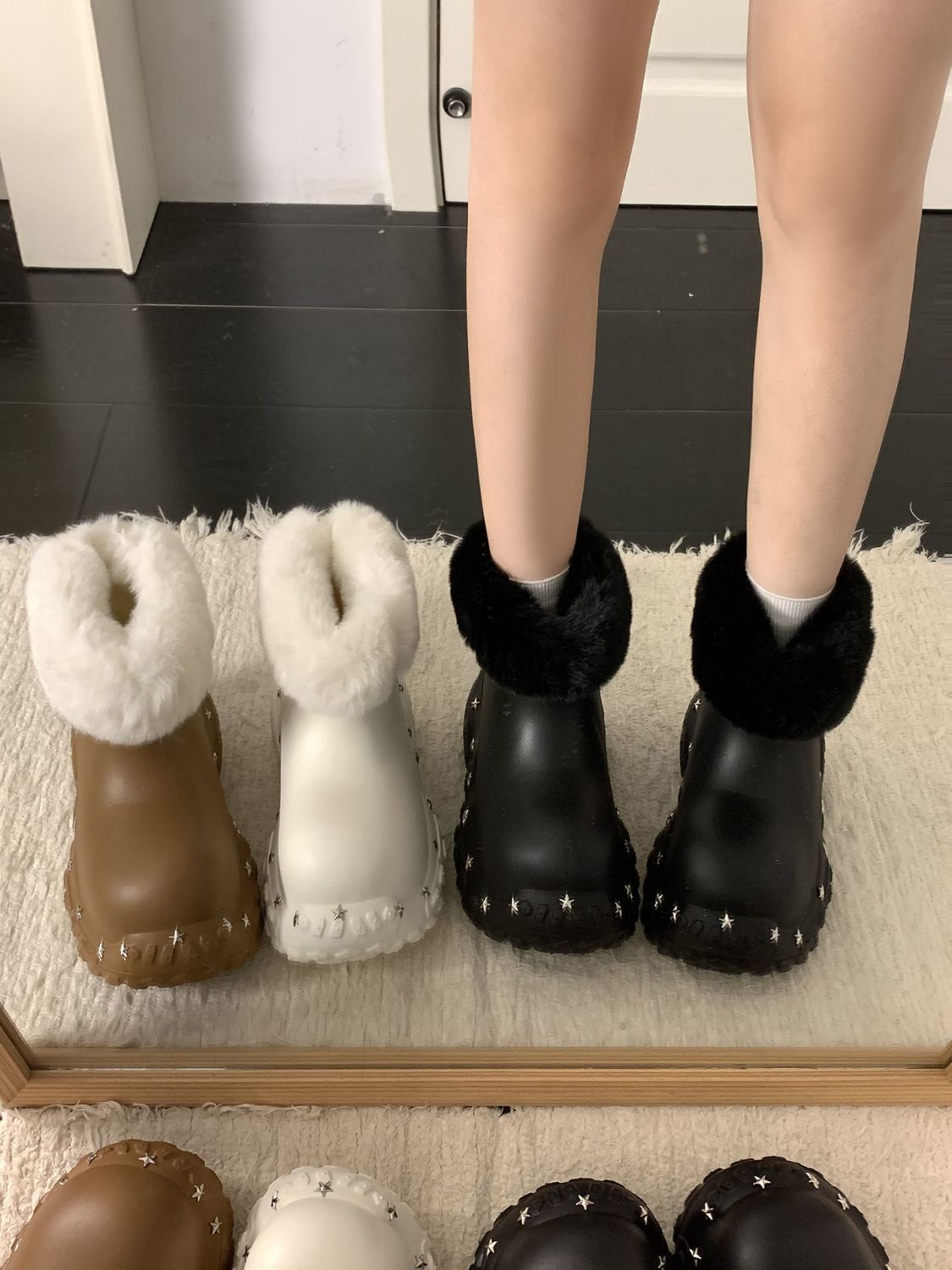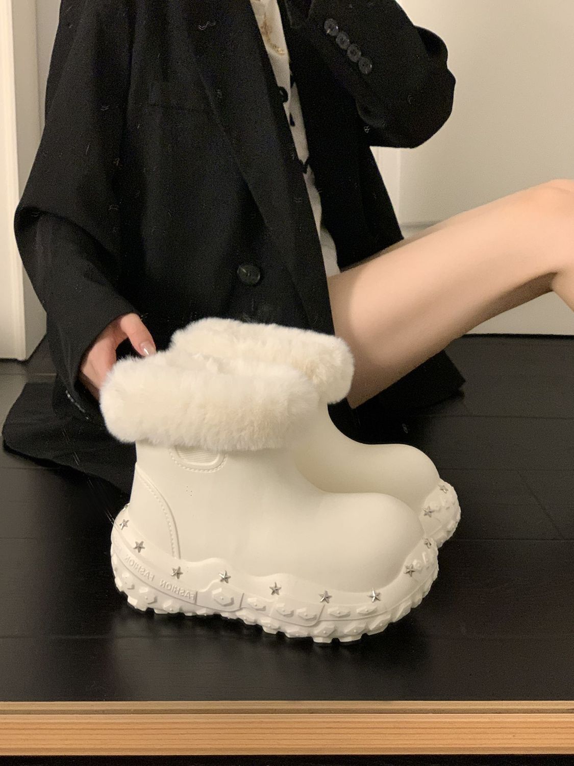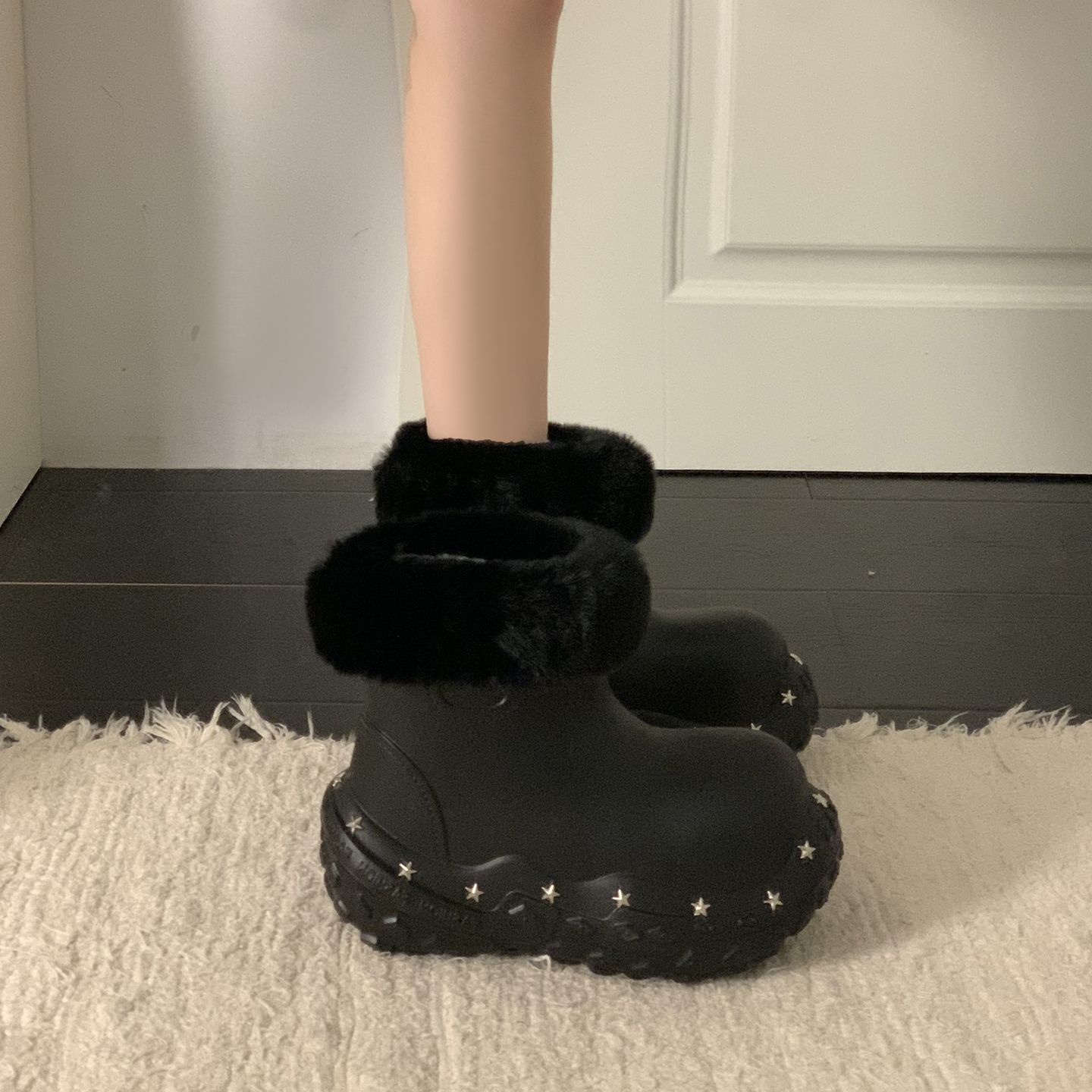 Hairy thick sole height increasing snow boots for women 2025 new winter season with plush insulation, waterproof and anti slip short cotton boots