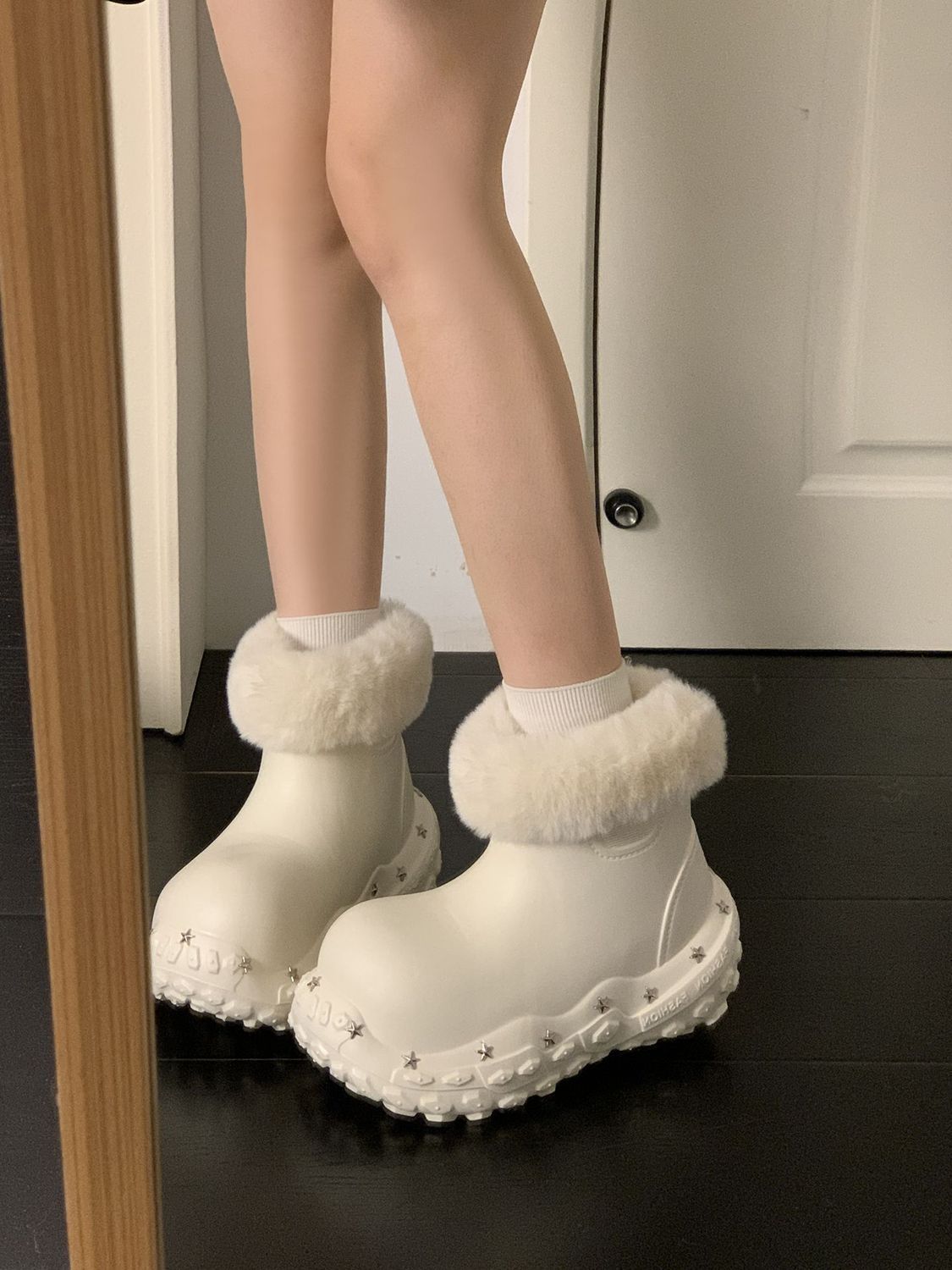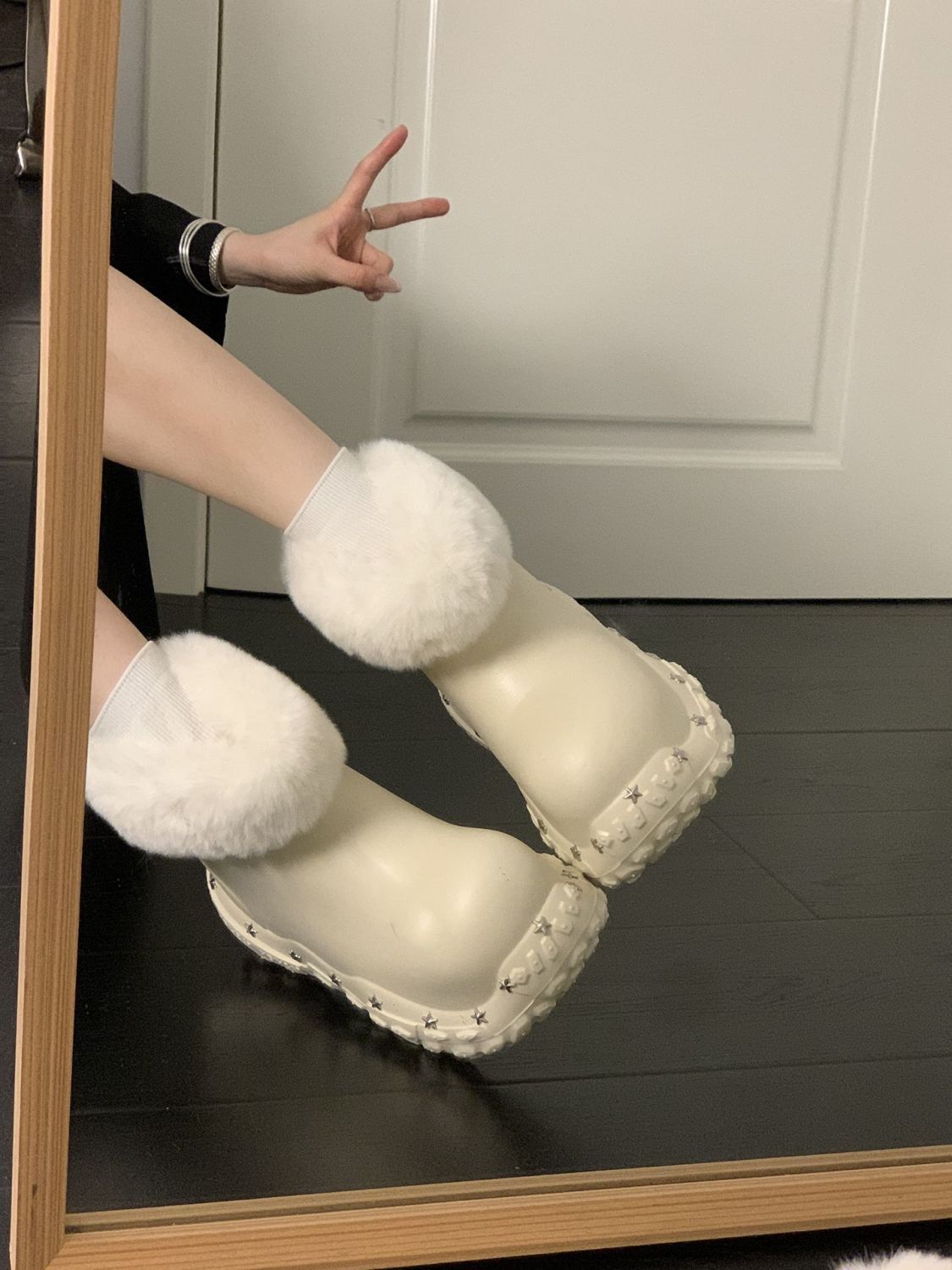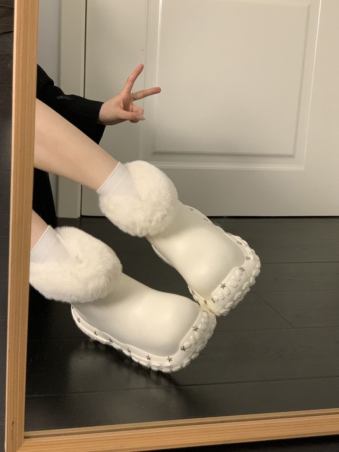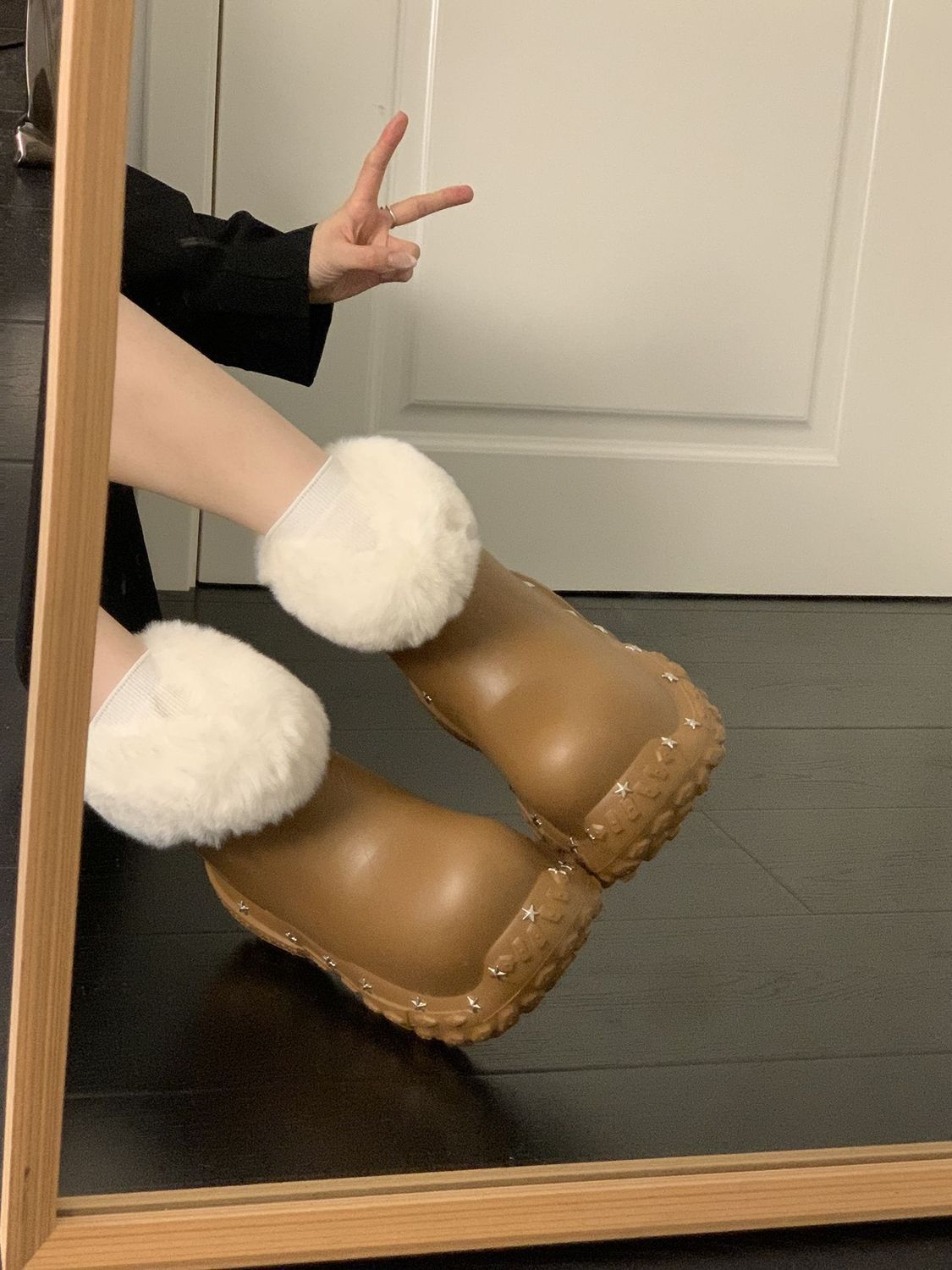 Hairy thick sole height increasing snow boots for women 2025 new winter season with plush insulation, waterproof and anti slip short cotton boots