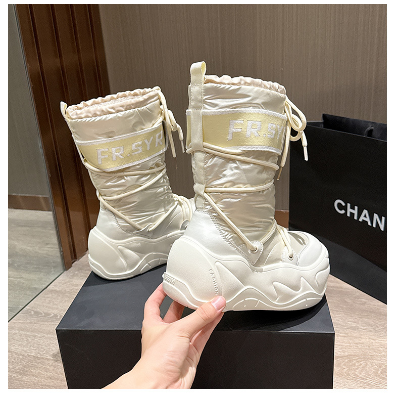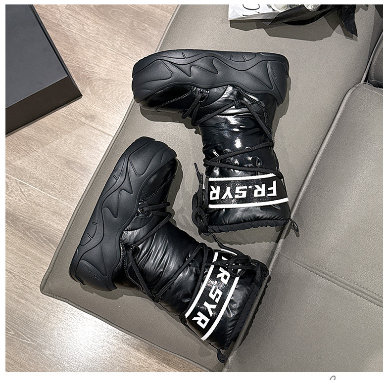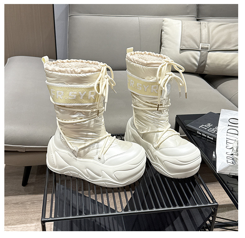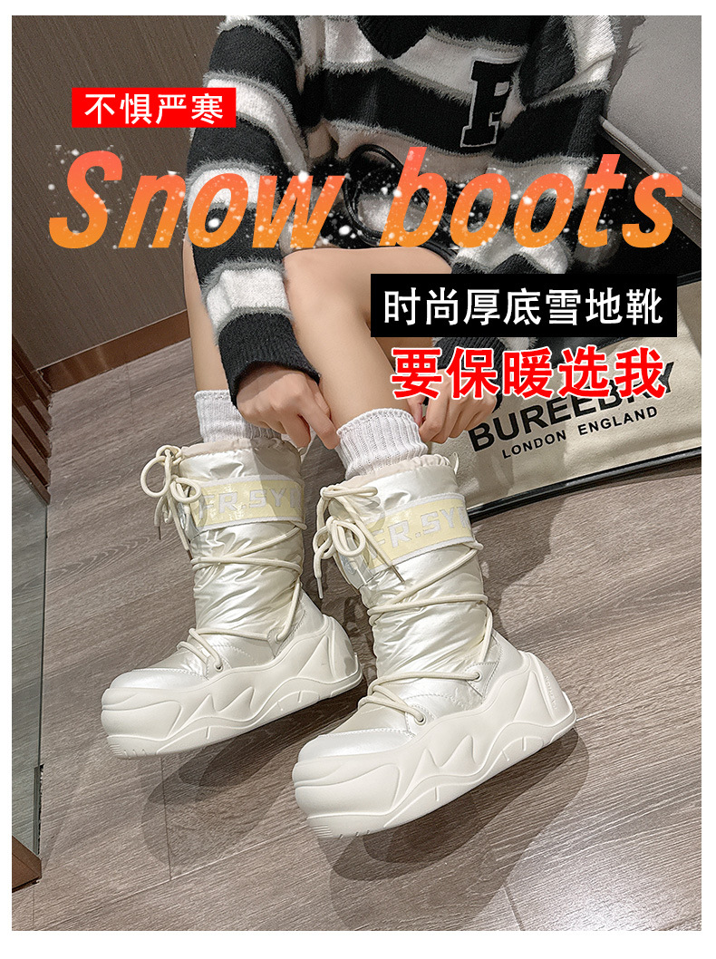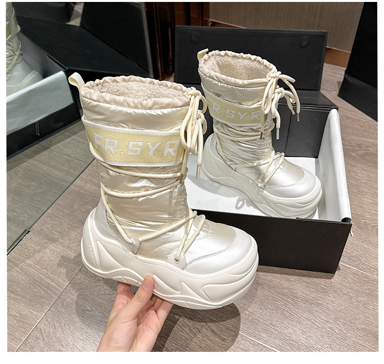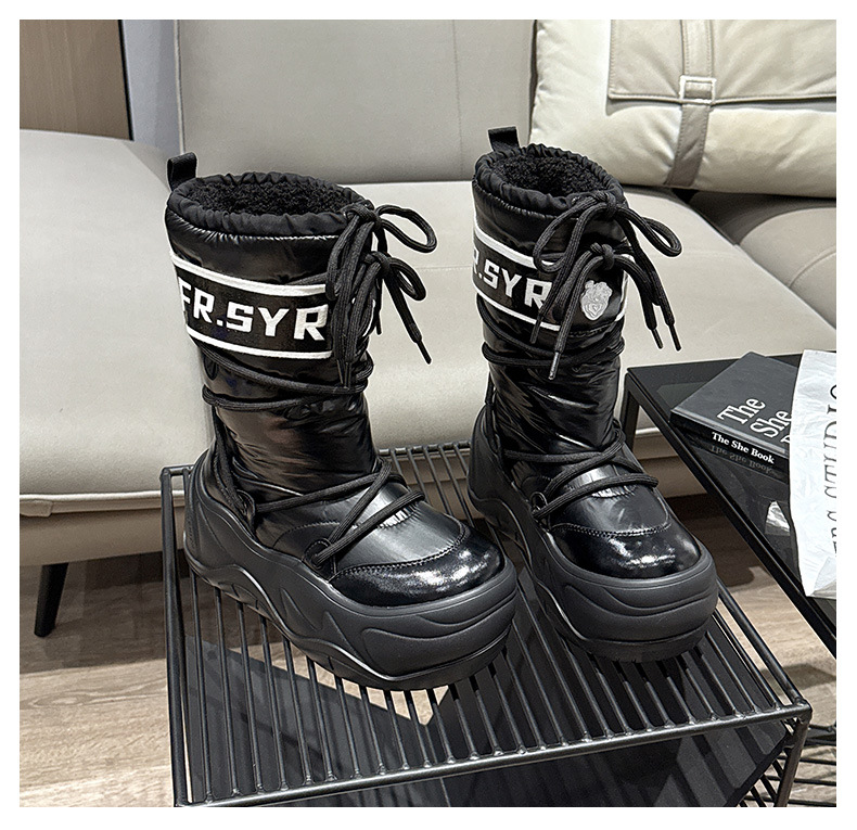 7CM thick soled warm snow boots for children, 2025 autumn and winter new style, mid tube with plush, ugly and cute moon boots, lace up cotton boots
