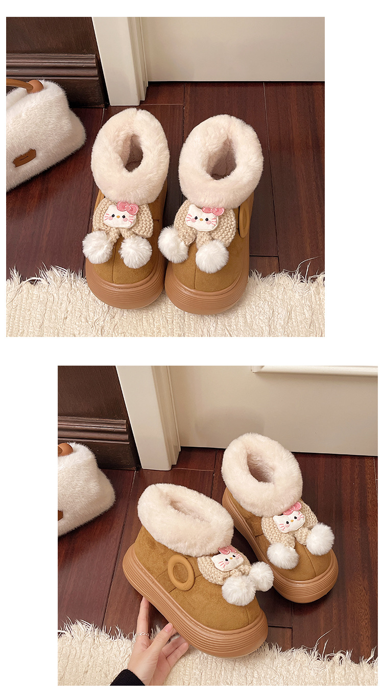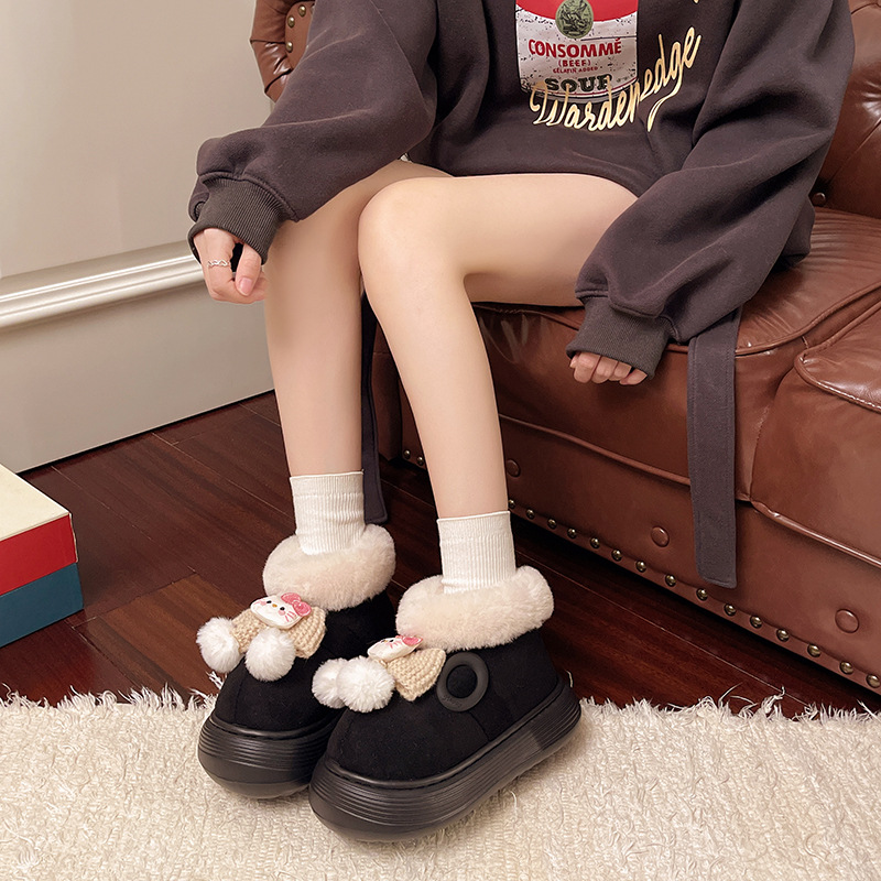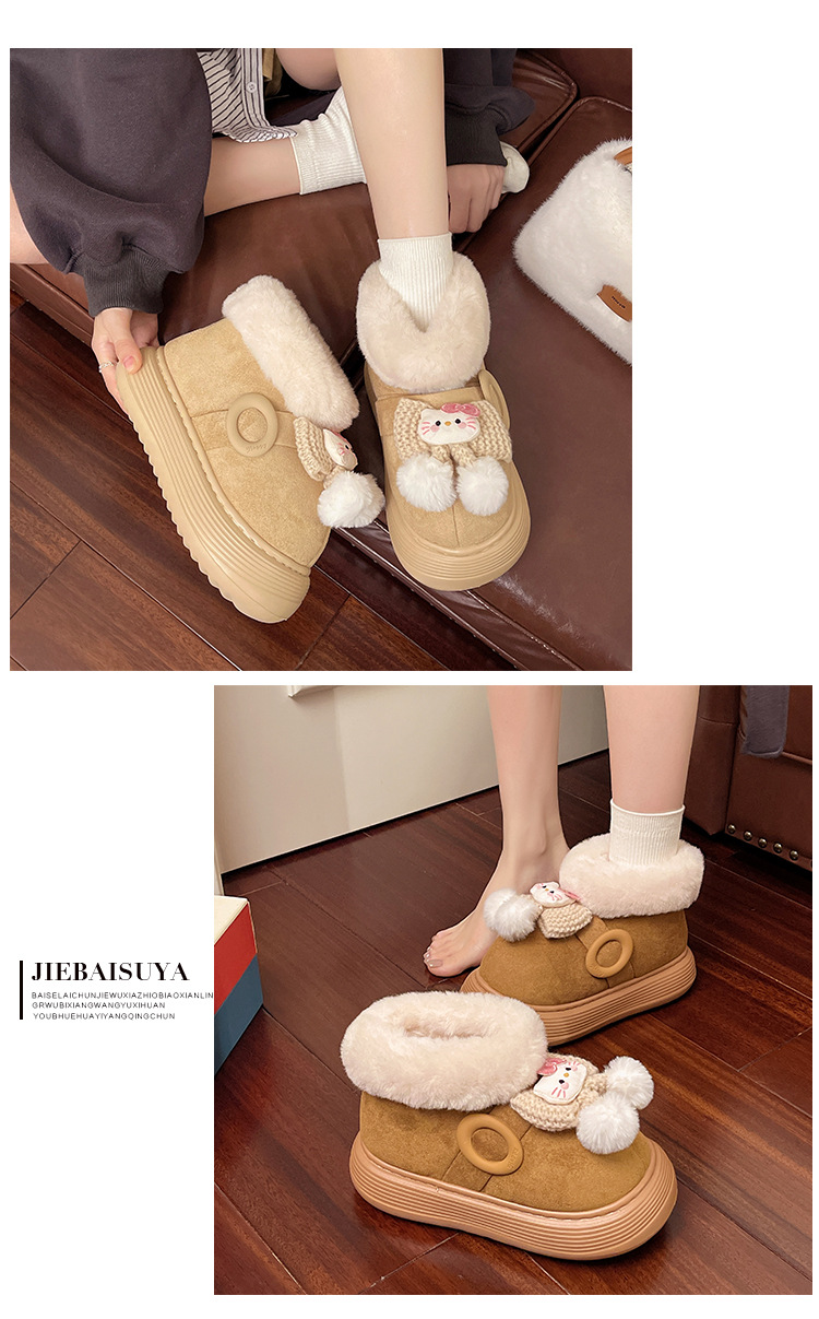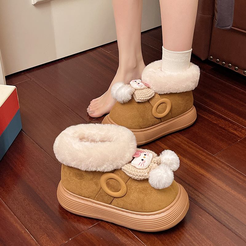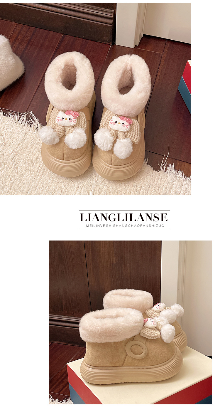 Красивые, с плюшевым толстым дном, женские снежные сапоги 2025 новые осенне - зимние противоскользящие теплые хлопчатобумажные сапоги, шерстяные хлопчатобумажные туфли