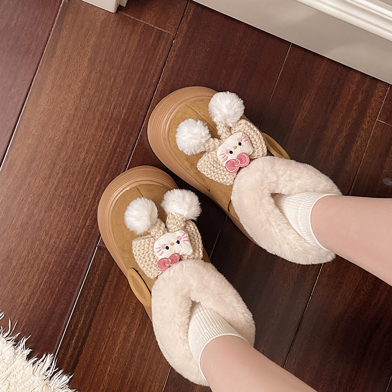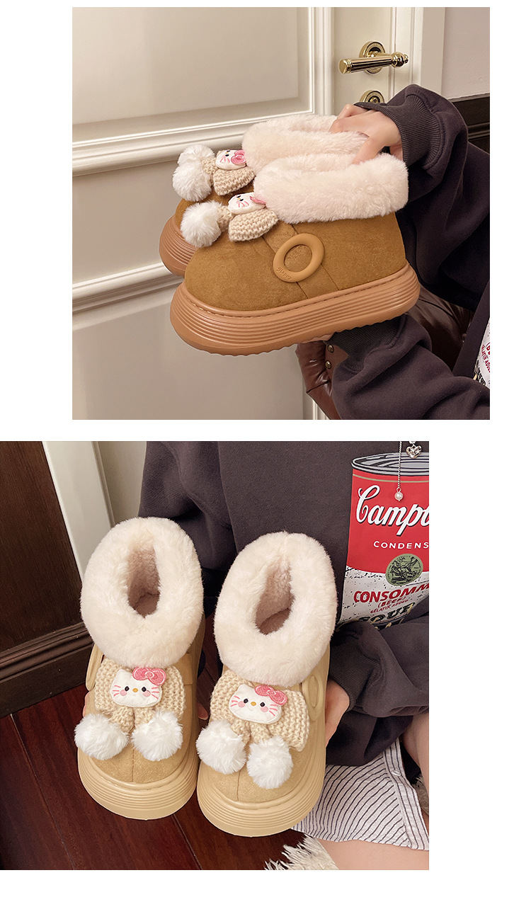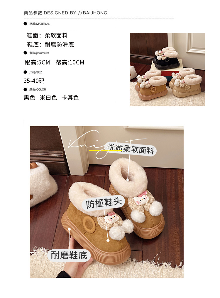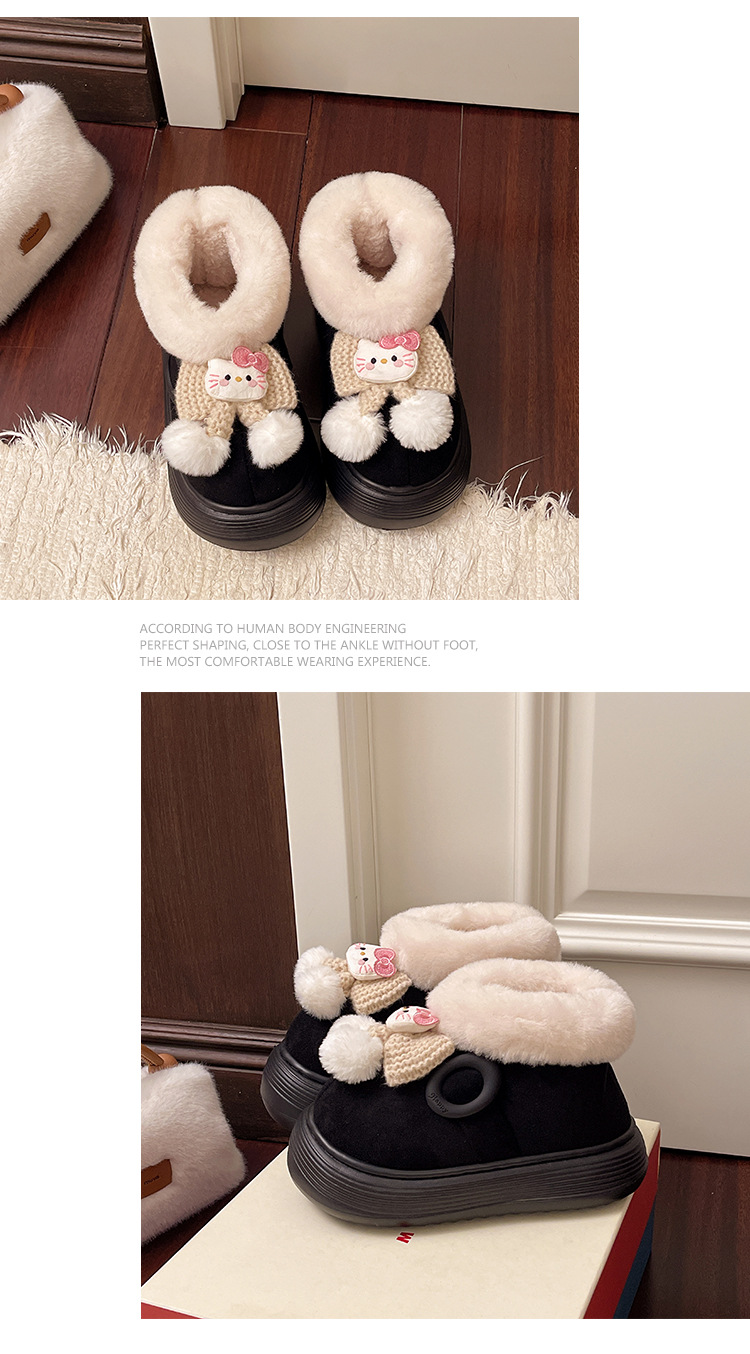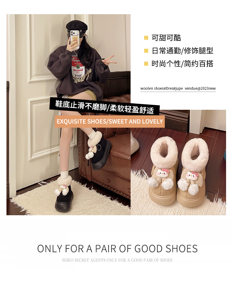 Красивые, с плюшевым толстым дном, женские снежные сапоги 2025 новые осенне - зимние противоскользящие теплые хлопчатобумажные сапоги, шерстяные хлопчатобумажные туфли