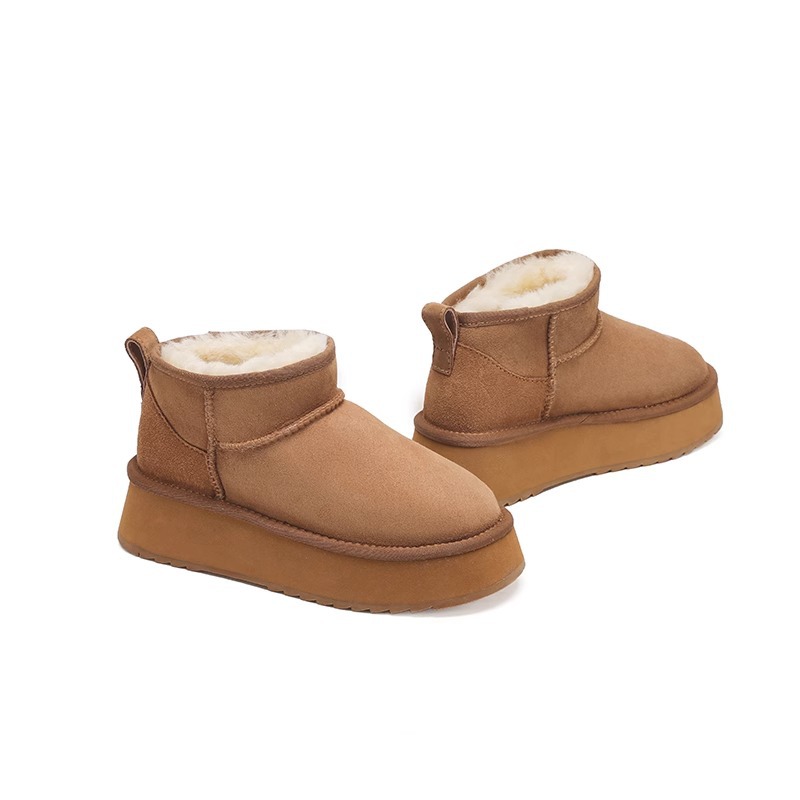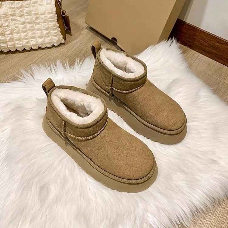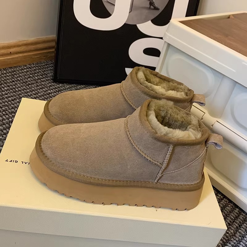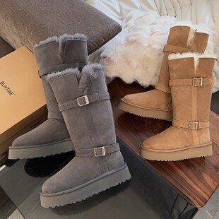 真软皮雪地靴女外穿2025年冬季皮毛一体松糕厚底短筒靴保暖款防寒