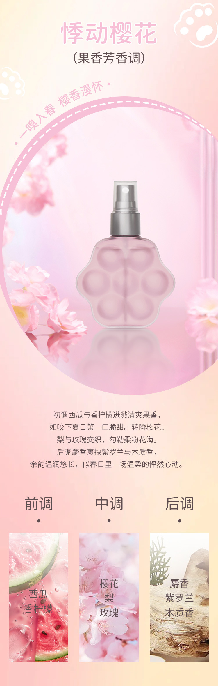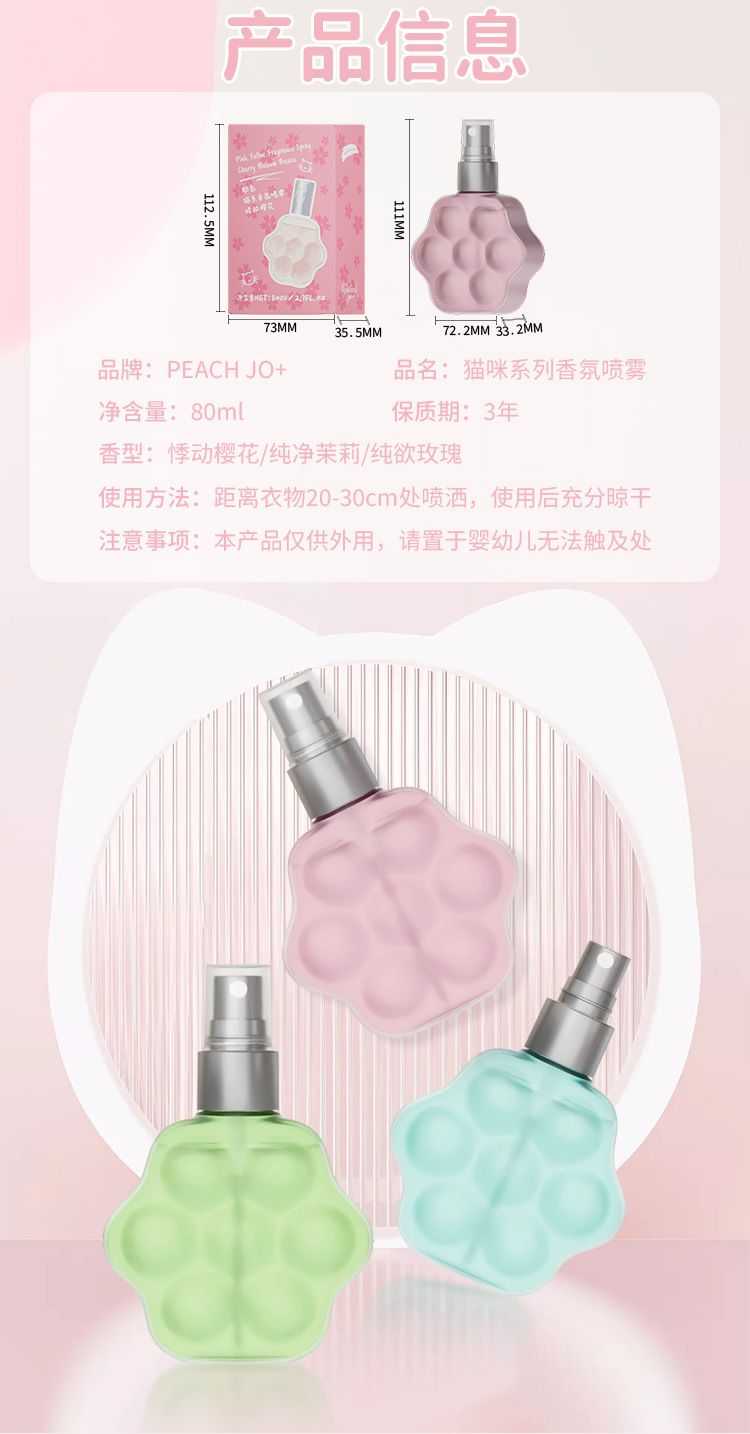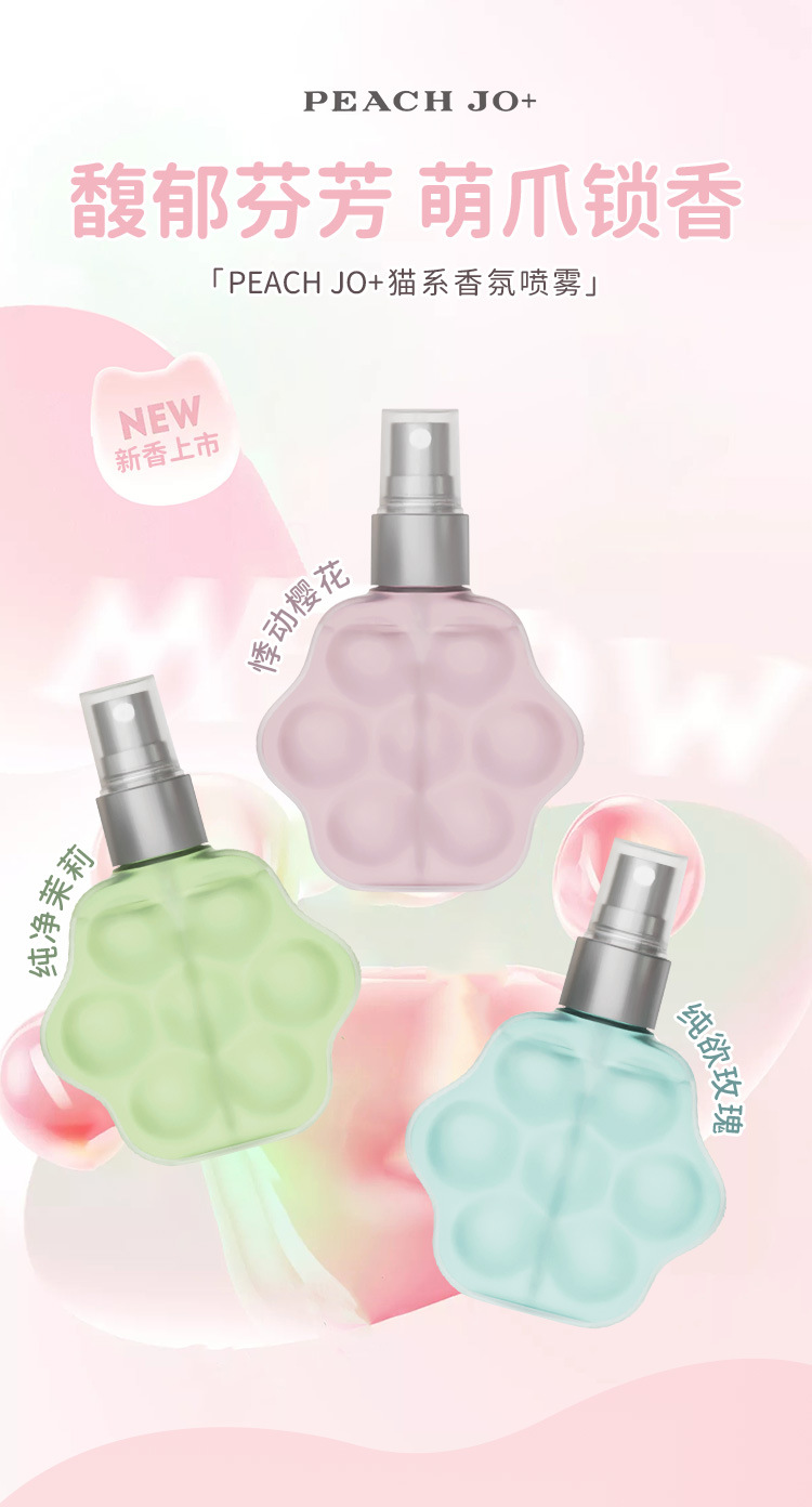 Cross border PEACH JO+peach cat paw perfume jasmine rose clothing fragrance deodorant spray for men and women