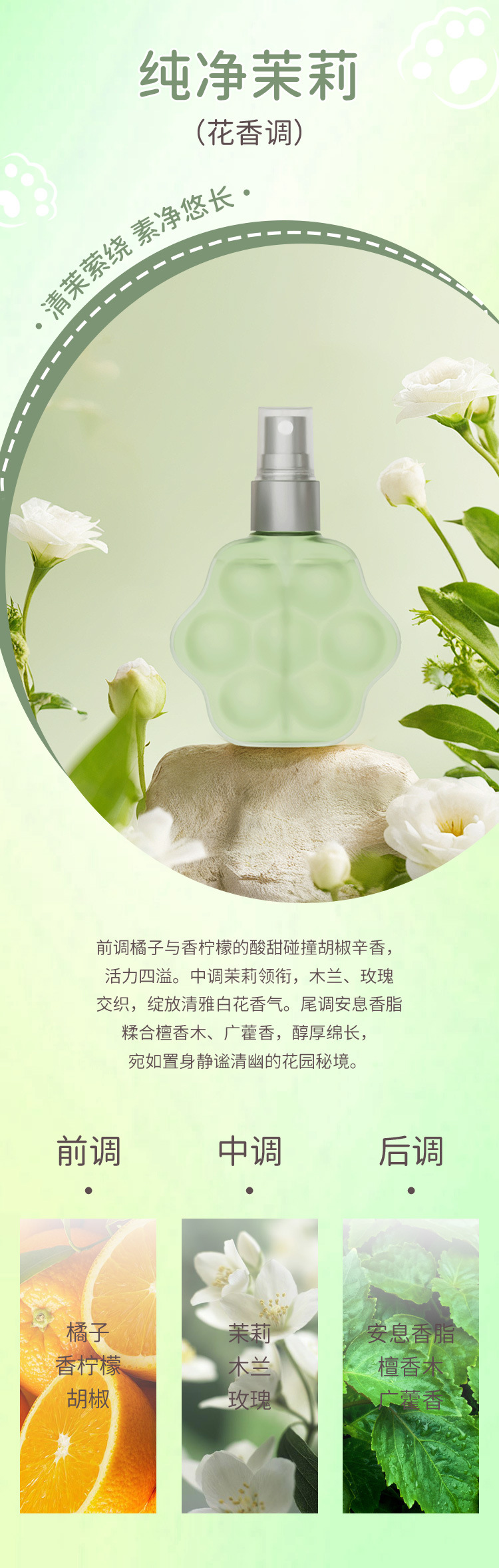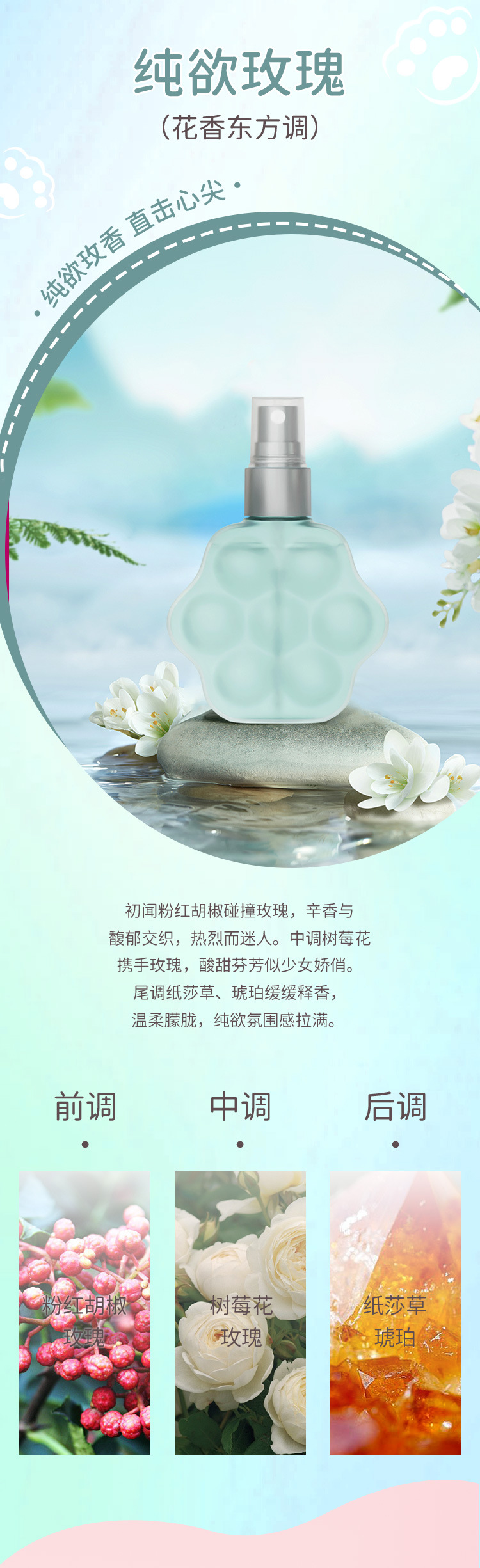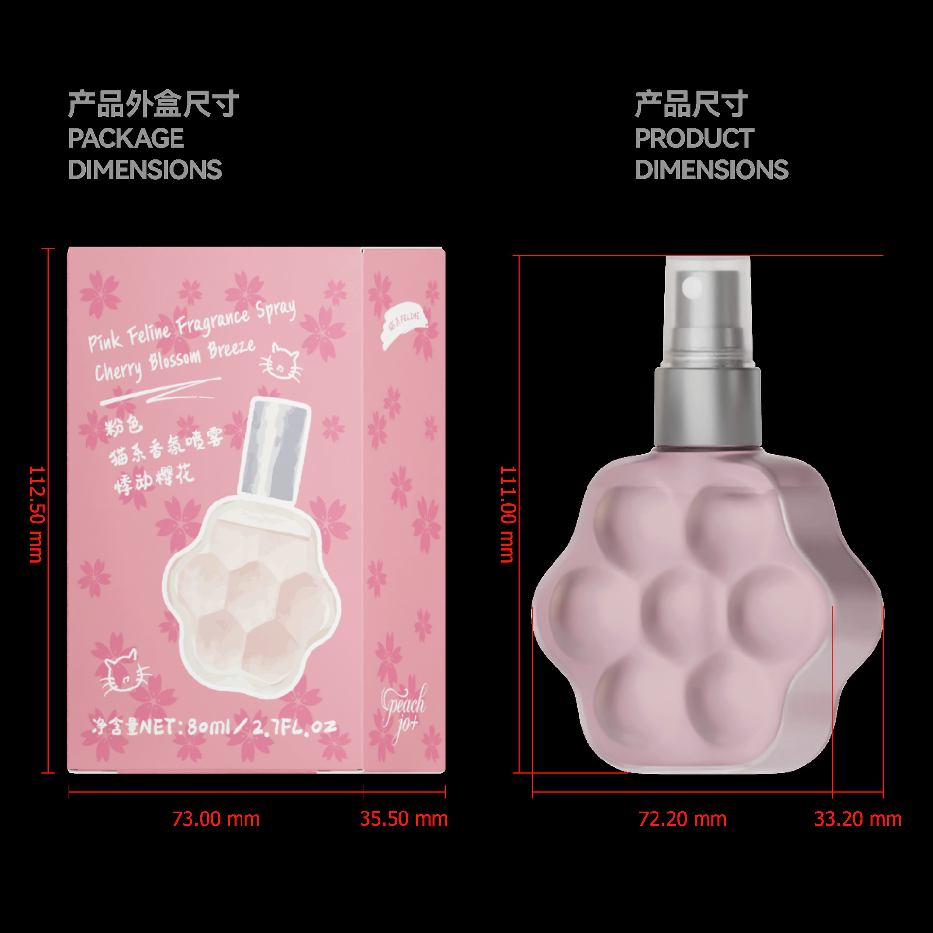 Cross border PEACH JO+peach cat paw perfume jasmine rose clothing fragrance deodorant spray for men and women