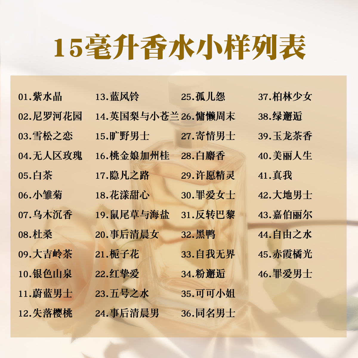 | 香味 | 杏仁味;哈密瓜;古龙香;牛奶;广藿香;岩兰草;忍冬;柑橘味;奶香味;兰花味;丁香味;无花果味;乳香味;松木味;佛手柑味;木兰;柏木味;晚香玉味;小苍兰味;安息香味 |