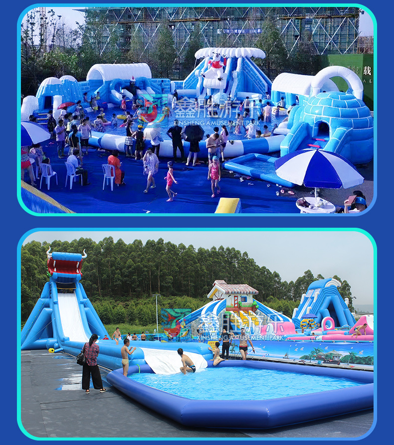 Надувной аквапарк Производитель оборудования Большой наружный подвижной кронштейн бассейн детская надувная игрушка горка