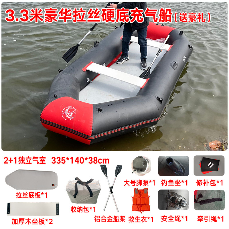 Роскошная надувная байдарка с твердым дном, надувная лодка на воздушной подушке, рыбалка, трёхслойная сетка, складная тележка, байдарка.