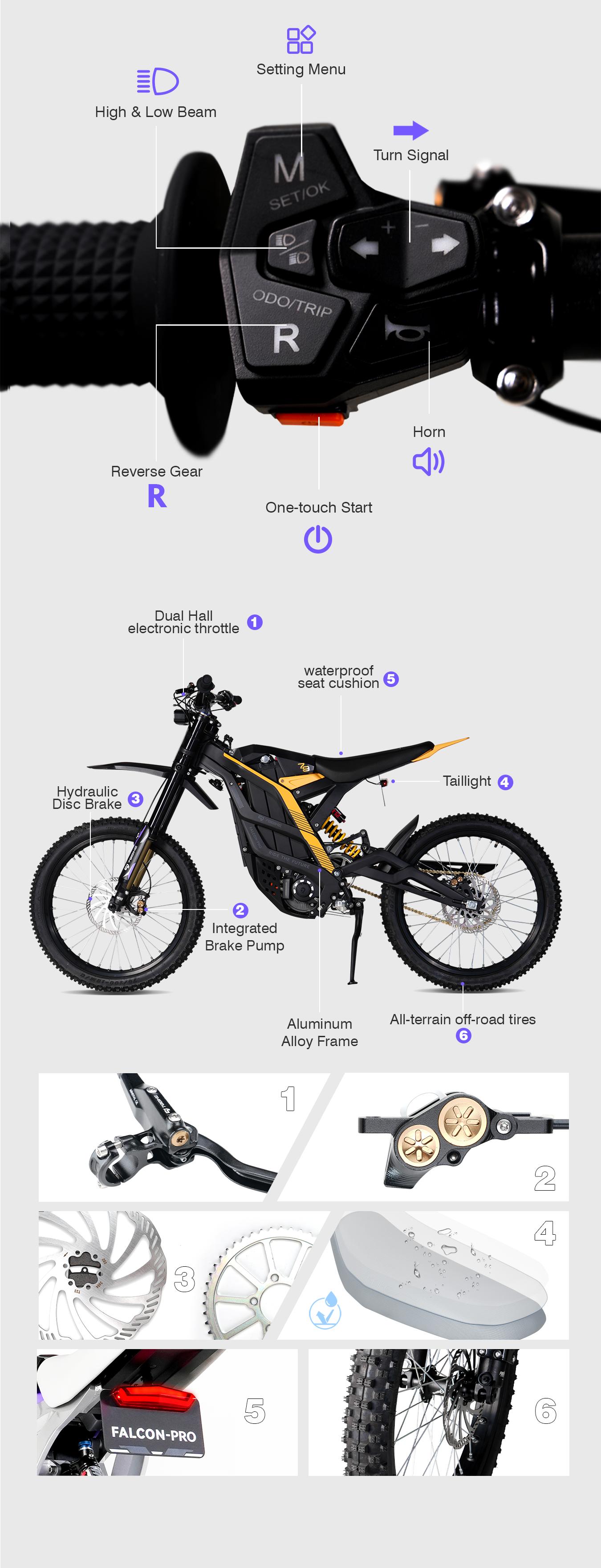 79 bike Falcon Pro Электрический внедорожник 85 км / ч Высокоскоростной 10 000 Вт литий - электрический EEC 72V алюминиевый сплав