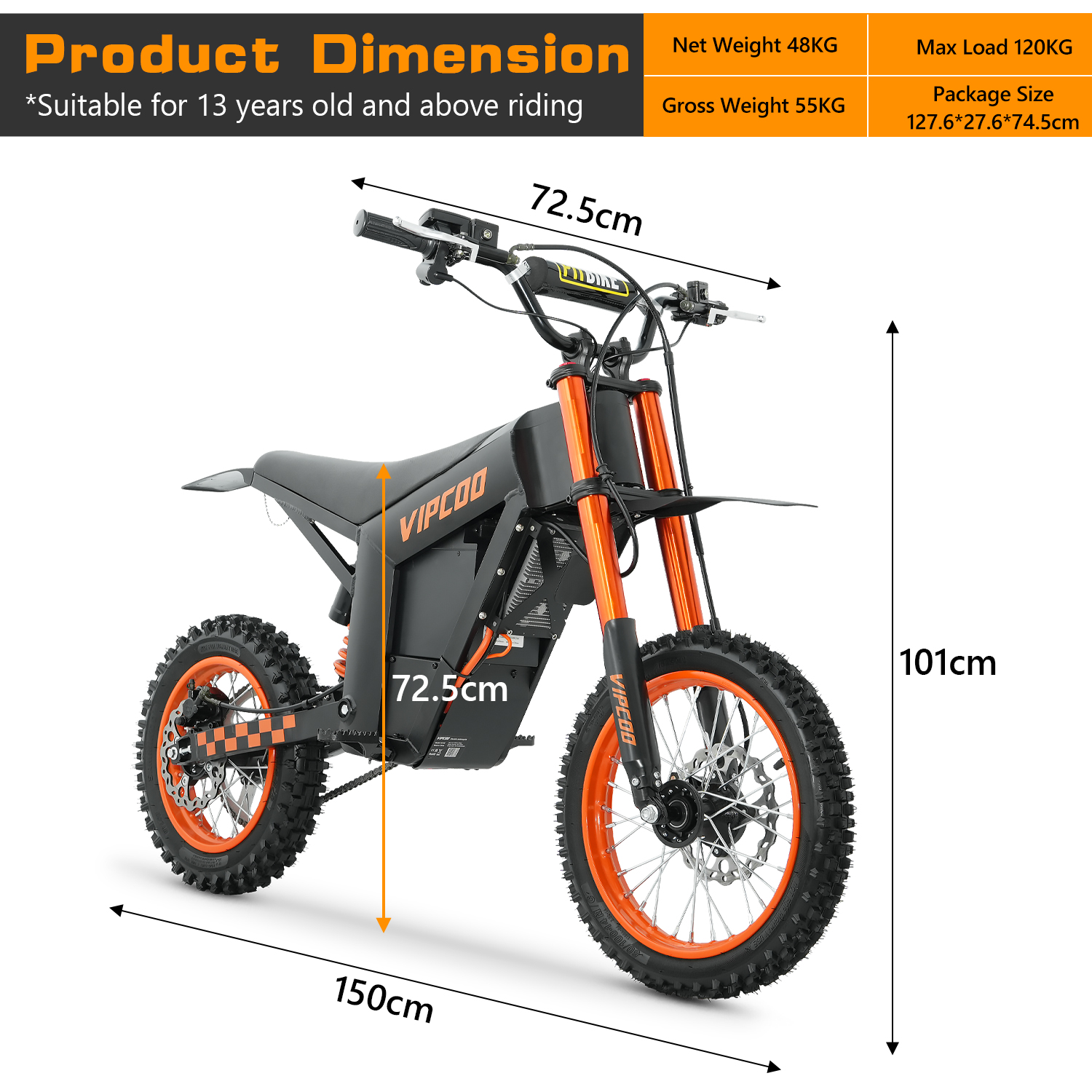 США Британский склад VIPCOO H3 65 км / ч Enduro Гибридный внедорожник 14 - дюймовый мотоцикл из алюминиевого сплава E с литиевым аккумулятором питания
