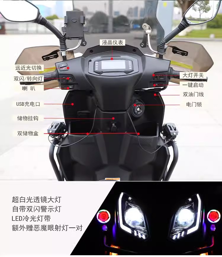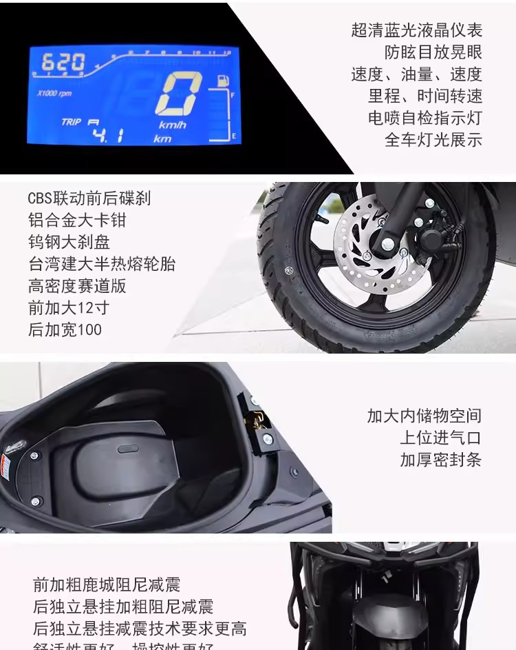 Новый длинный колокольчик UY125cc Страна Четырехтопливный самокат ABS на вынос экономичный мотоцикл