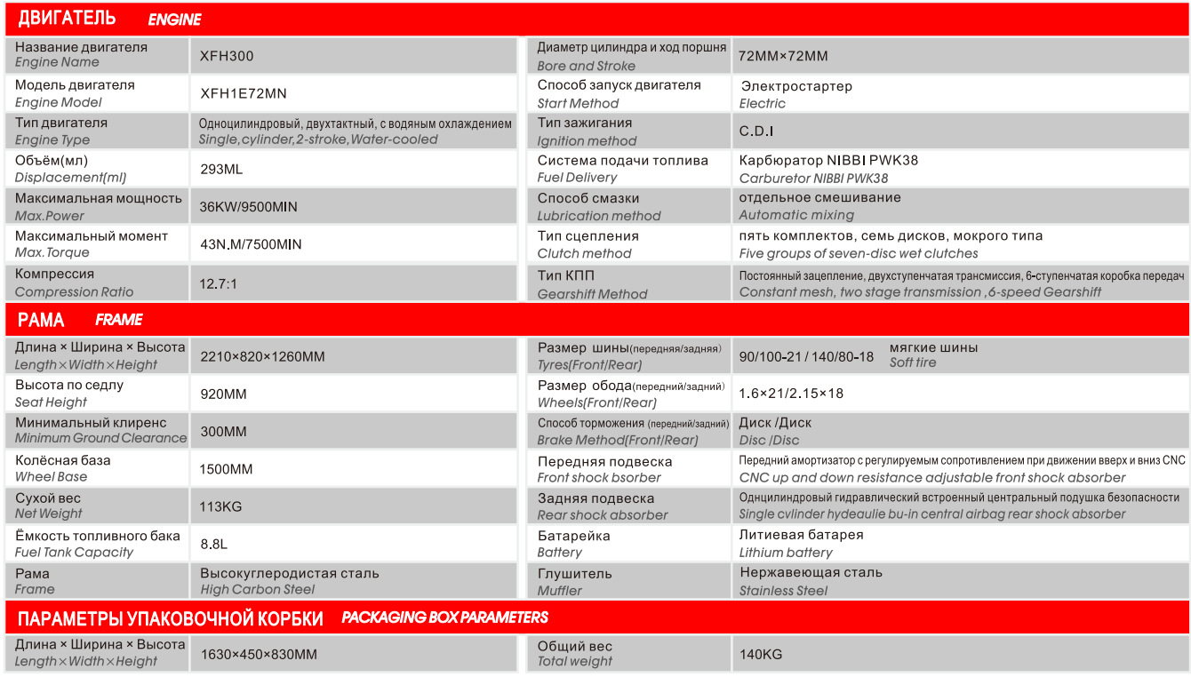 | модель двигателя | XFH300 |