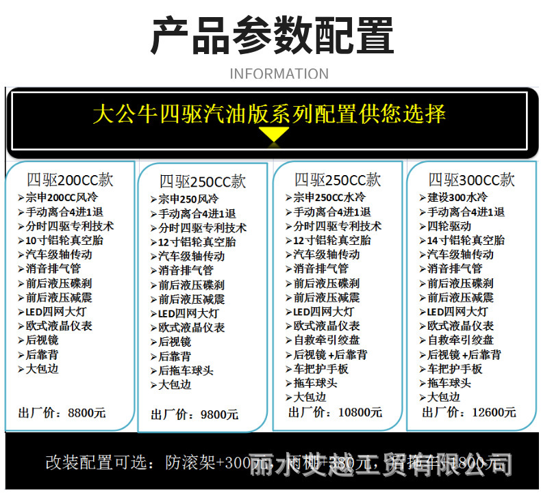 Производитель Полный рельеф полноприводной пляжный внедорожник 200 - 300CC Горный четырехколесный ATV взрослый электрический мотоцикл