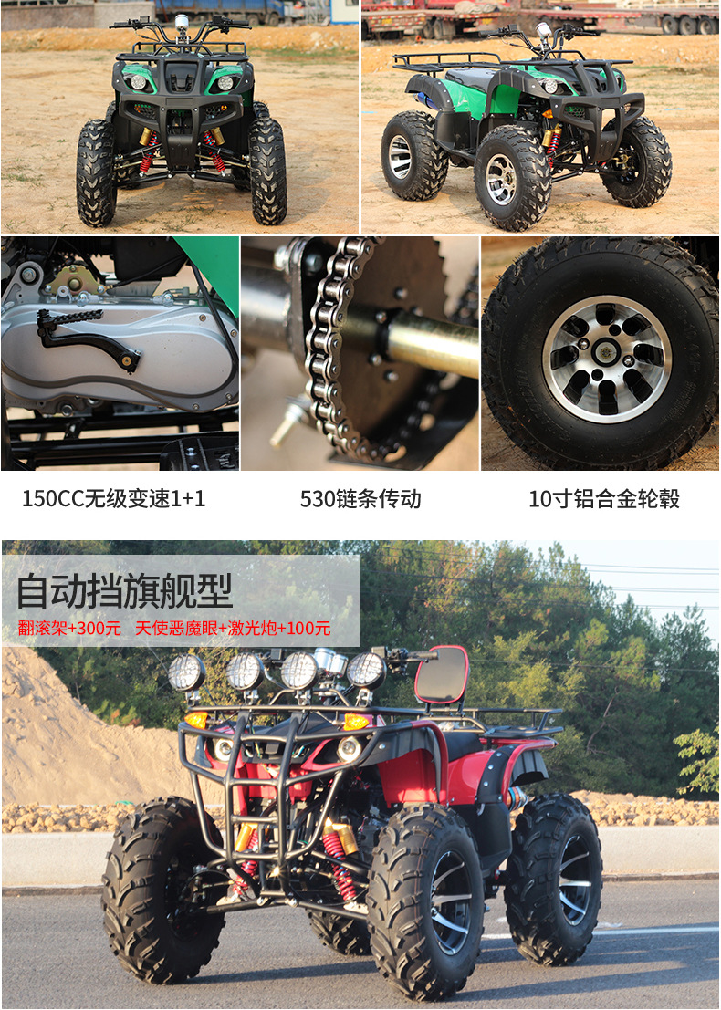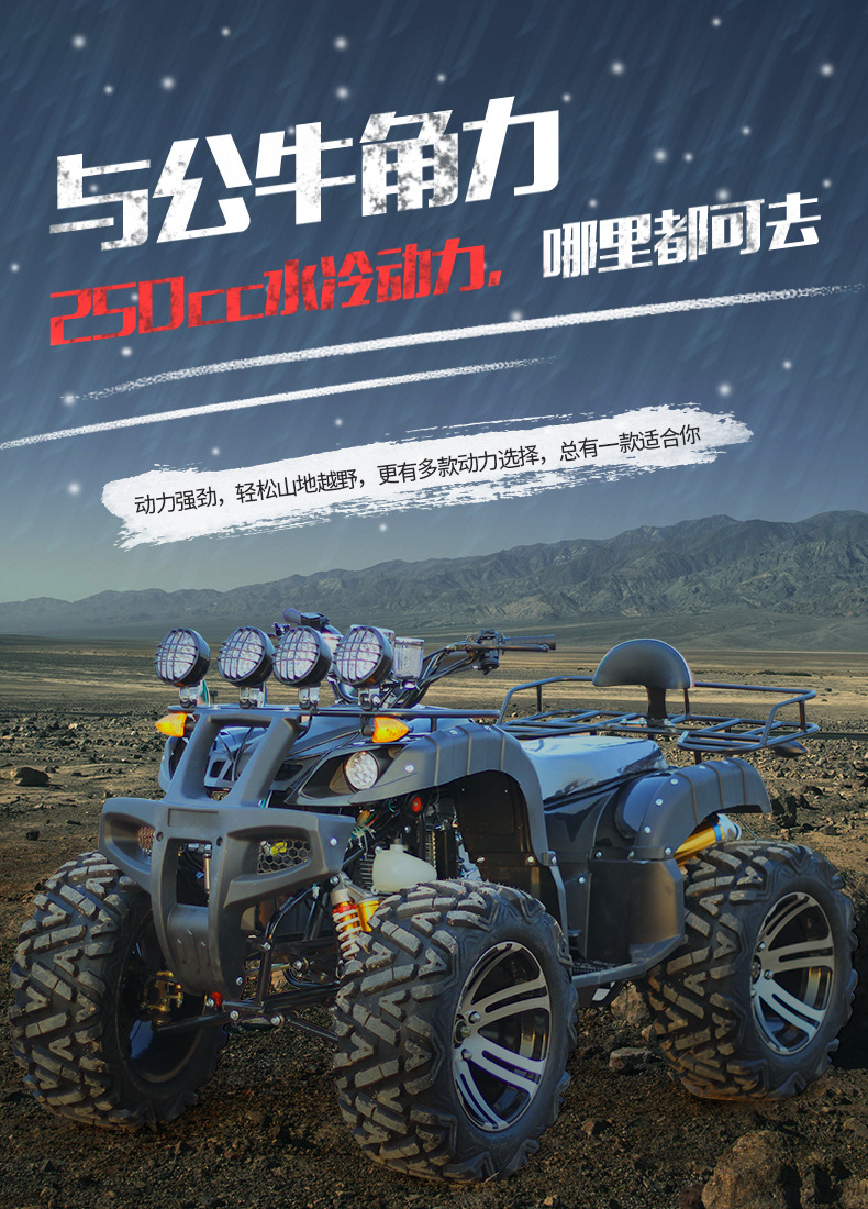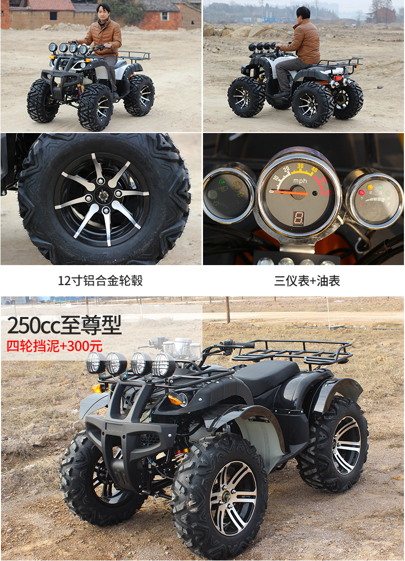 Четырехприводный сельскохозяйственный автомобиль Пляжный автомобиль Zongshen 300CC Четырехколесный мотоцикл Бензин Полная местность Взрослый горный внедорожник