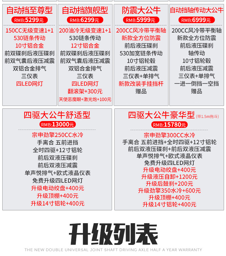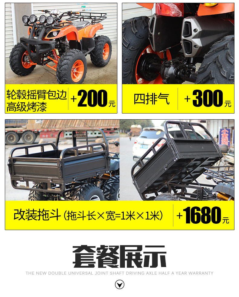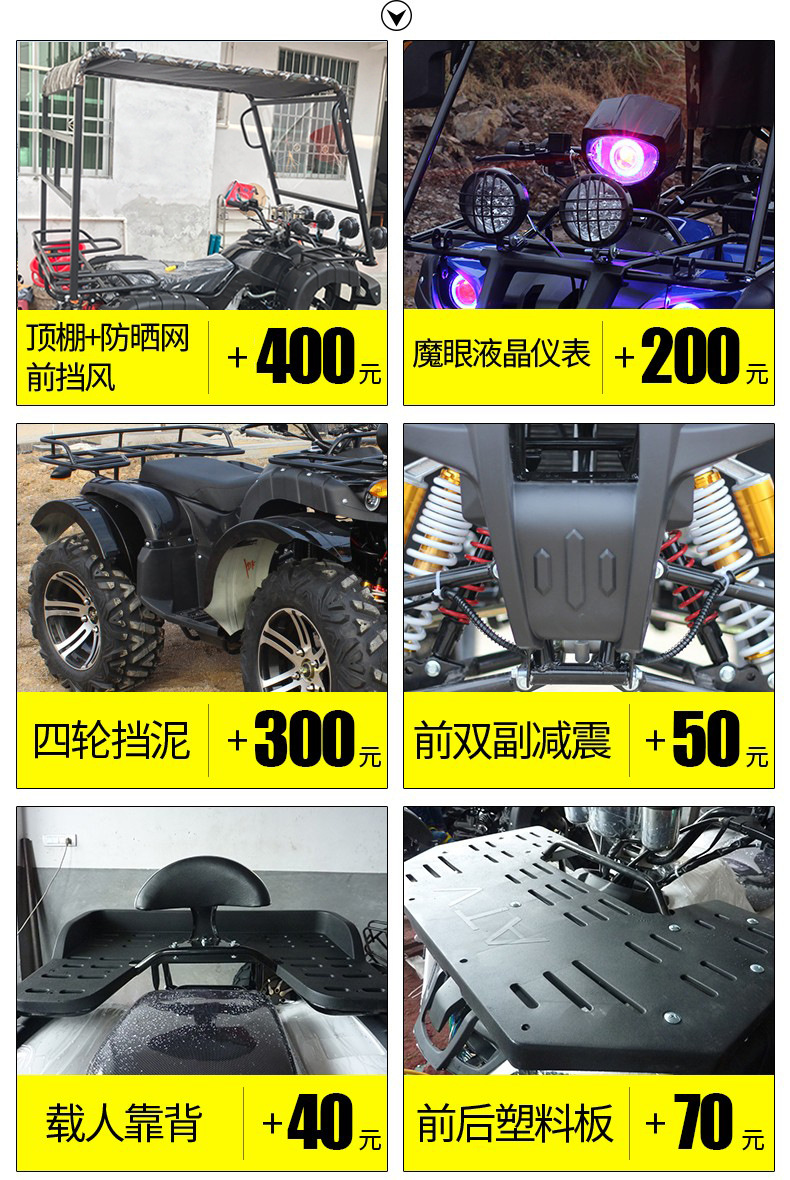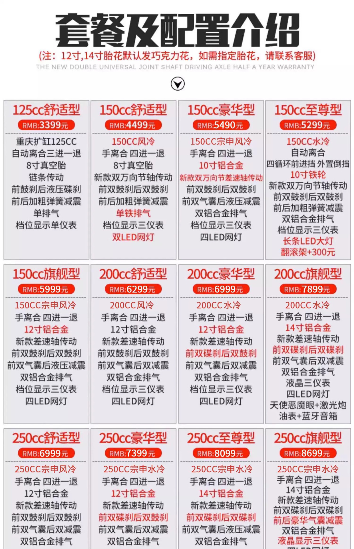 Четырехприводный сельскохозяйственный автомобиль Пляжный автомобиль Zongshen 300CC Четырехколесный мотоцикл Бензин Полная местность Взрослый горный внедорожник