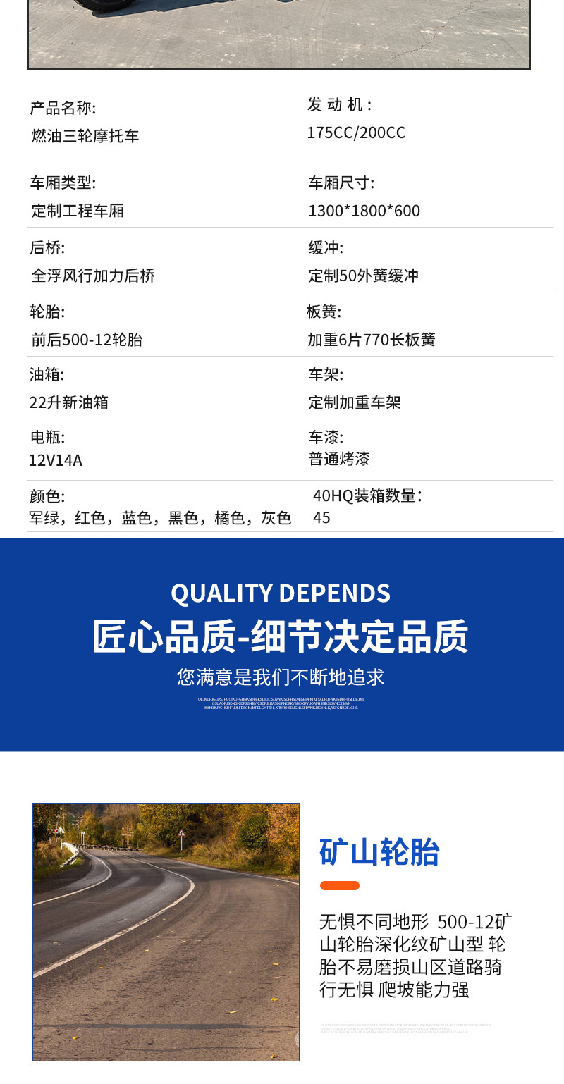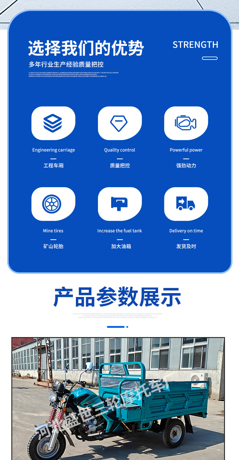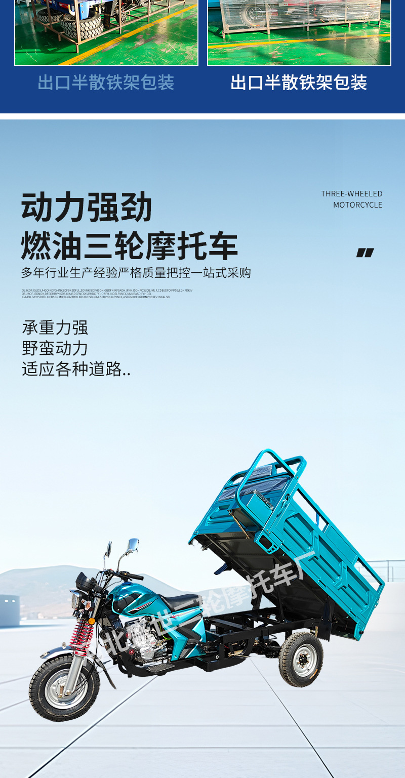 Внешнеторговый экспорт Бензин Грузовой тягач Ван Трехколесный топливный мотоцикл Мотоцикл с воздушным охлаждением