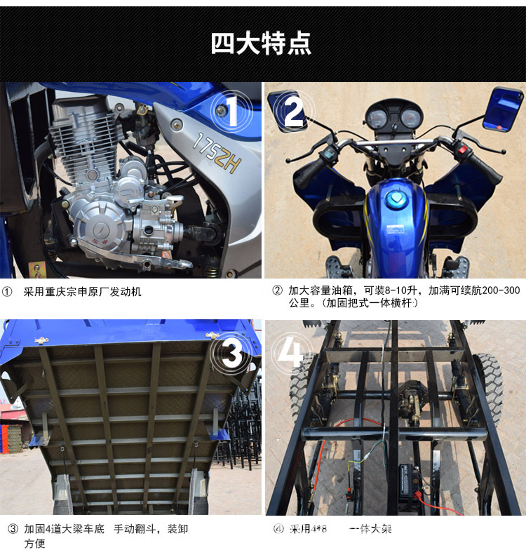 Мотоцикл с водяным охлаждением, сельскохозяйственный грузовой трехколесный велосипед для взрослых с бензиновым трехколесным велосипедом Ван