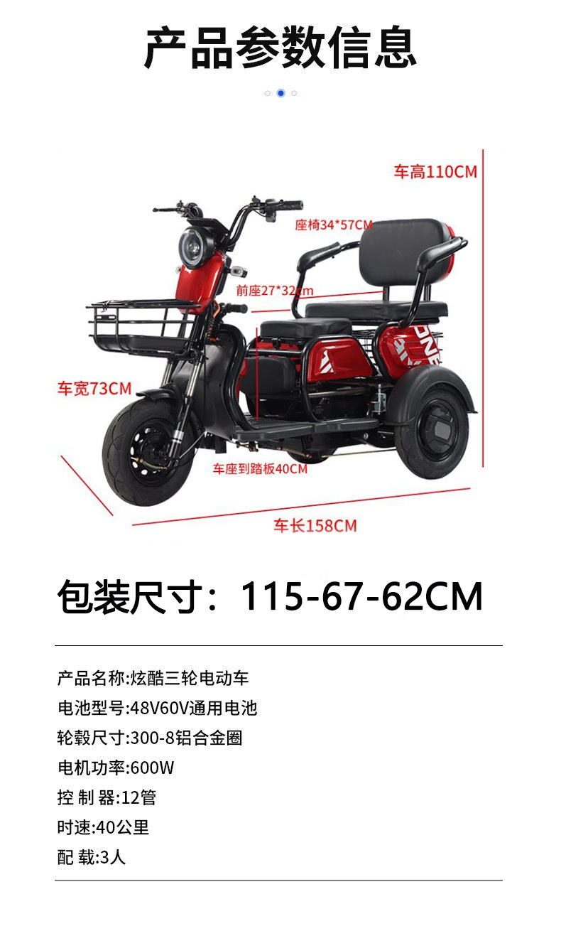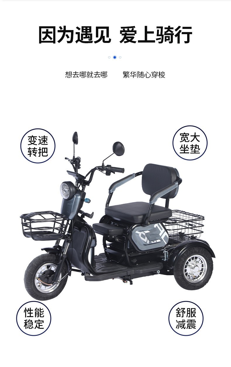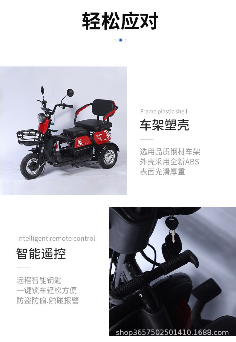 Трансграничная внешняя торговля Трое забирают детей толкают аккумулятор Трехколесный велосипед для пожилых людей Крутой электрический трехколесный велосипед