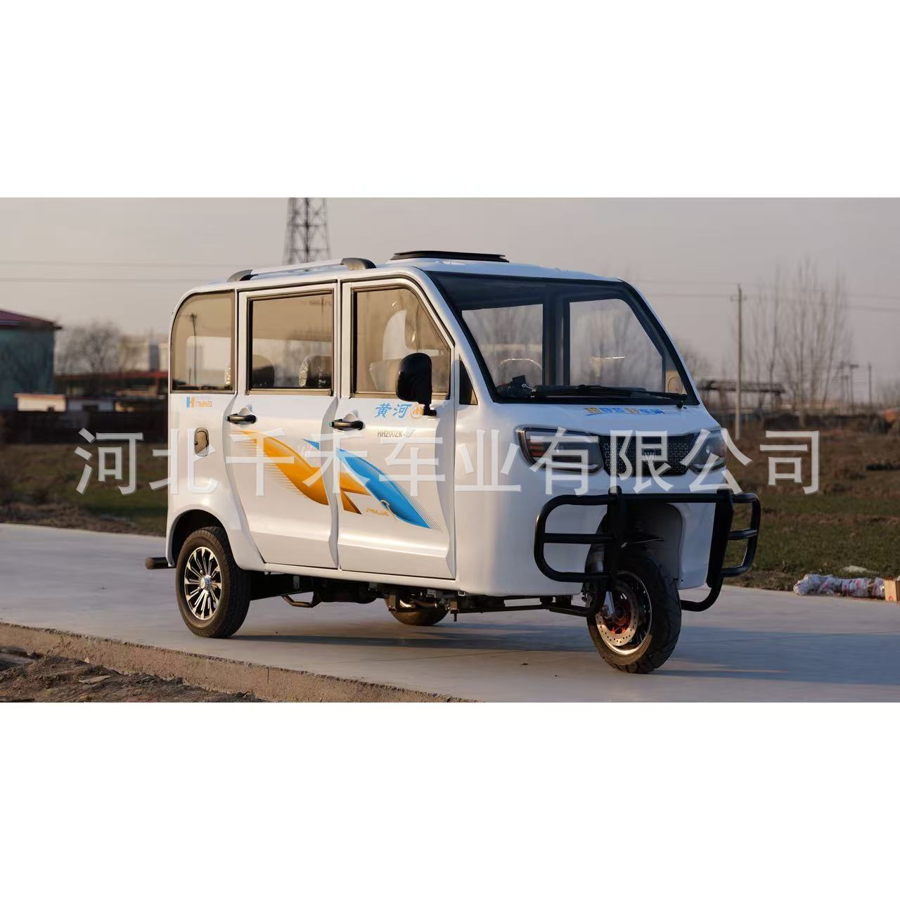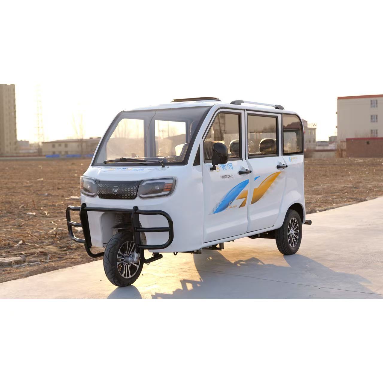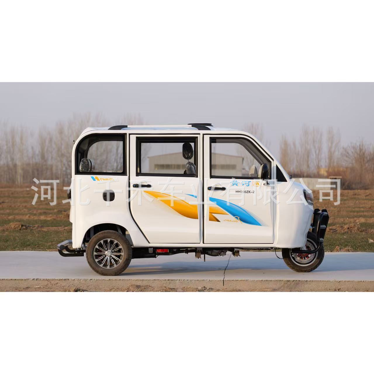 Желтая река полностью закрыта топливом трехколесный мотоцикл распыление на старом поколении автомобиля для помощи инвалидам с водяным охлаждением