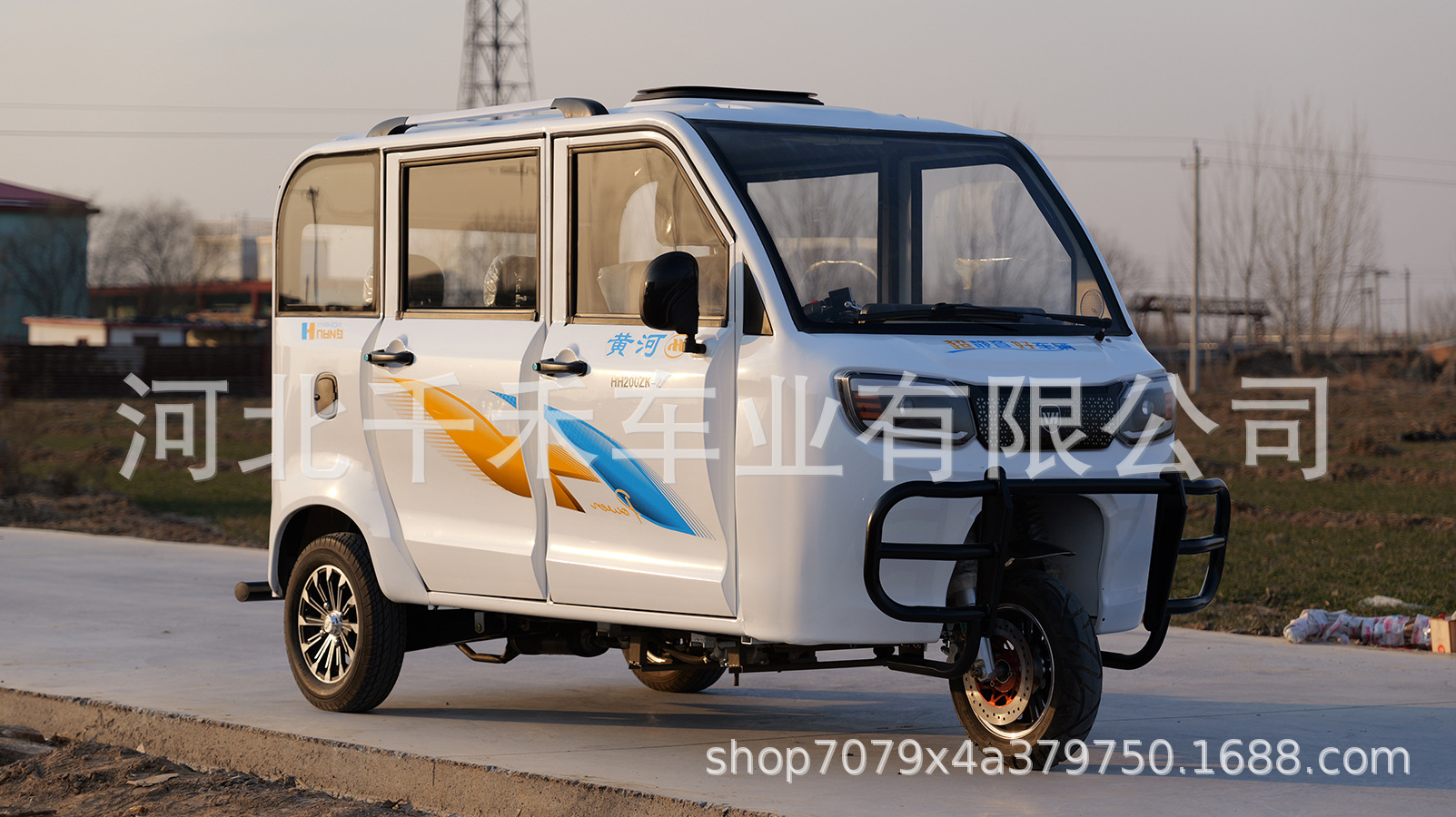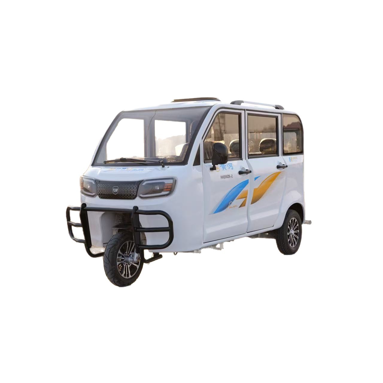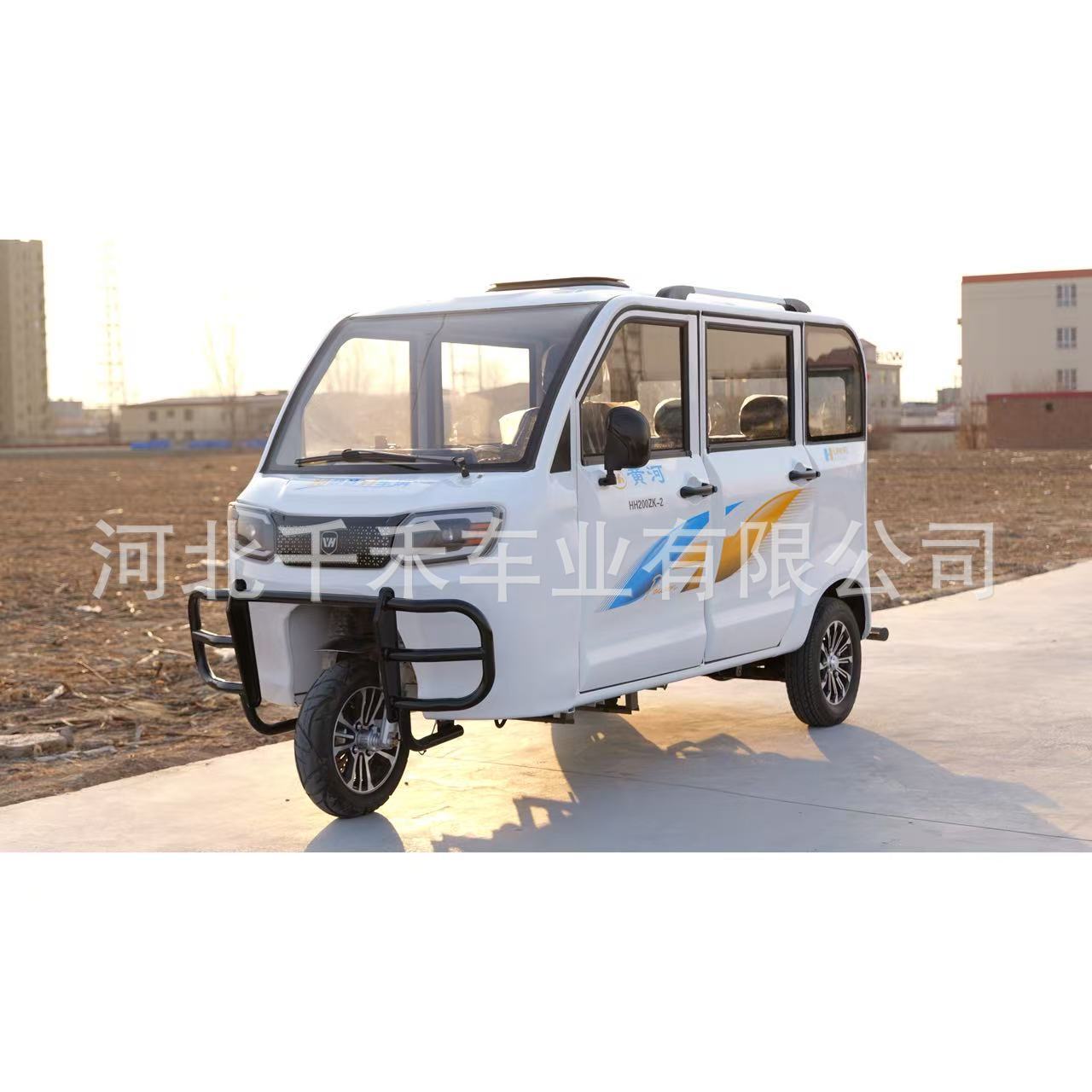 Желтая река полностью закрыта топливом трехколесный мотоцикл распыление на старом поколении автомобиля для помощи инвалидам с водяным охлаждением