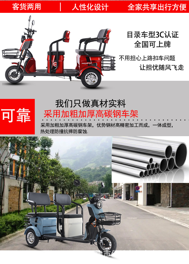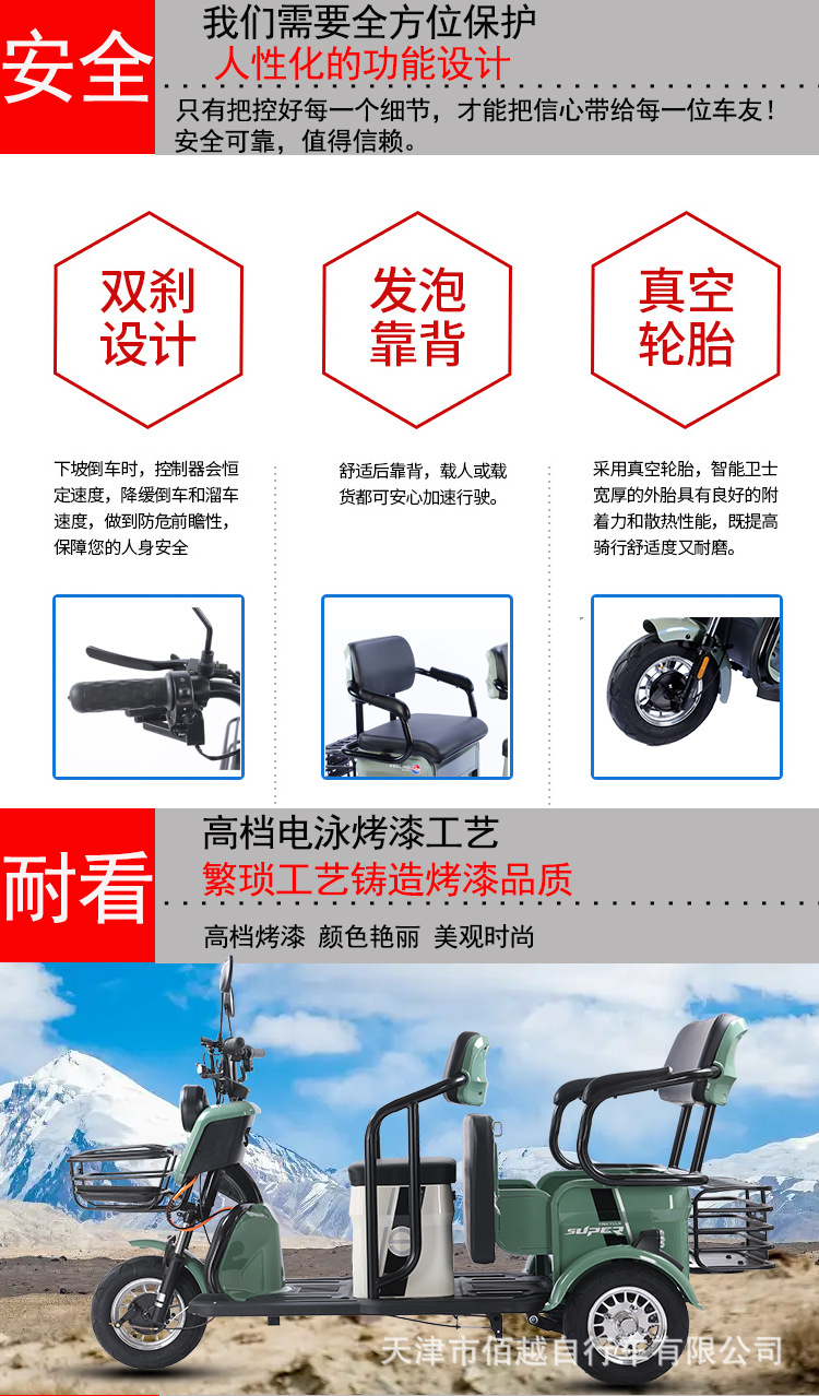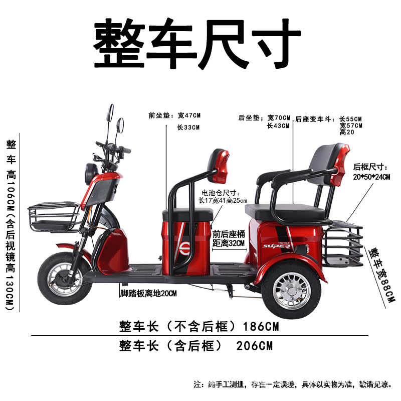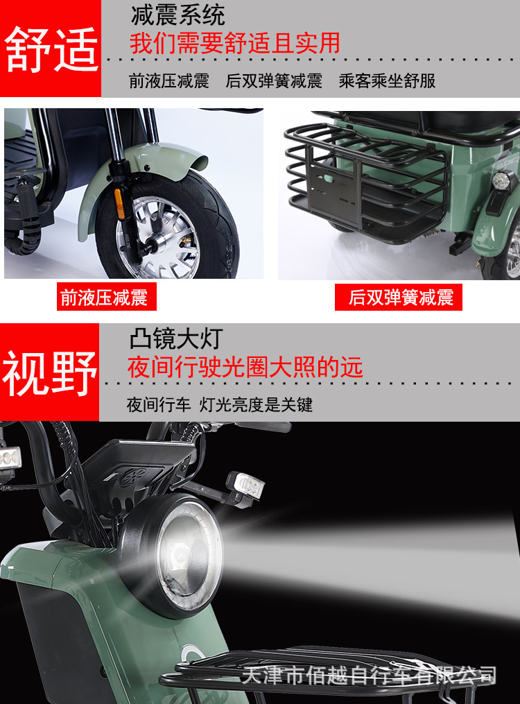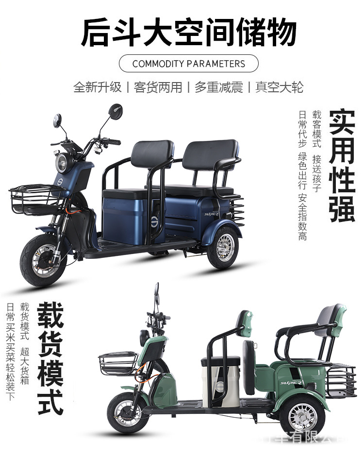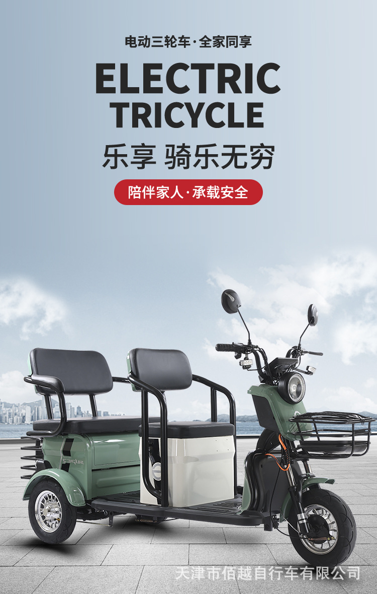 Мощный электрический трехколесный велосипед для перевозки детей Домашний аккумулятор Электромотор