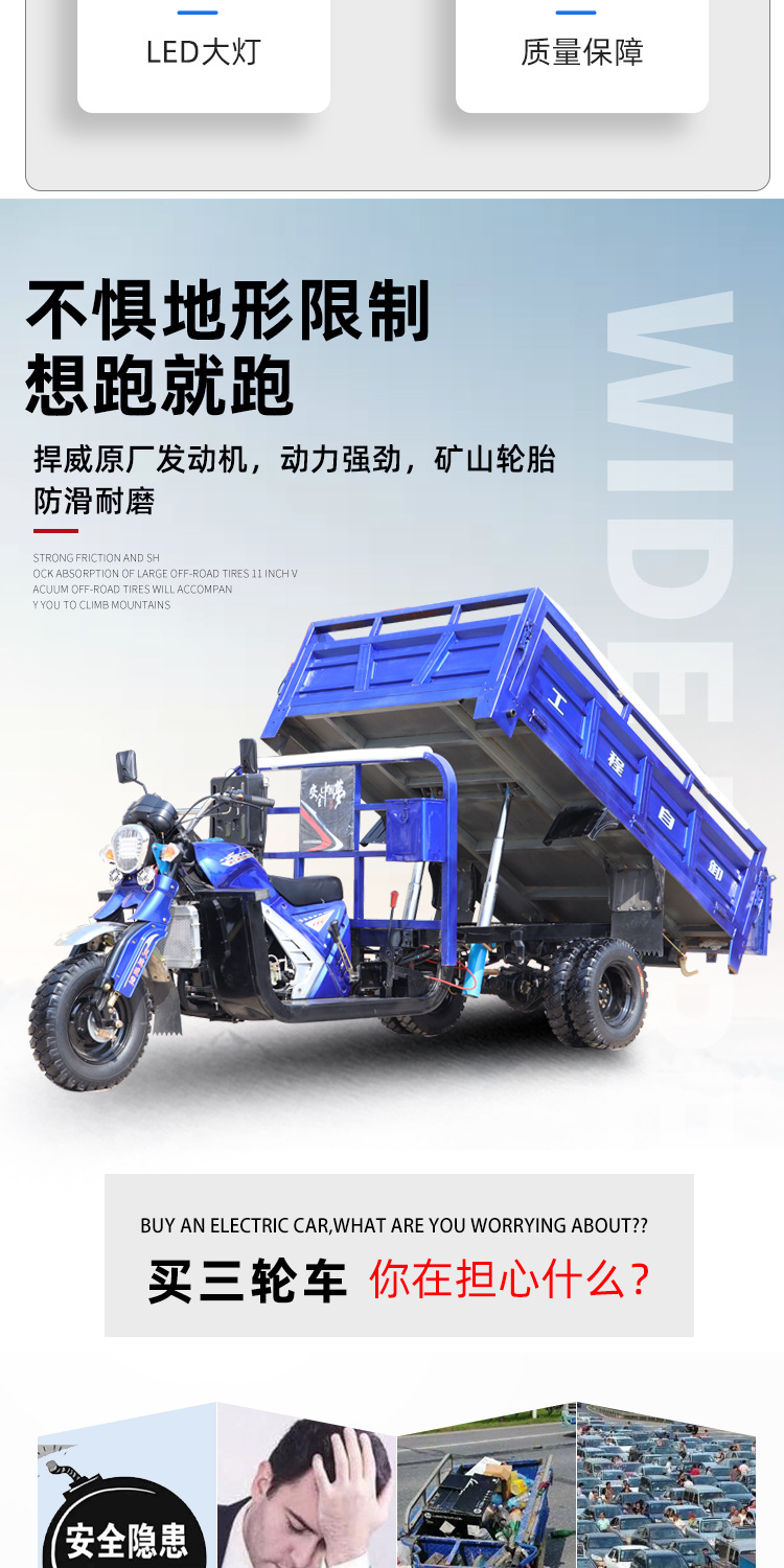Экспорт горячего трехколесного топлива самосвала мотоцикл домашний грузовой сельскохозяйственный автомобиль Zongshen двигатель бензин опрокидывание