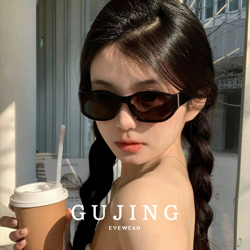 Curved screen cat eye sunglasses for women, 2025 new anti UV retro sunglasses, square round face, small face, sweet and cool
