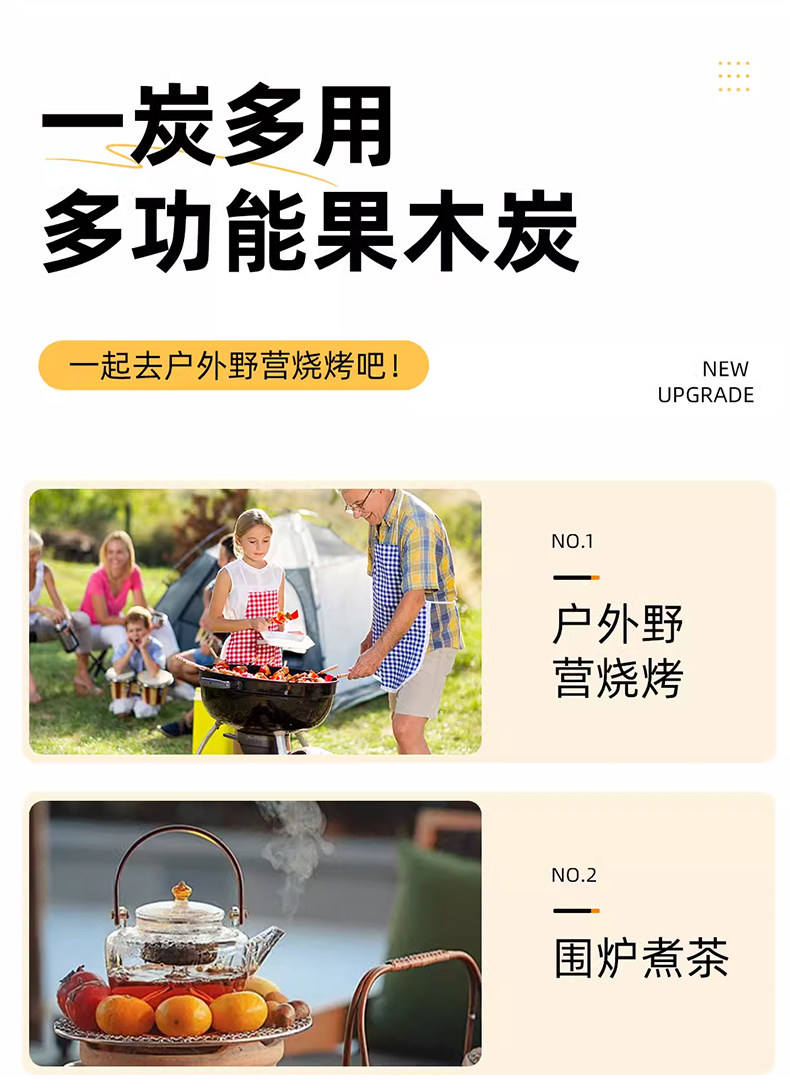 Быстро сжигаемый уголь для барбекю, уголь для малодымных фруктов, древесный уголь с легковоспламеняющимся домашним бамбуковым углем на открытом воздухе
