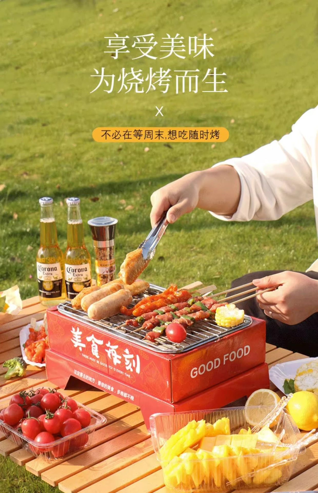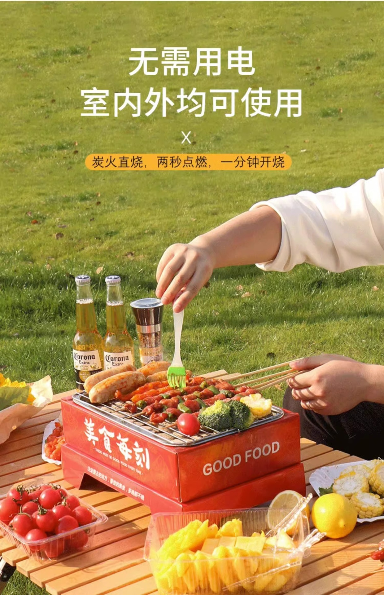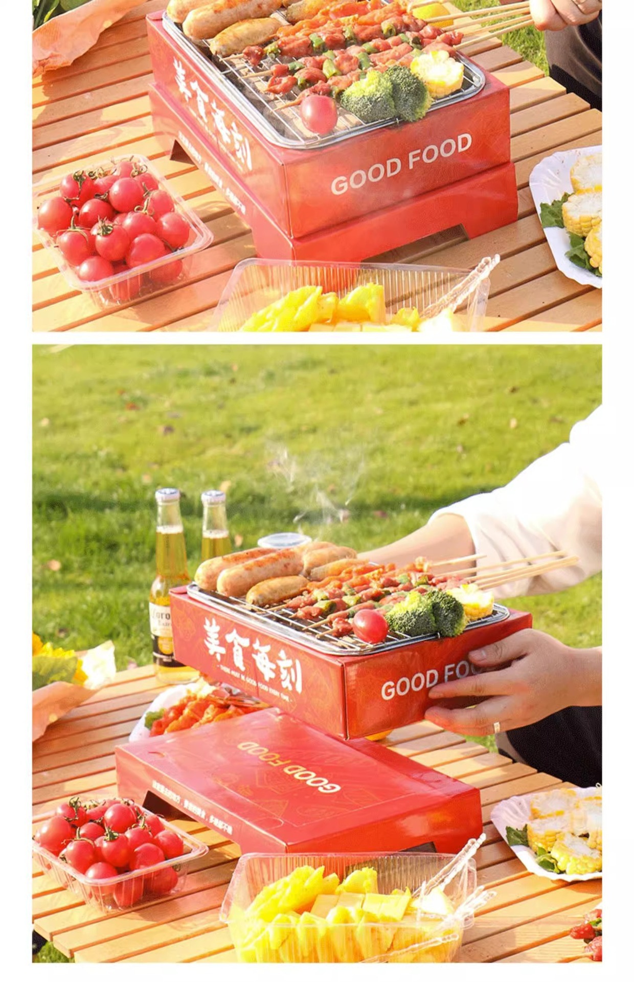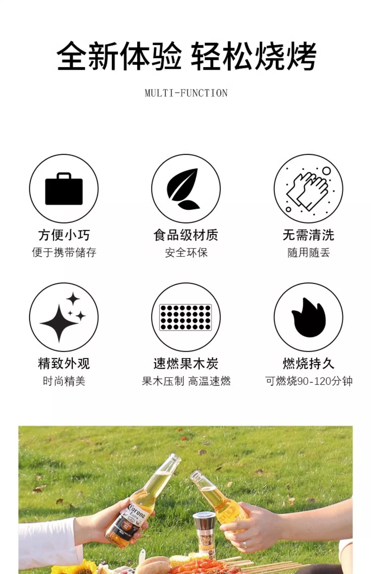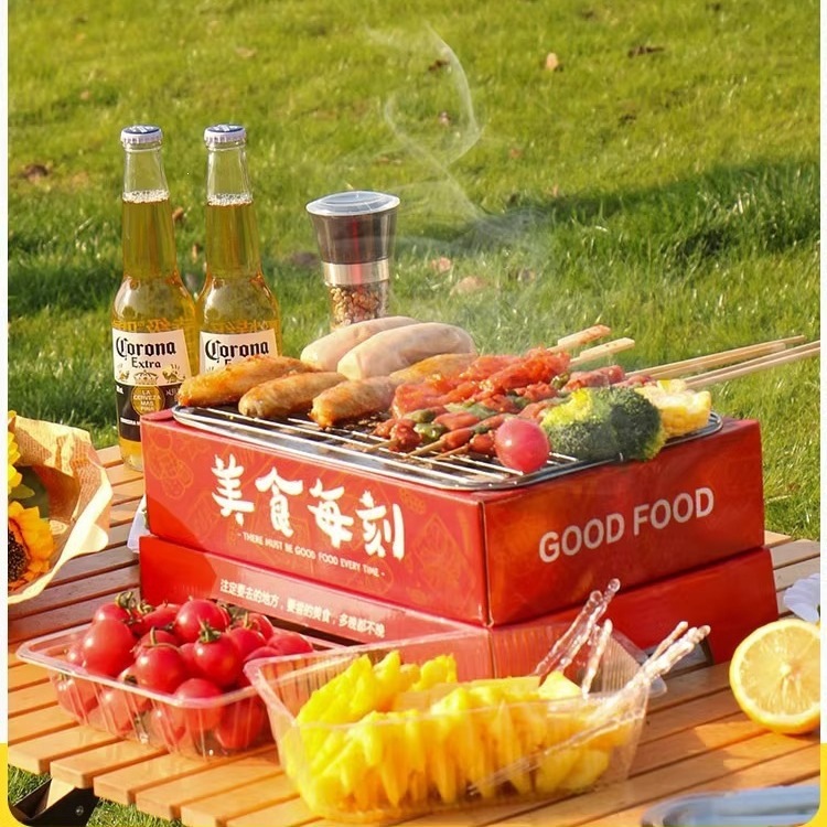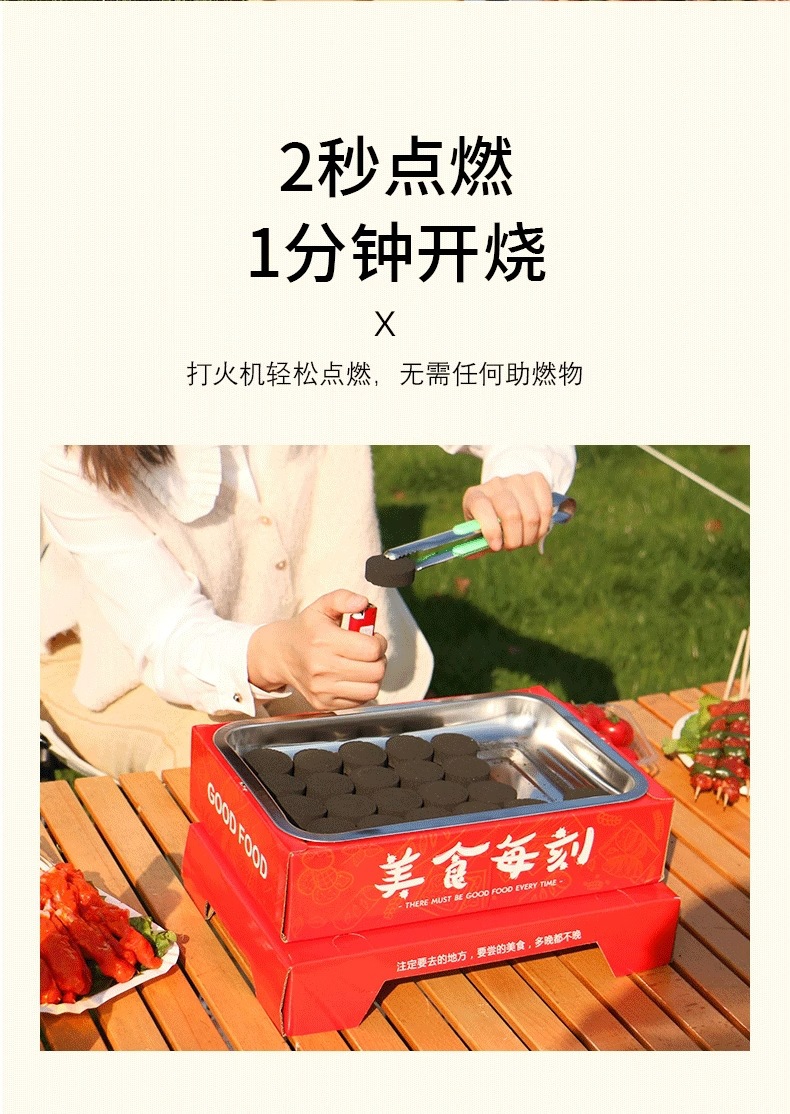 [19.9 Пакет почтовых отправлений] Пикник с одноразовой печью для барбекю из фруктового древесного угля, небольшой бездымный быстрогорящий уголь