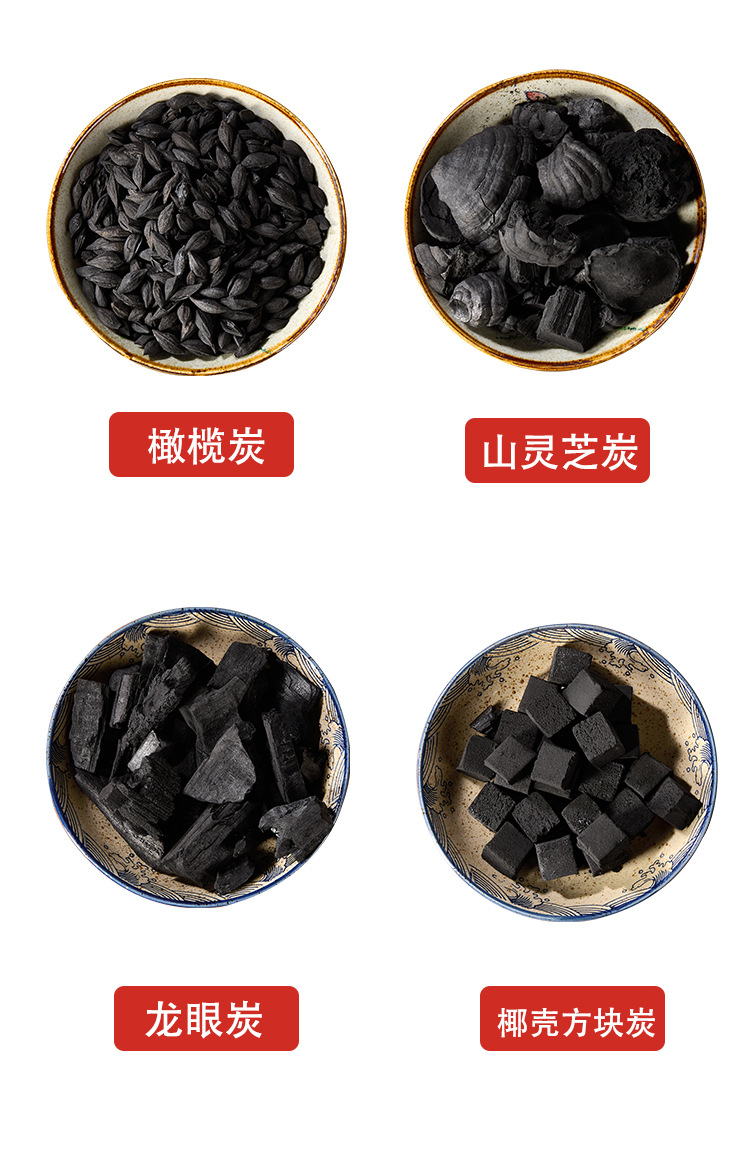 Приготовление чая в камине Специальное бездымное углеродное сваривание чая в помещении Высококачественный древесный уголь Оливковый углерод Грецкие орехи Драконоглазый уголь Барбекю Углерод