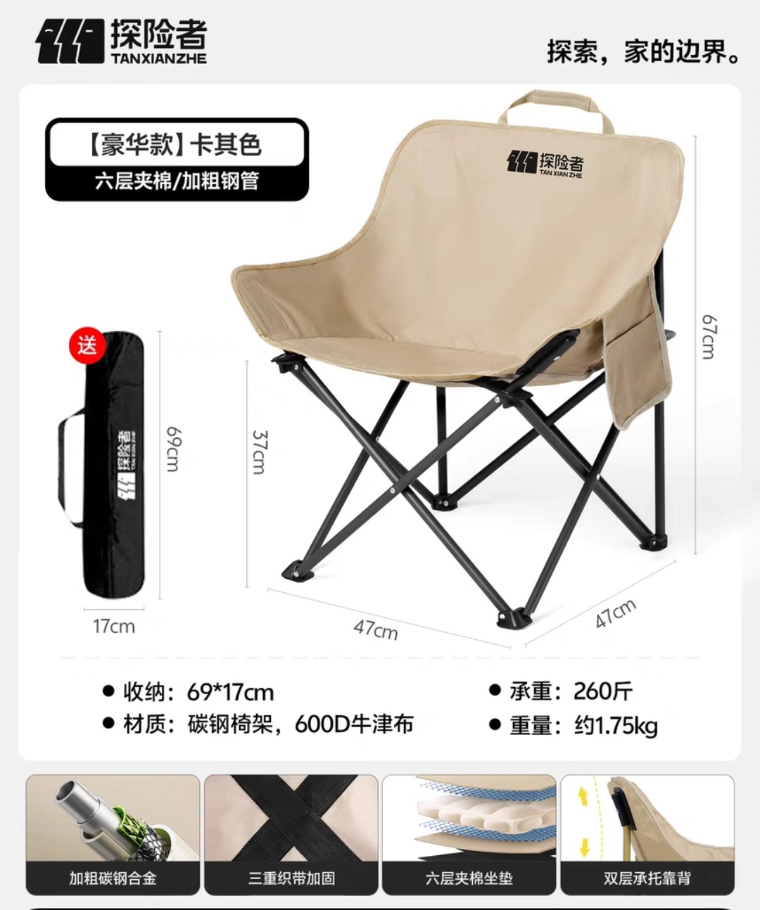 Лунное кресло Эксплорер Лагерное кресло Складное кресло на открытом воздухе Переносной шезлонг Рыбацкий стул Пляжный стул Пикник Столы и стулья