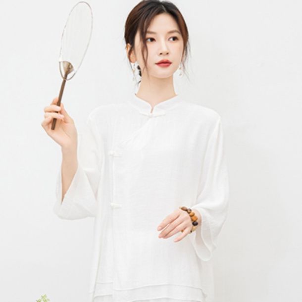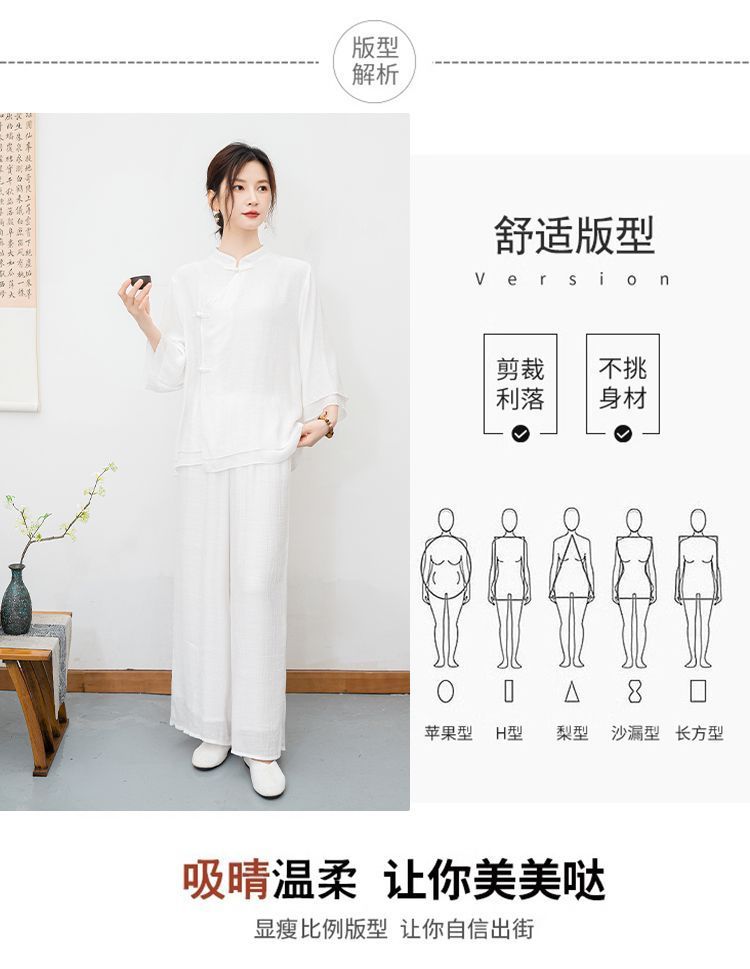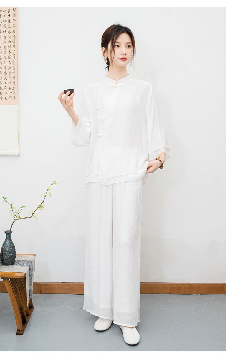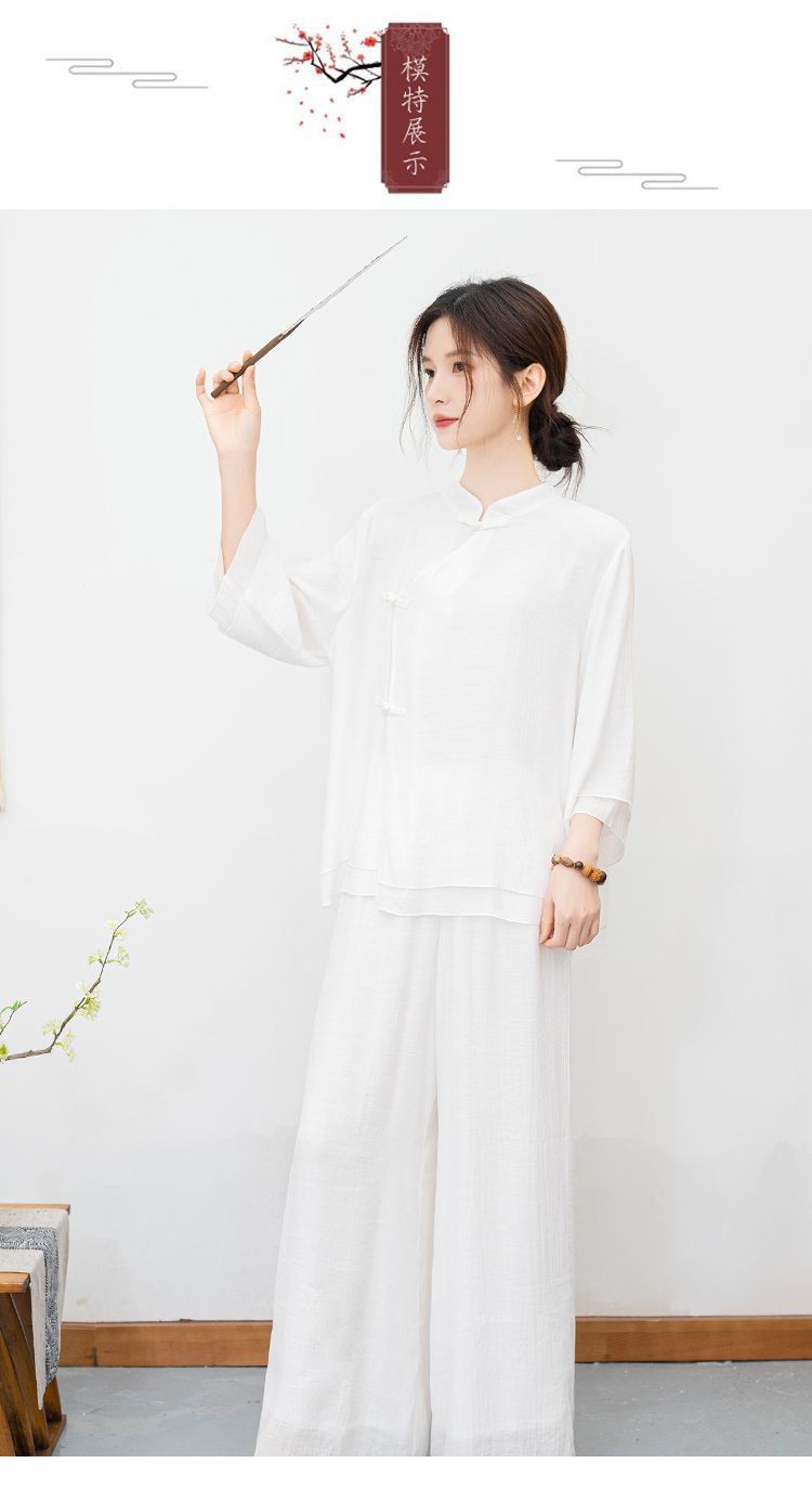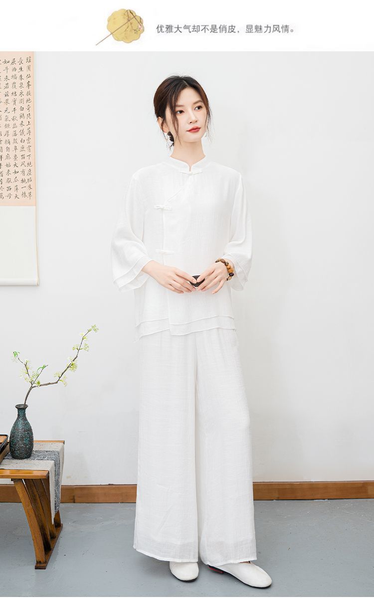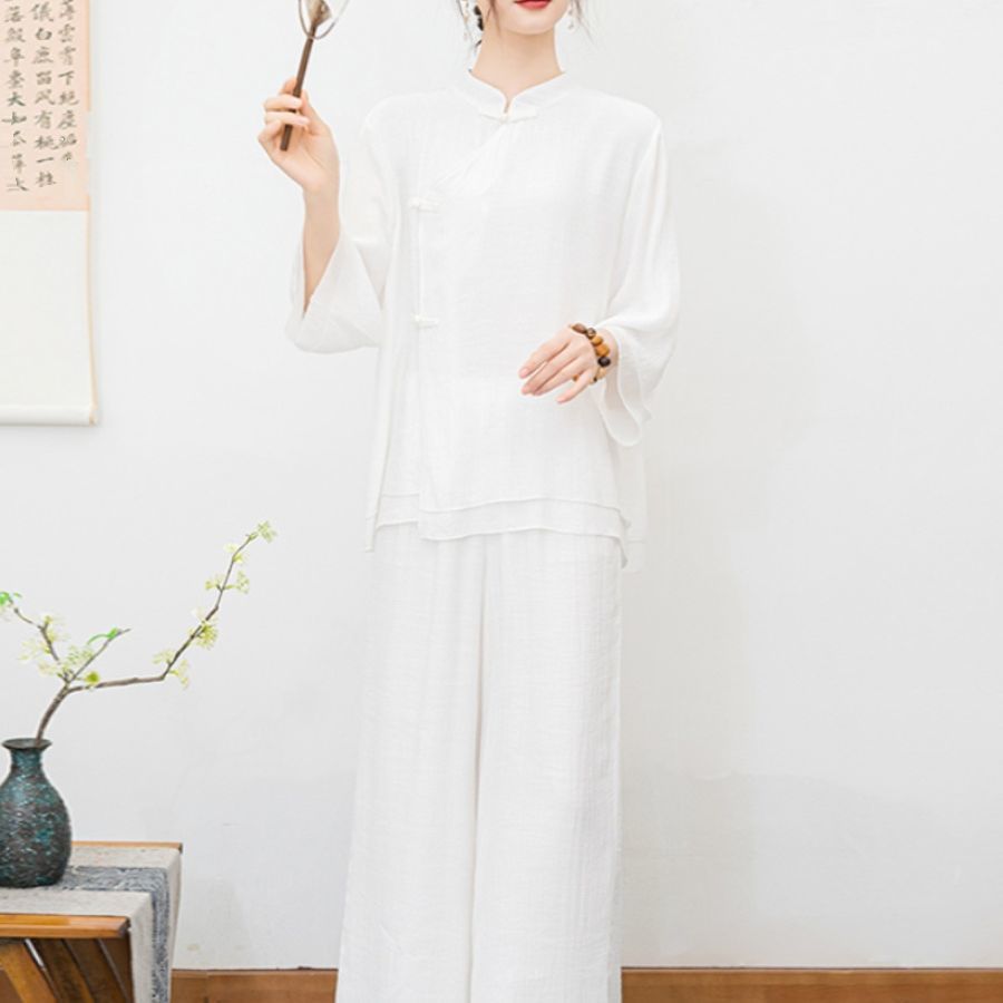 白色民族风练功服女复古禅意打坐居士服套装新中式佛系禅舞服茶服