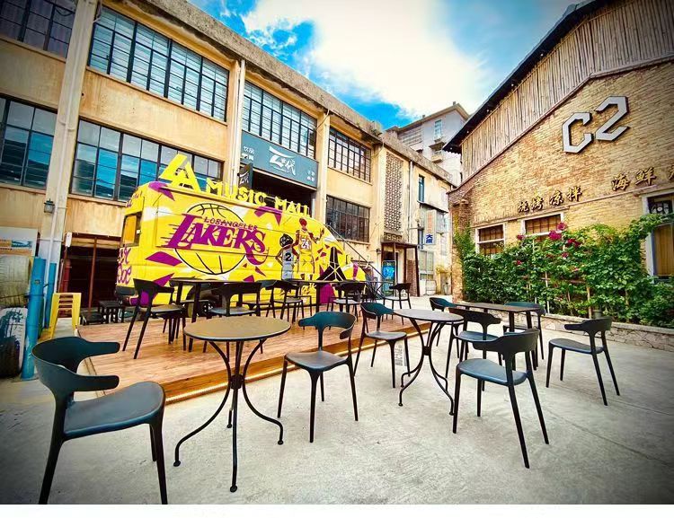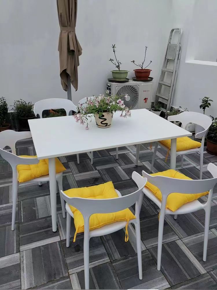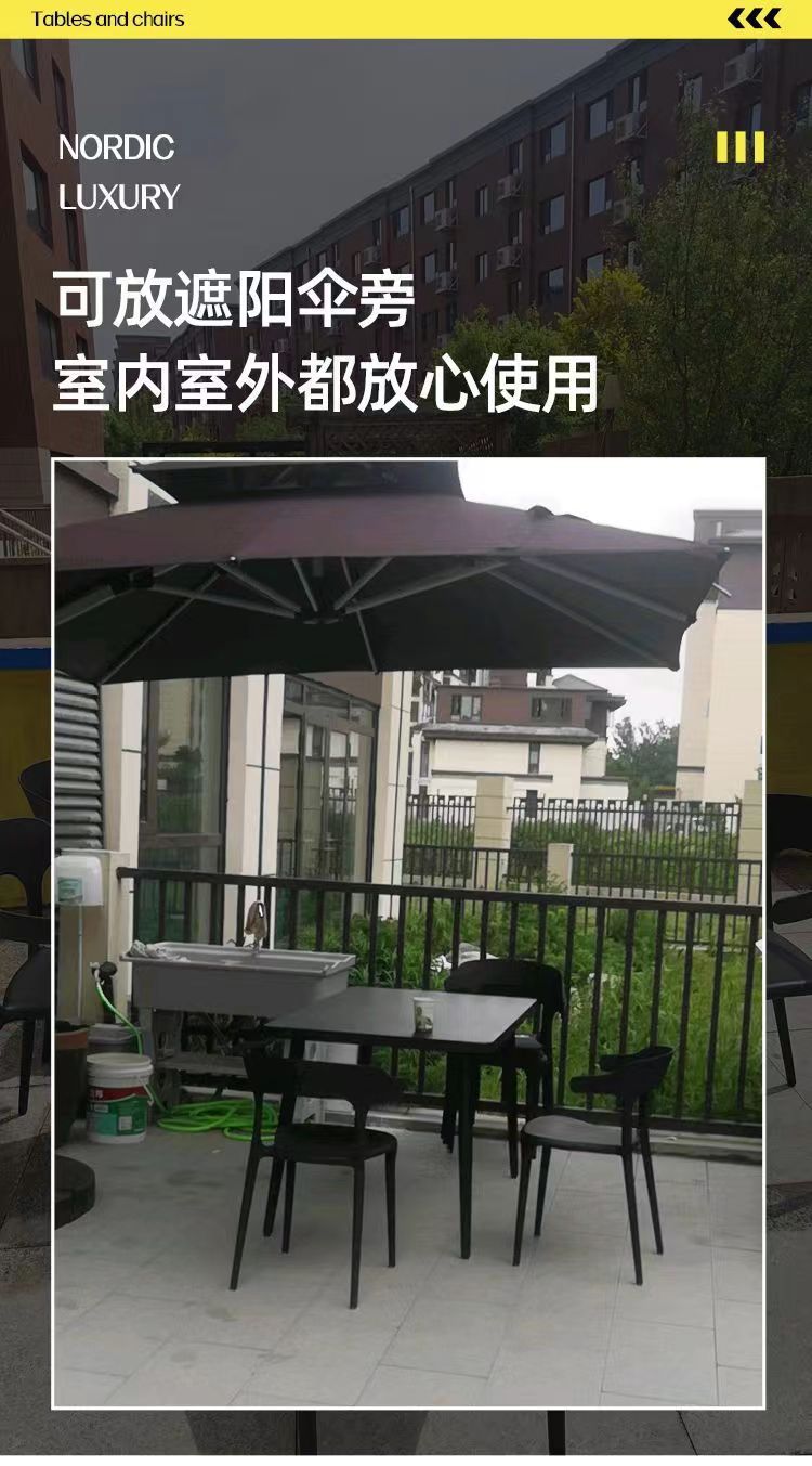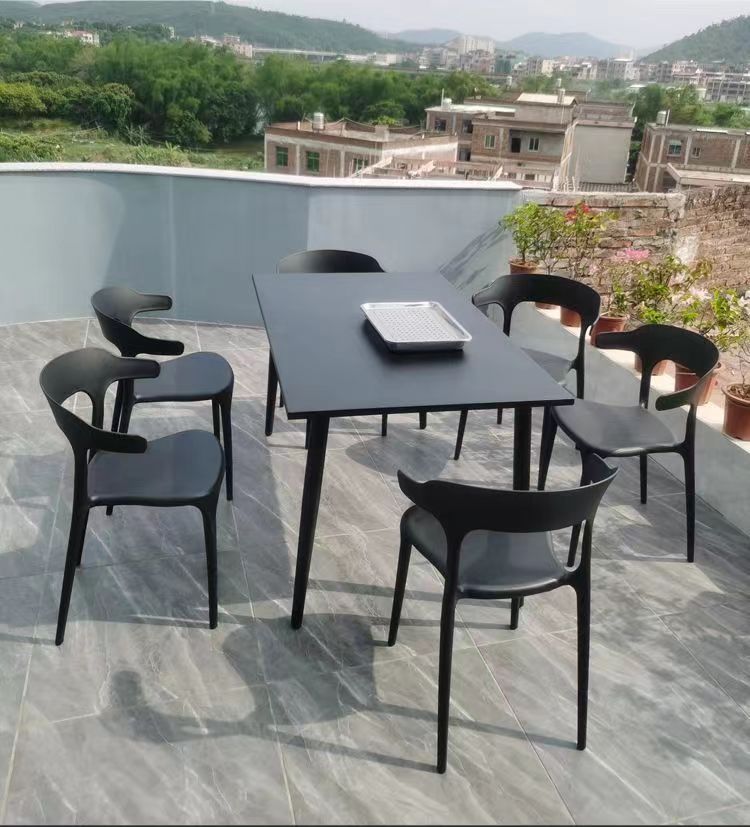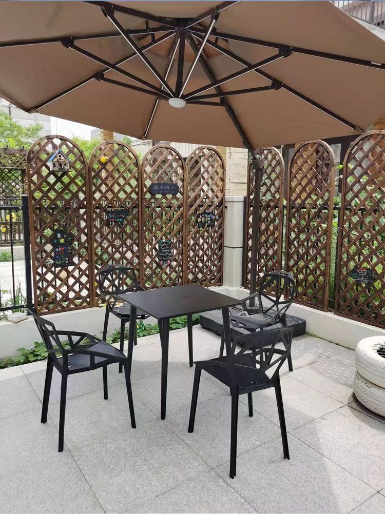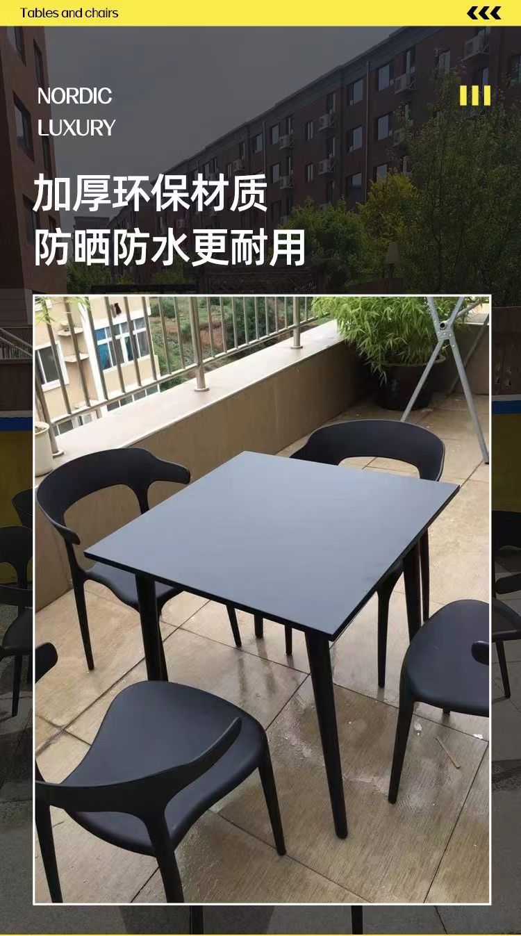 Столы и стулья на свежем воздухе с открытым двором, пластиковый чайный магазин под открытым небом, открытый балкон, три места, четыре комплекта сидений из углеродистой стали