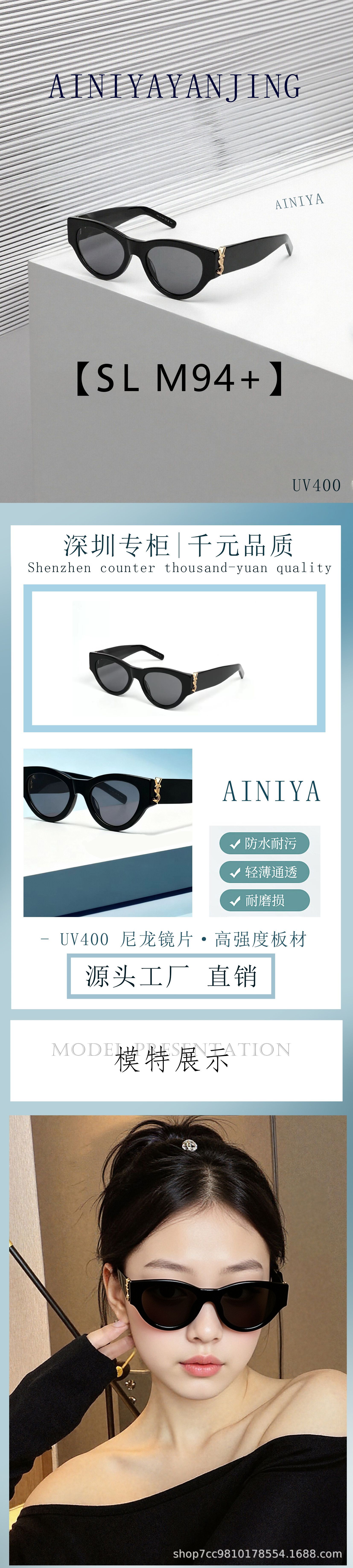 Yang Shulin M94 Sunglasses Internet Celebrity Big Face Looks Thin Korean ROSE Park Choi Young Same UV Protection Cat Eye Panel